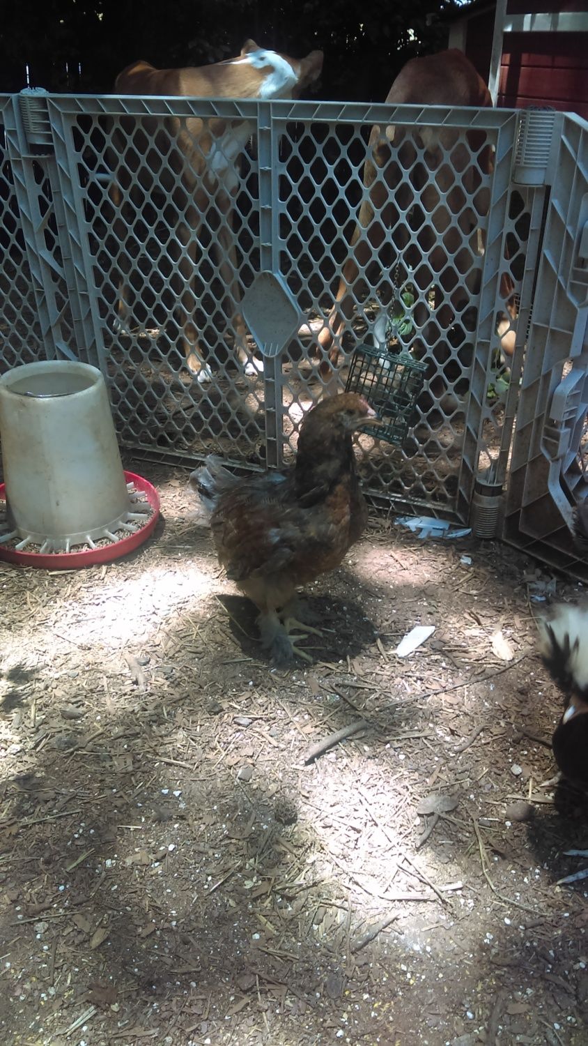 then we have a barnyard mix of RIR/GL Wyandotte, about 9 weeks