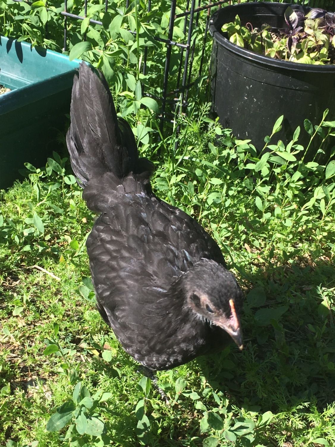 And this is My 8 wk old Who I was told was a "red" crossed with black copper Maran Who was pointed out as a rooster before... I was also told that there was no way that he/she could be a black copper Maran crossed with a red ... so if anybody sees any breed indications I'd love to hear them !!!