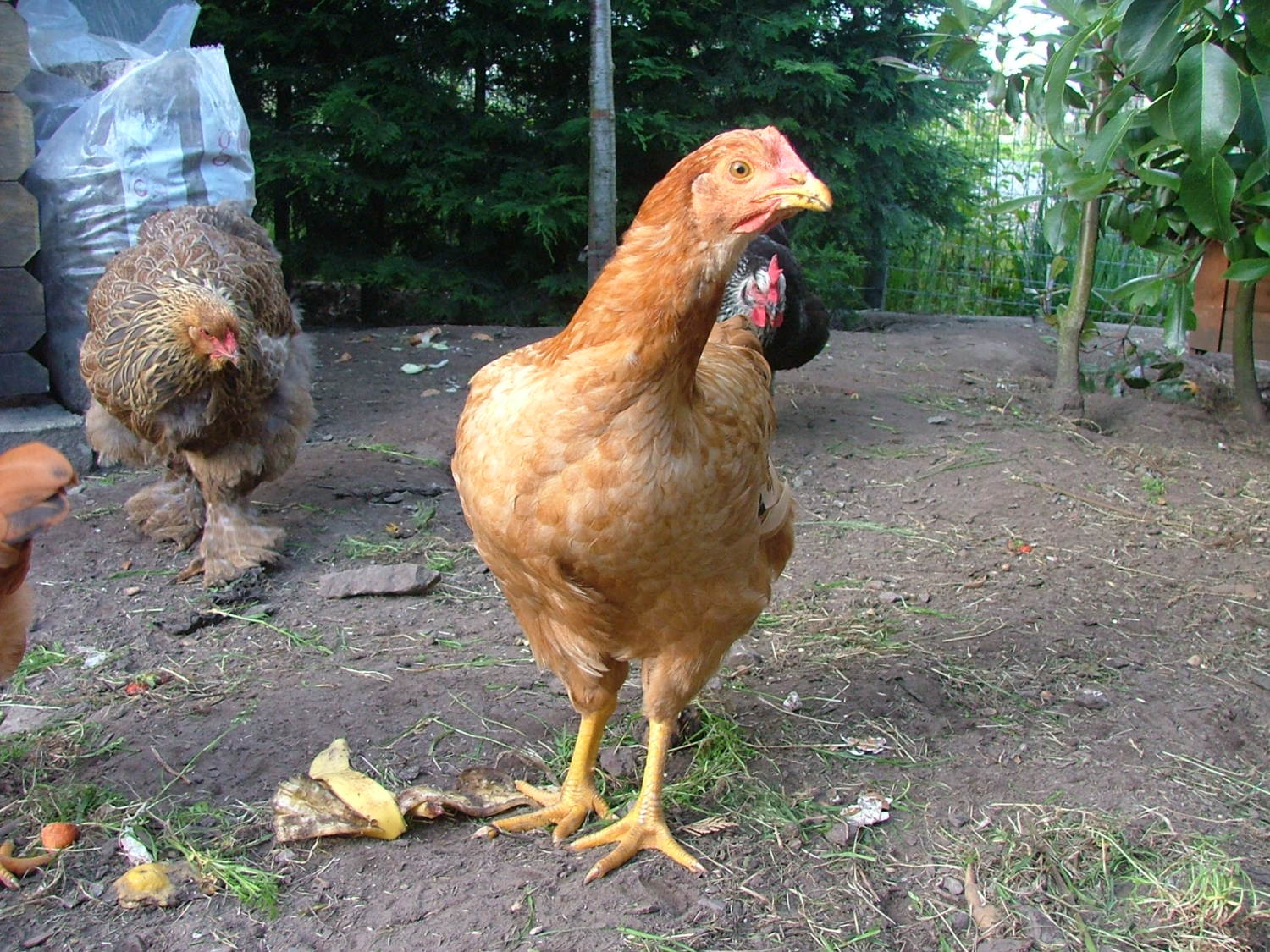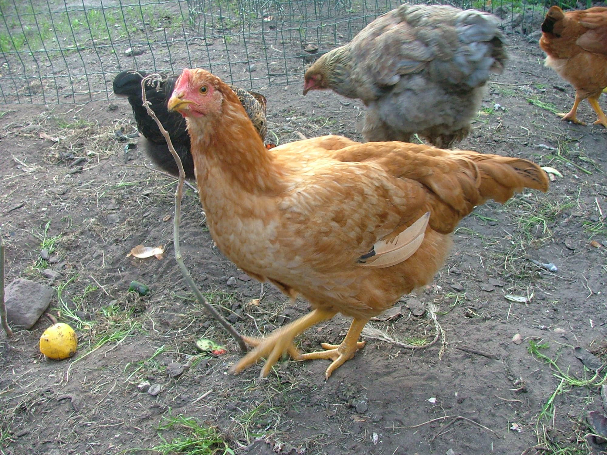 We are thinking that the BCM 3 is female, as her comb and wattle are much smaller and less red than those of the BCM 1 and BCM 2. Also, we were told that the two GLBWs are both female. The Ameraucanas we have no idea about.
