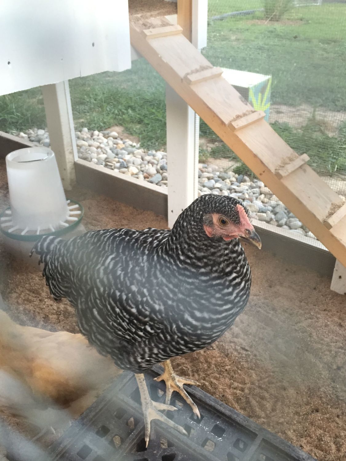 Cream Legbar hens are barred. A barred hen can only pass the barring gene to her male chicks. Both of your birds are barred, therefore they can only be male. Plus, those long, thin, pointed feathers on the back are something only males get.I am new to this website and not sorry if this is a repost. I would like to get some help in identifying the sex of my 3 month old chickens that are from a Cream Legbar mama and a Black Orpington papa. I got the eggs from a farm so didn't see them in person. The lighter color one with yellow legs and pincushion crown just crowed so I think it is a male. The other one, hoping it is a female. Whats your opinion? first pic is both of them together. Second pic is the unknown sex one. Third is the one that just crowed. Thanks!![]()