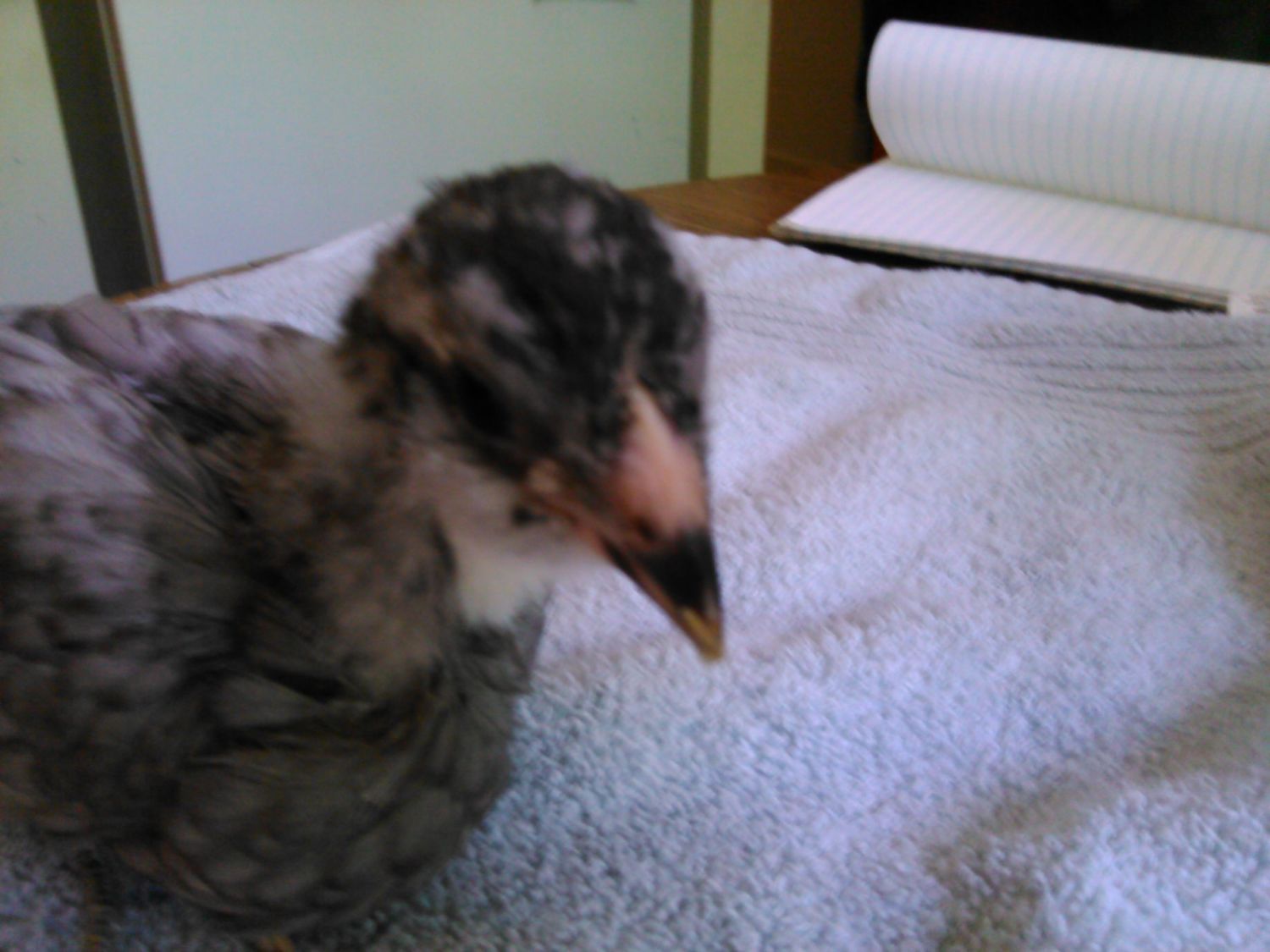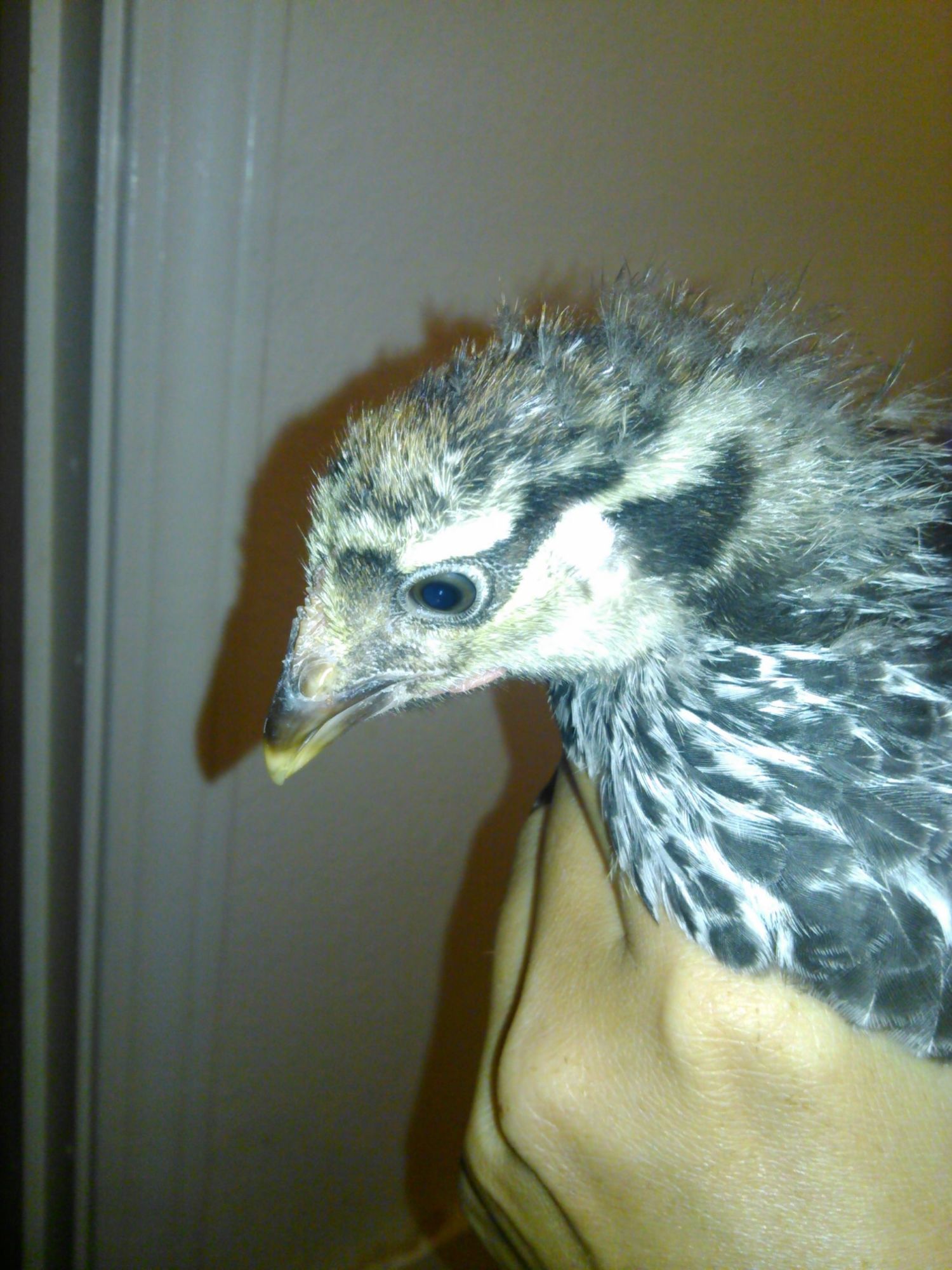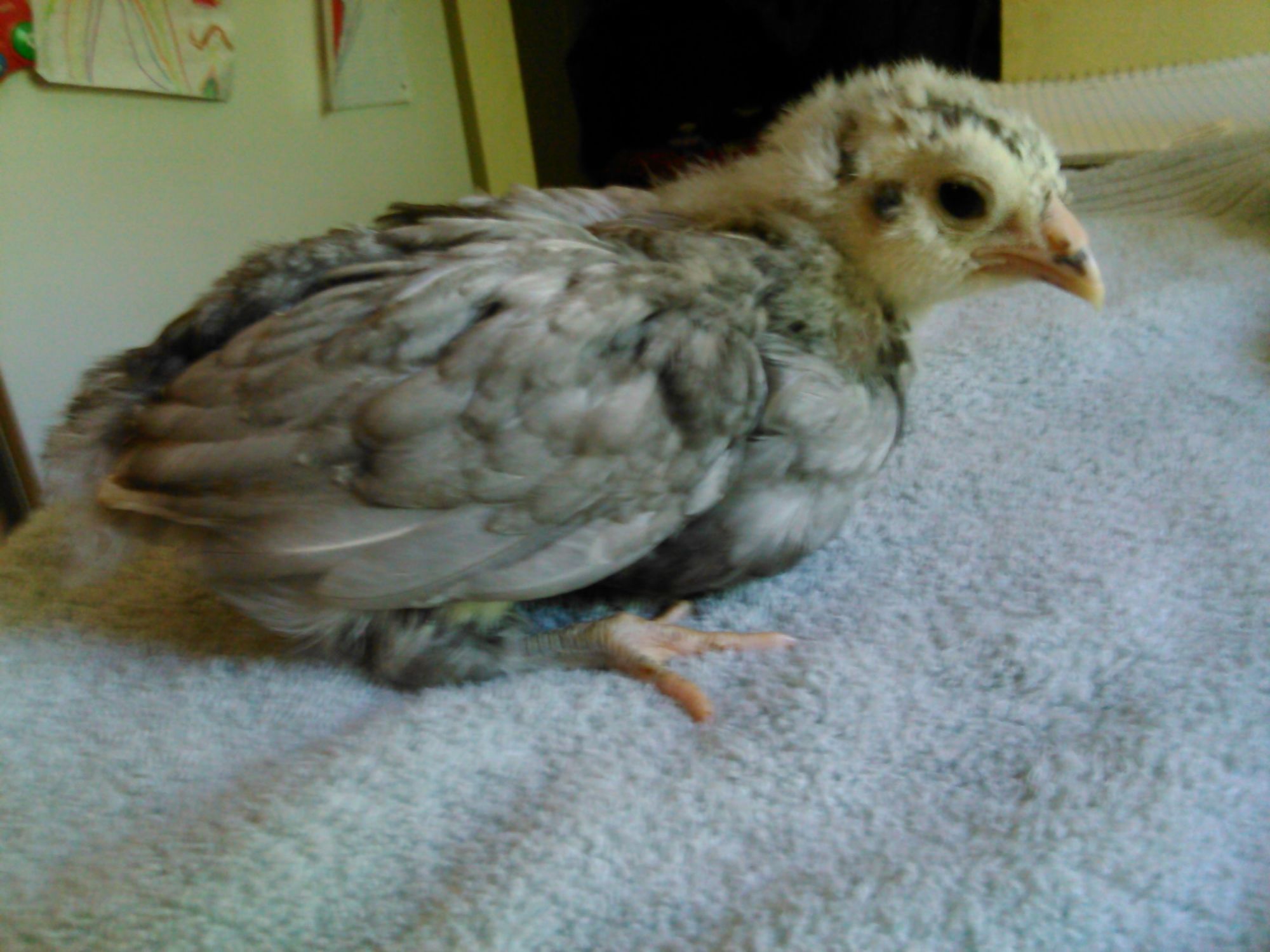 5.5 wk old BA on right. She/he has pointier tail feathers than the others.