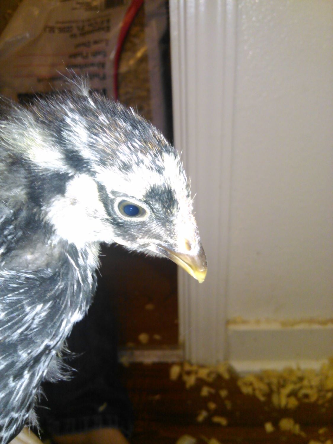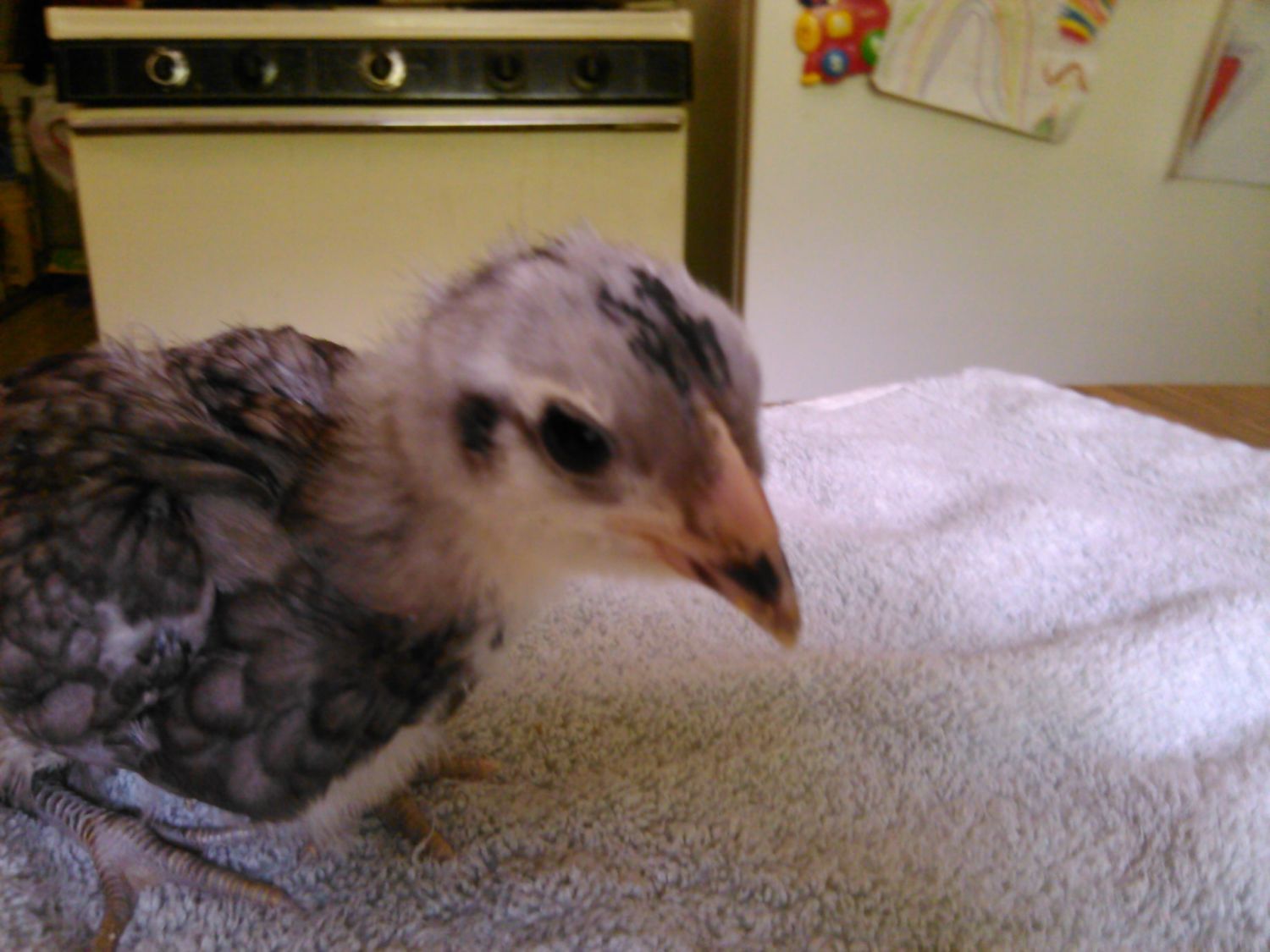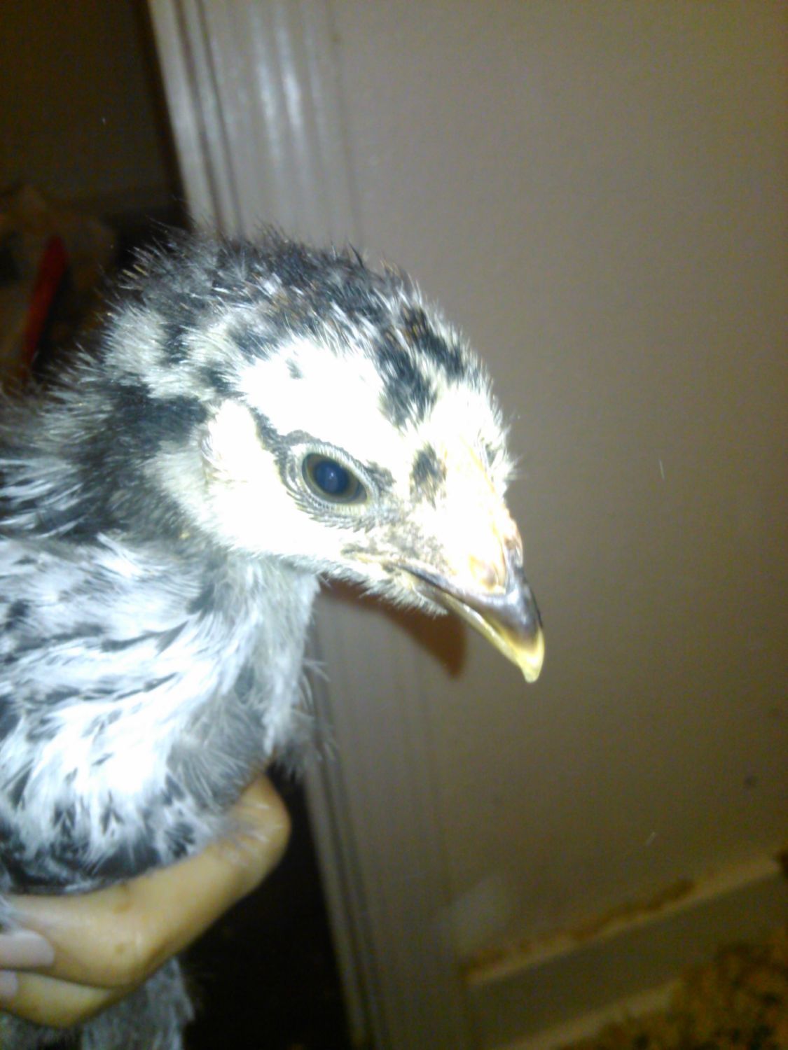 5.5 wk old BA on right. She/he has pointier tail feathers than the others.