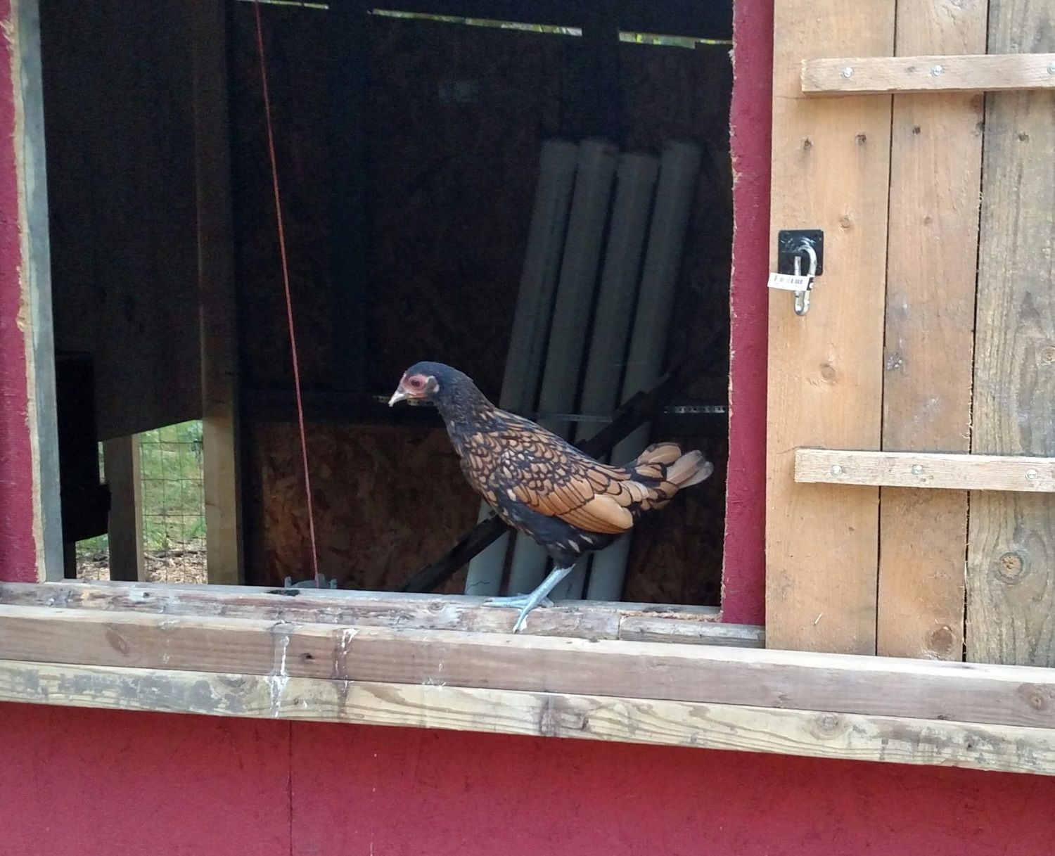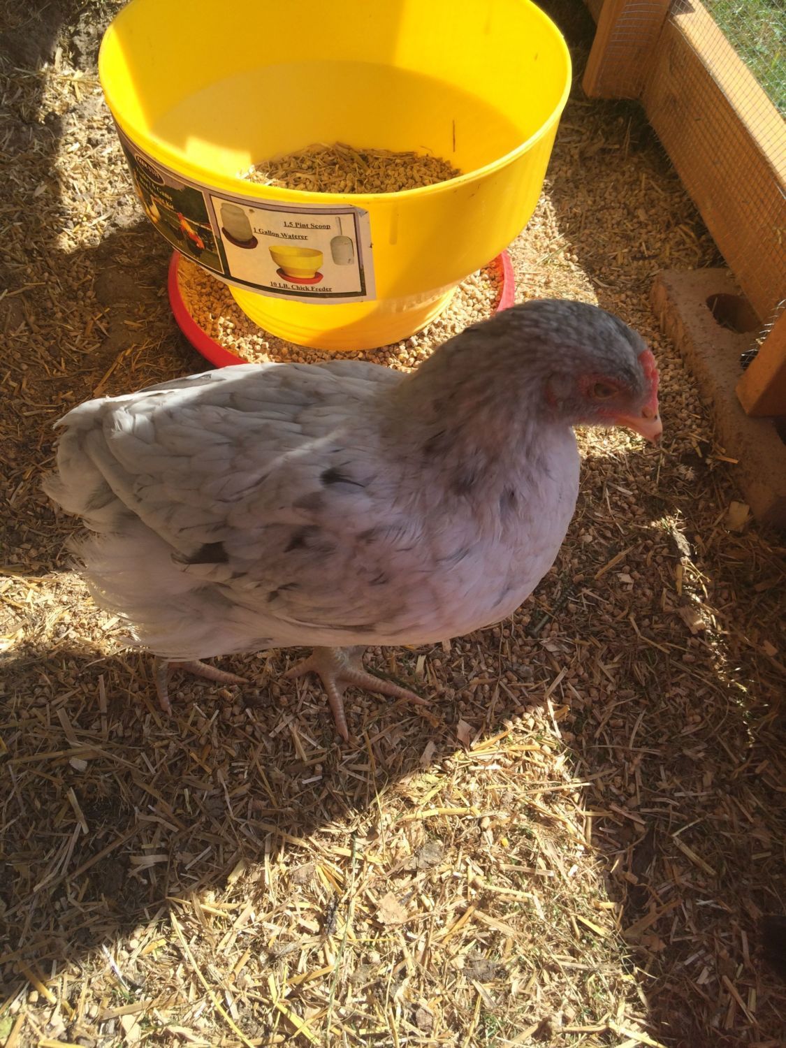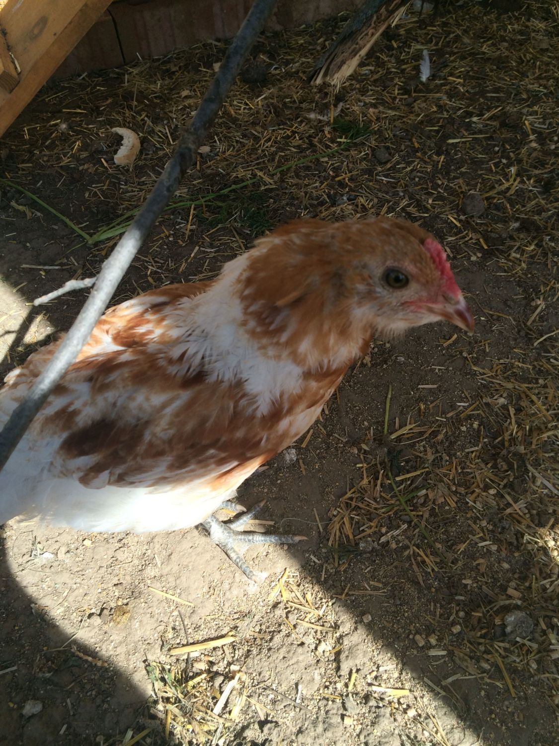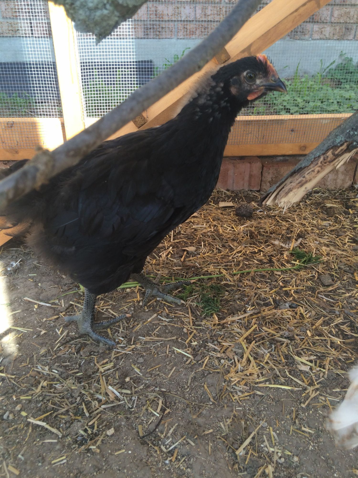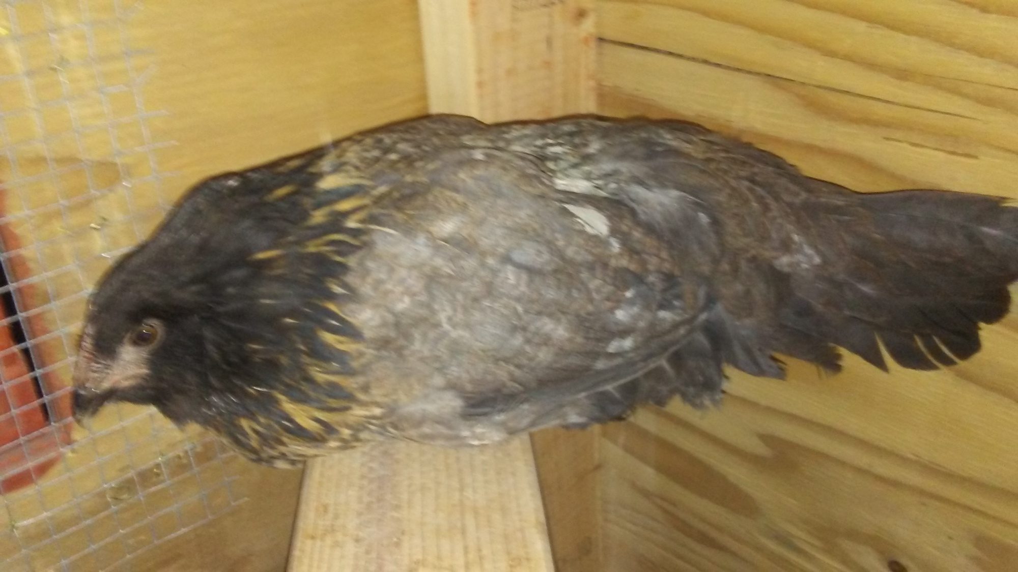 "She" is an Americana, between 13-15 weeks? The Americana that she replaced had an obvious dark red wider comb and crowed today at 17 weeks, I did a double take and all of a sudden realized his tail feathers were green! The reason I am questioning the new one's sex is because her tail seems bigger than my other pullet... Thanks in advance! I can get better pics tomorrow when she is standing if needed.![]()