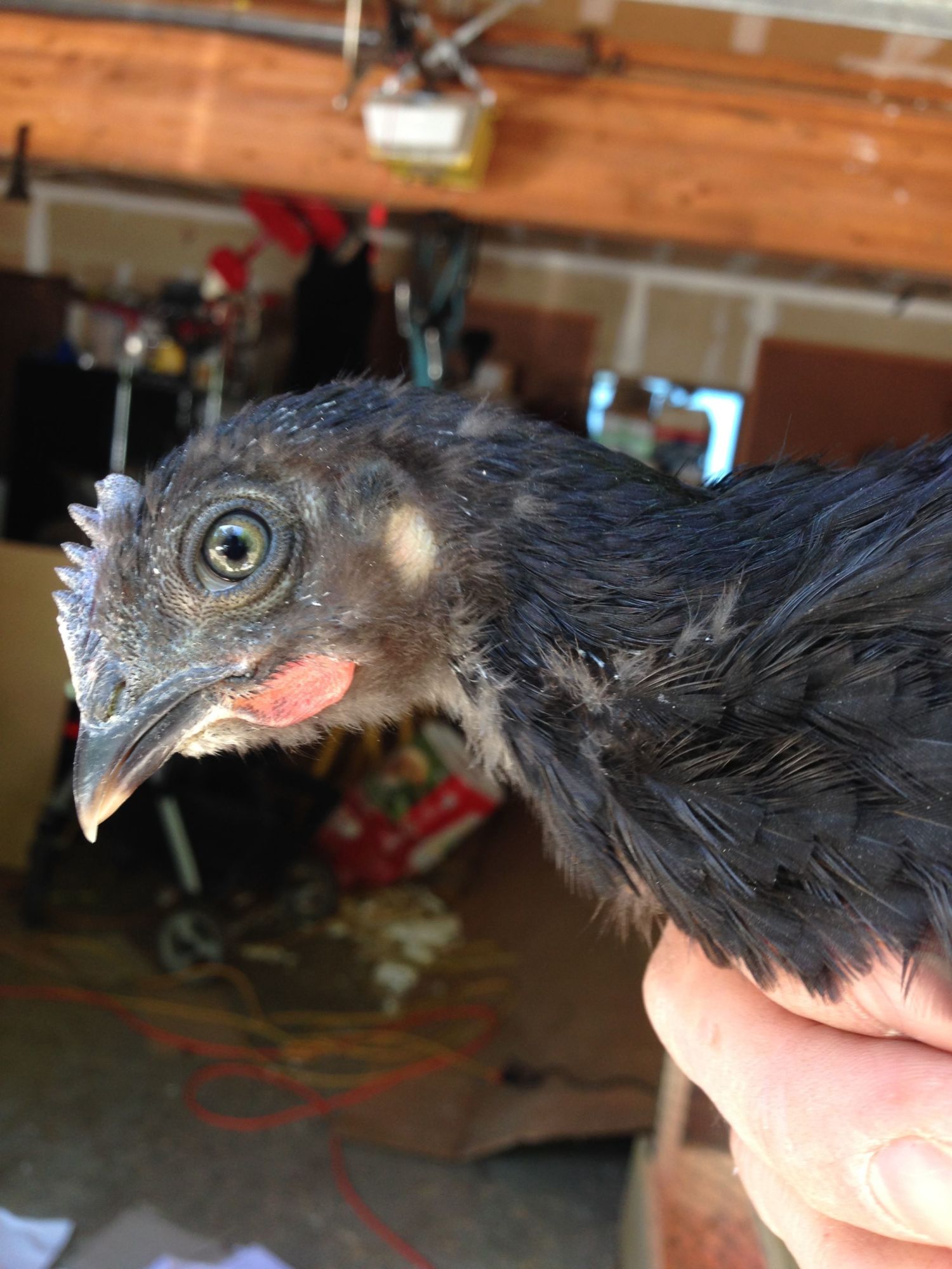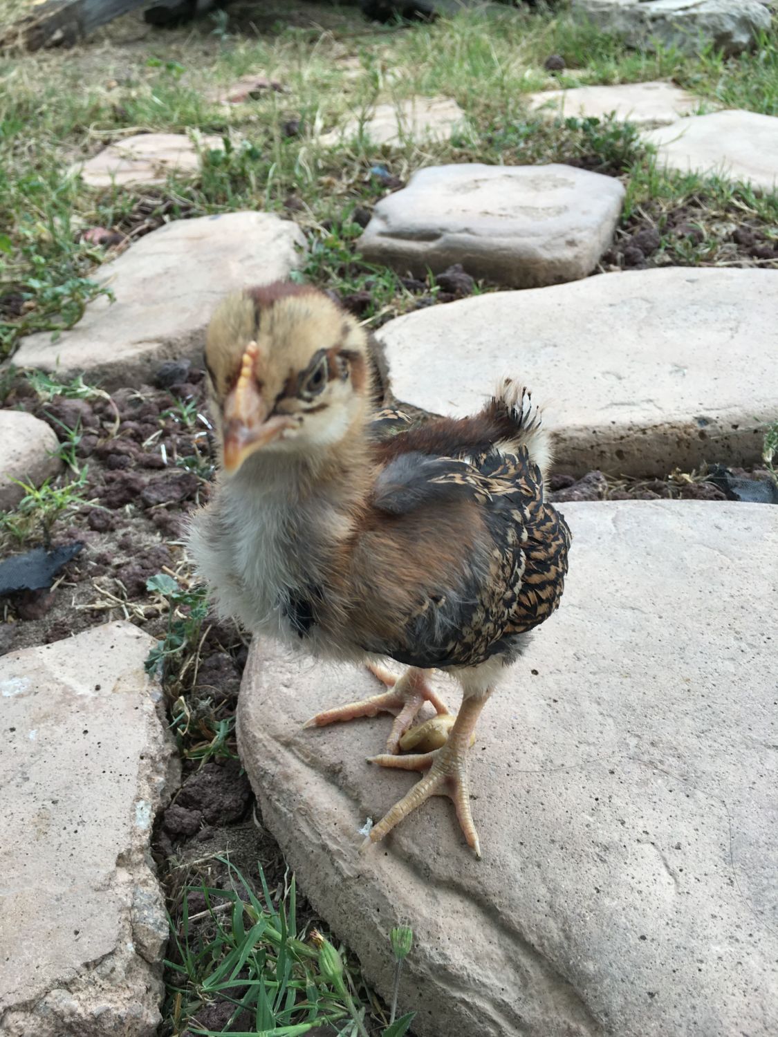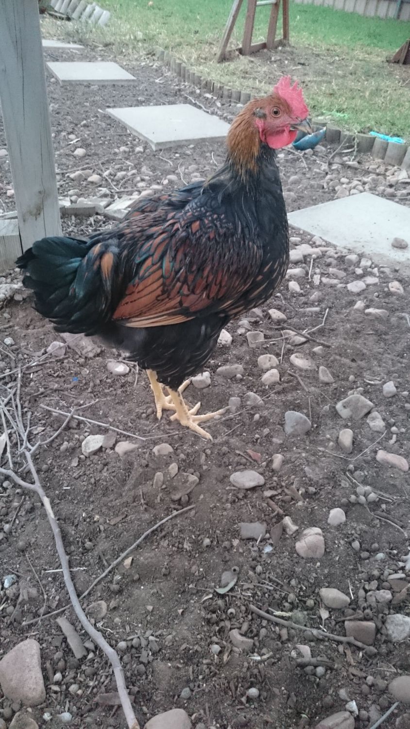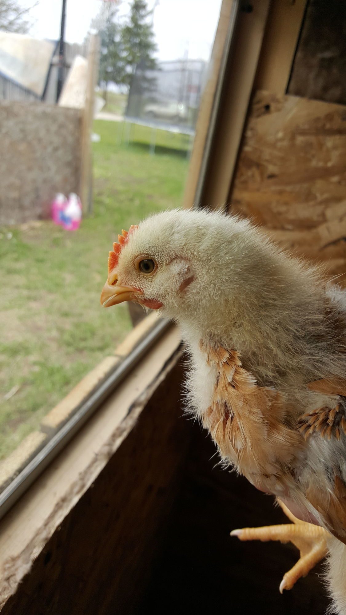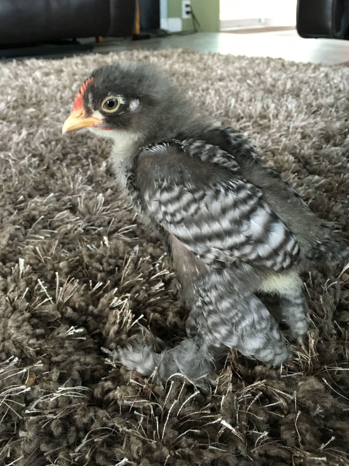 And this one we thought was a pullet but the red wattle just popped out. Also has brownish spots (barring?) on its back that we also just noticed.