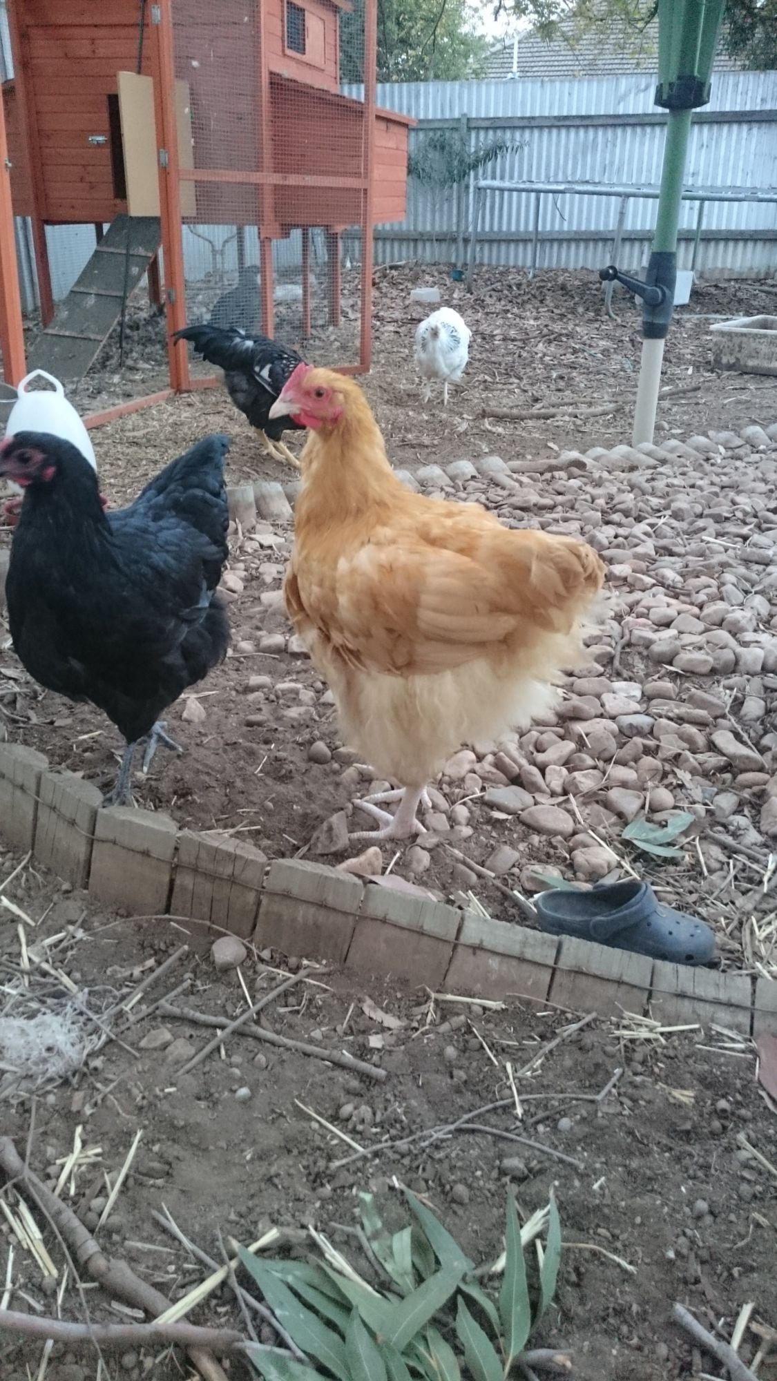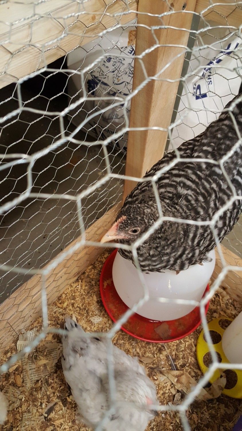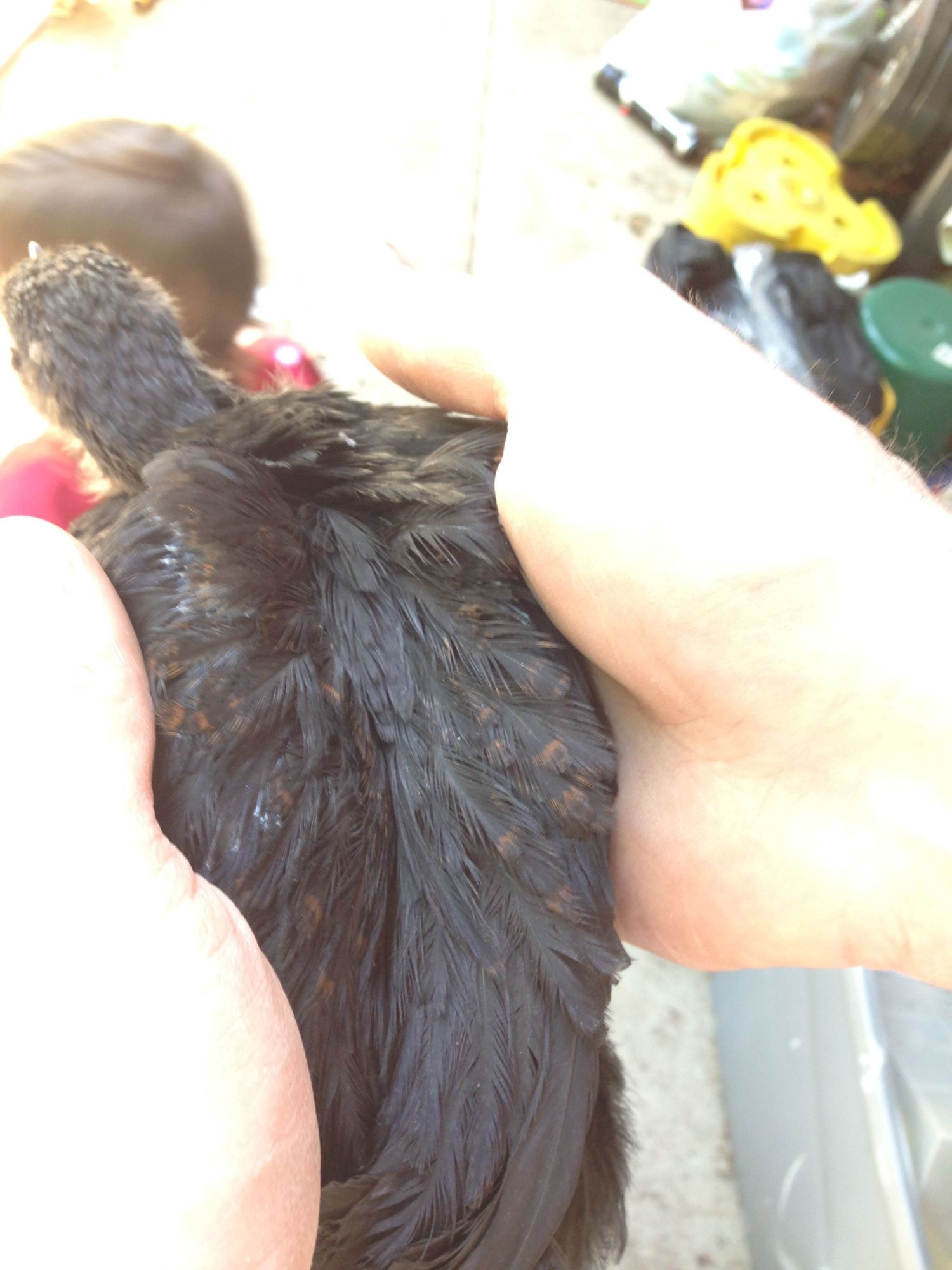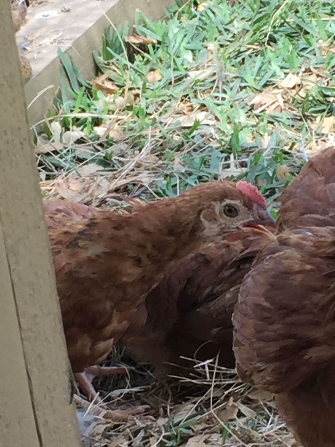 And this one we thought was a pullet but the red wattle just popped out. Also has brownish spots (barring?) on its back that we also just noticed.