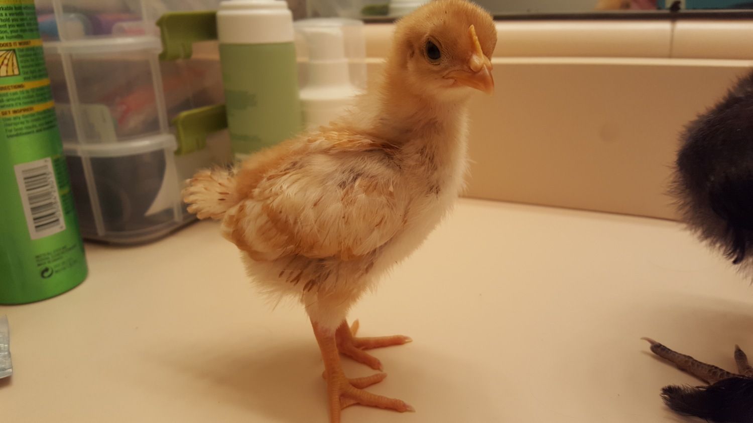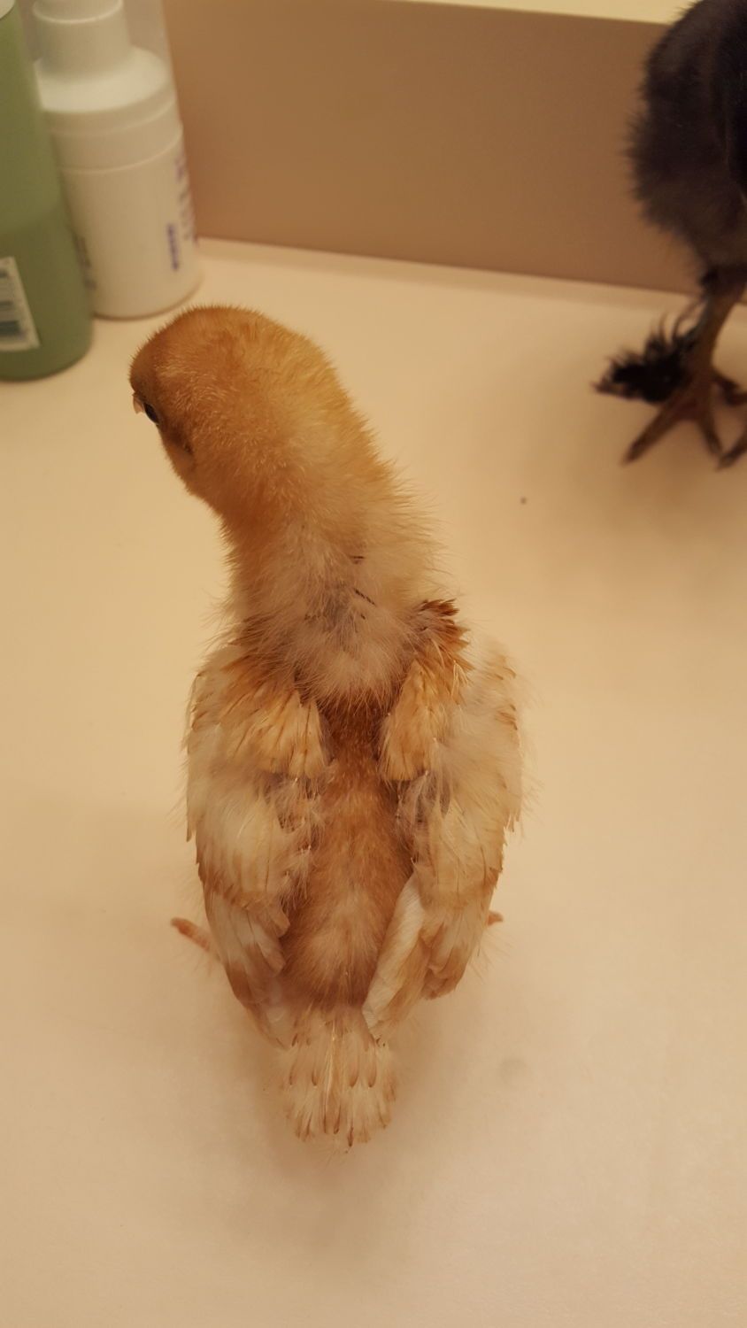 Ok friends....one of my mutt chicks looks like a creature! What kind of chicken is this? Pretty sure he's a Lil roo.3 weeks old.
