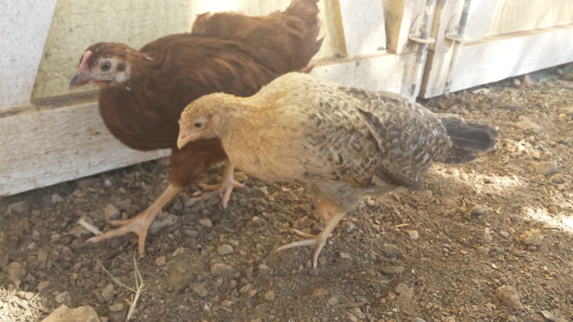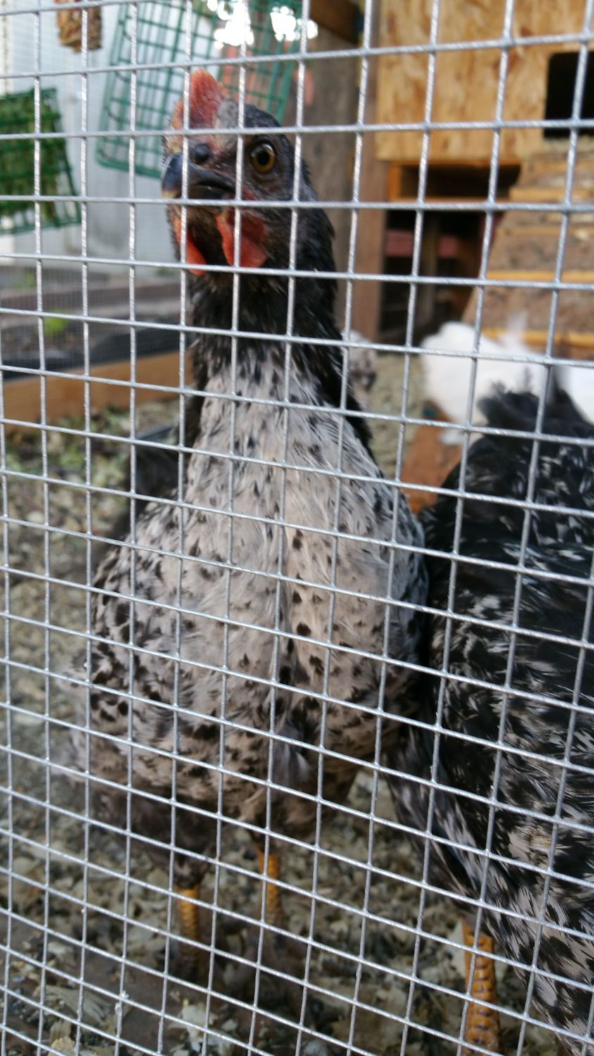 Probably just a mixed breed. Both look like pullets.Hi! So my sis and i won 2 chicks at a raffle. One im sure is an rir but the other? I have guesses on it. Im thinking either an old english game bantam or a norwegian Jaerhon. What do you all think? Also, pullet or cockerels? Theyre about 2 months old.