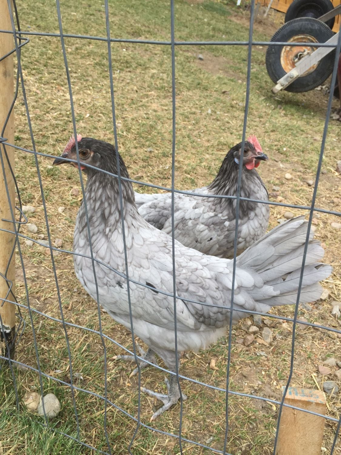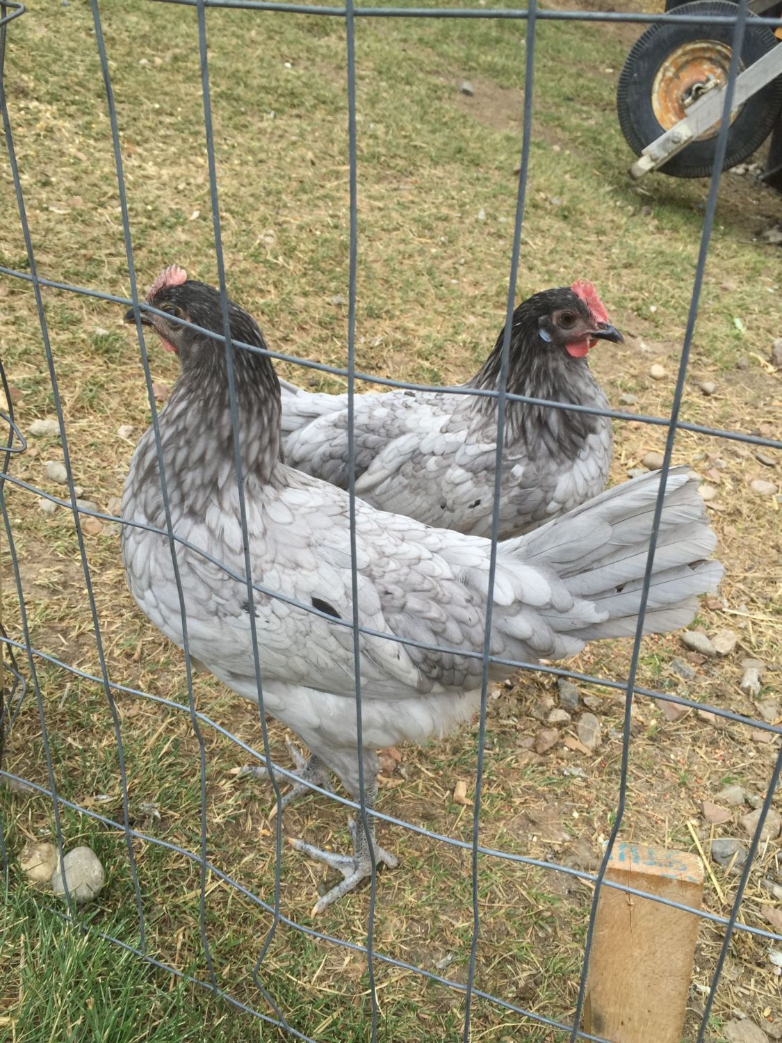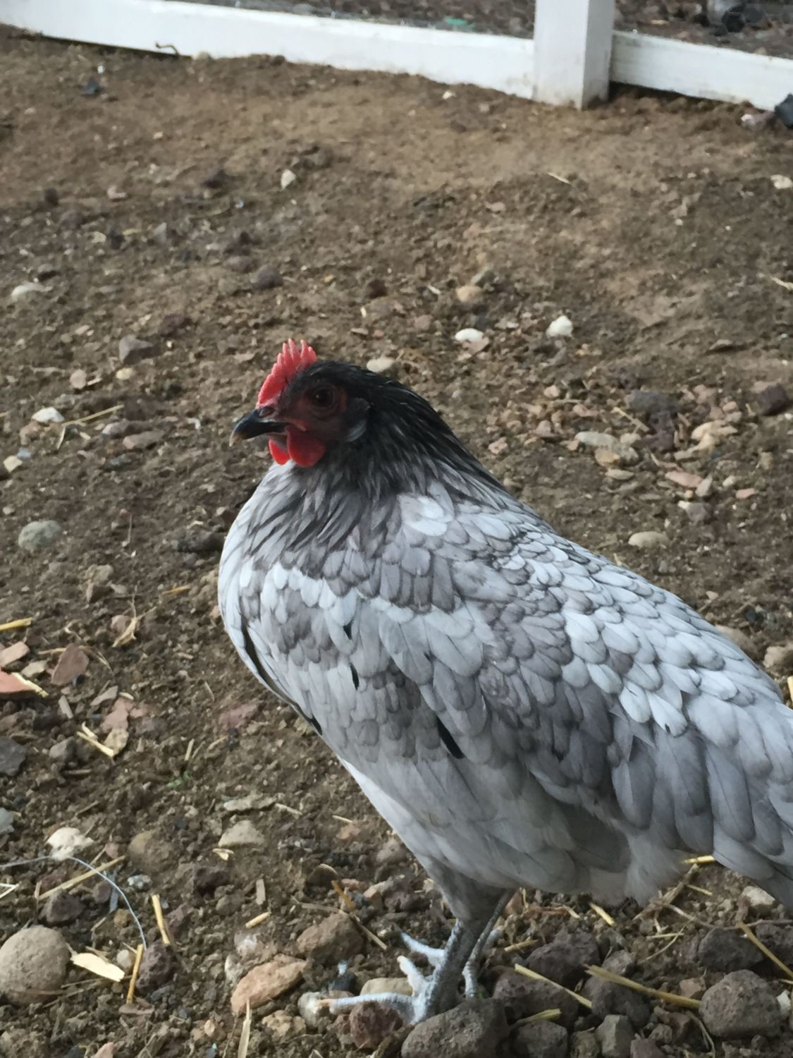 8-week-old speckled sussex. The one on the right in the top picture has already been deemed a rooster on here. But now he's starting to act rooster-y with the one on the left, as they jump up at each other like they want to throw down. So I'm guessing both are roosters. But I've never had a rooster, so maybe they're just playing.
