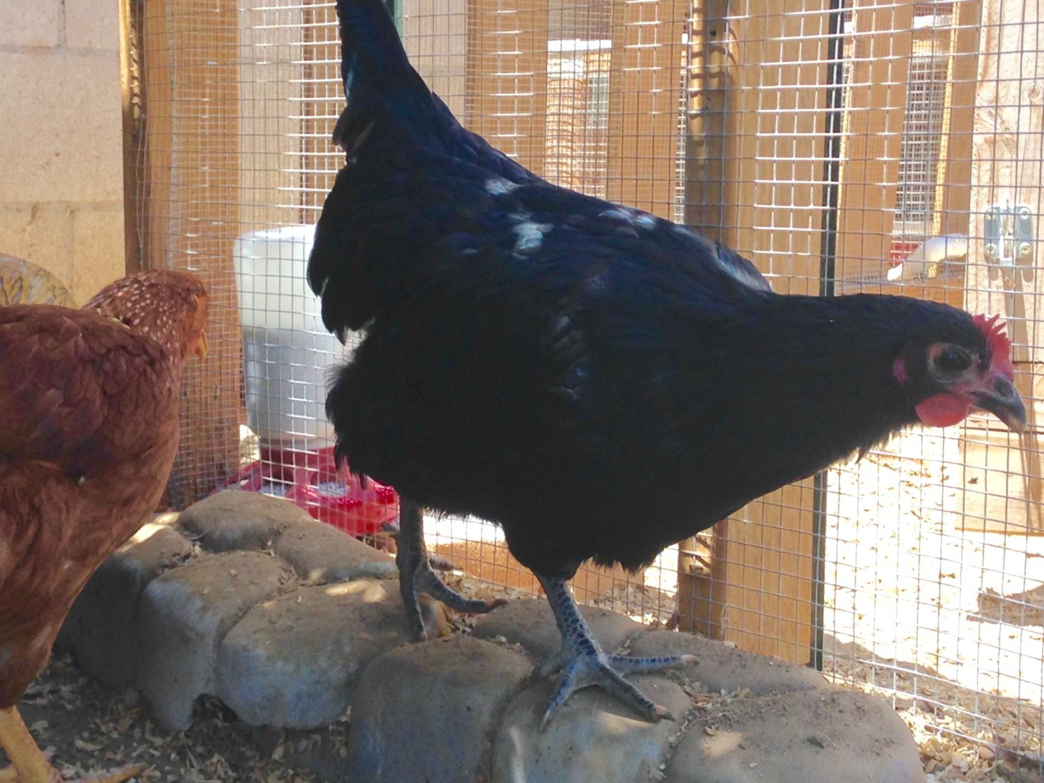 He/she needs a bath! Ernie is the one I thought was a cockerel because of the different tail shape...(Is Ernie and Ernesta? or Ernesto?