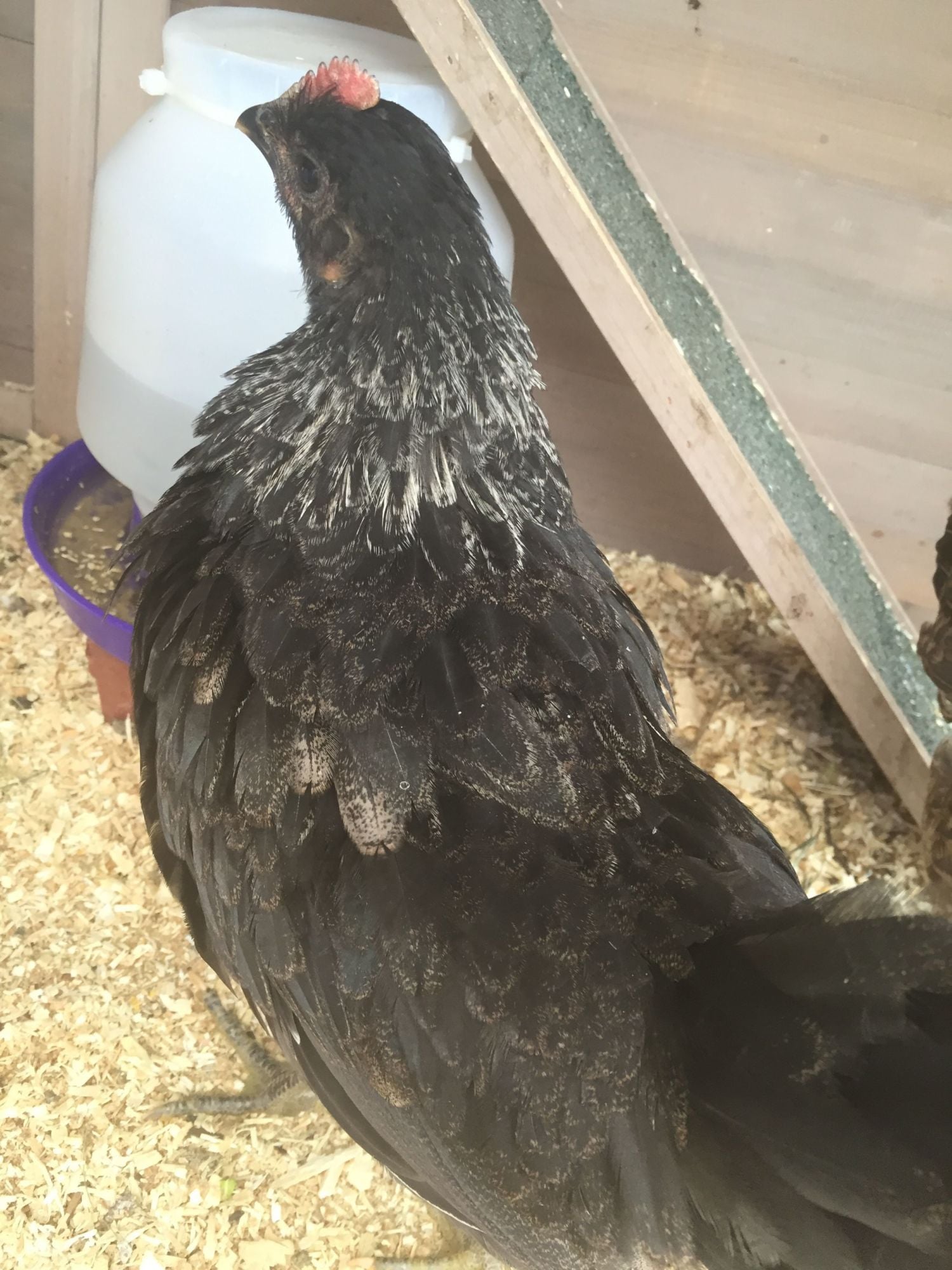 Doesn't like picture taken had to chase around everywhere. Doesn't spar with the two cockerels but was the biggest bully to the two pullets we introduced.