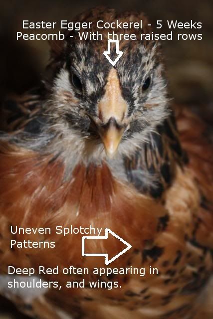 So as far as my Australorps do you say Roos?A bright red comb, regardless of breed, by 8 weeks old, is a sure indicator of a male. Patchy coloring, or deep red through the shoulders is another sure sign.