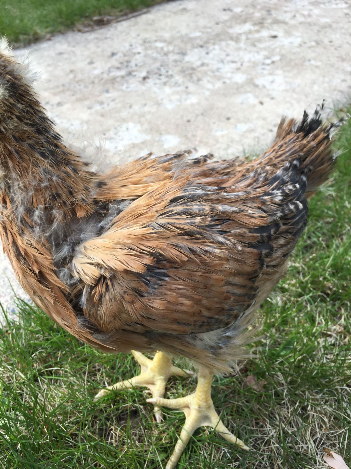Pullet, I believeI'm pretty sure my 4 week old EE is a girl, but just for fun, it'd be interesting to a chicken newbie like myself to see what others think. A little background on her... She's the same age as my other 5 girls but MUCH bigger (although the pics below don't do justice to how much bigger she is). She never starts fights with the other girls but she never backs down either. I've noticed that while she makes sure she gets her share of food, treats, water, etc., she also makes sure that everyone gets some too. Until the past week she was always the first to come to my when I visited them throughout the day but was never much interested in interacting with me. It was as though she would just like to make sure it was me and then go about her business. Finally, she is more likely than the others to be wandering around by herself, leaving the others (probably all BA's) to their business. Here are a few picks of her, let me know what you think, thanks!![]()