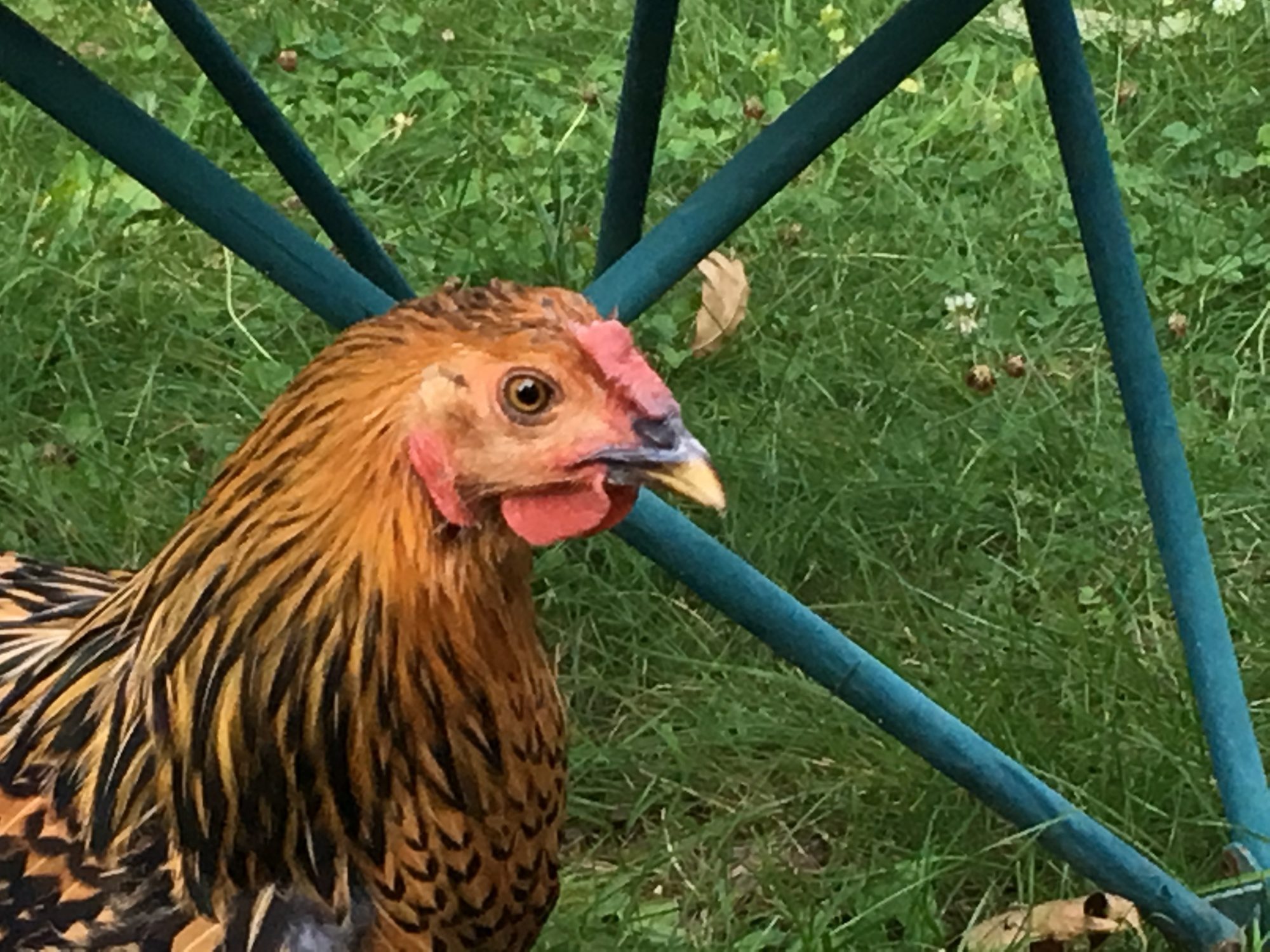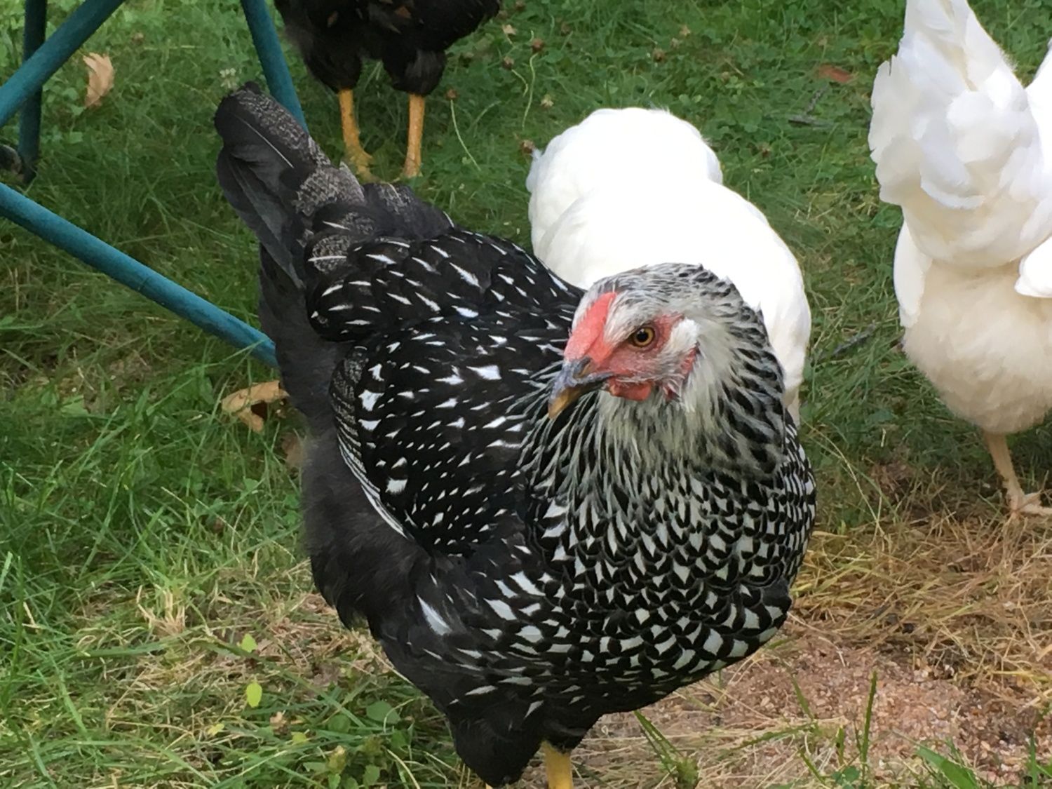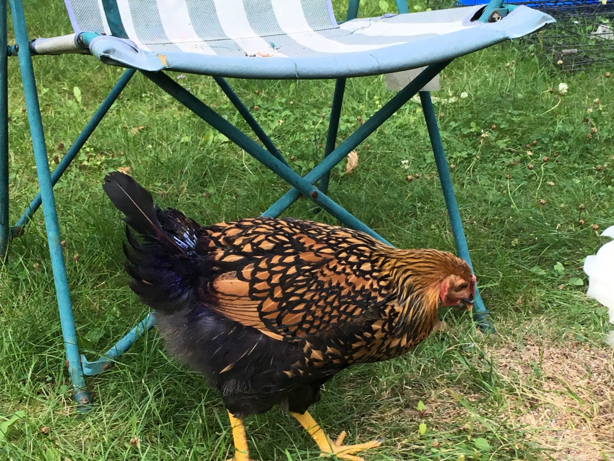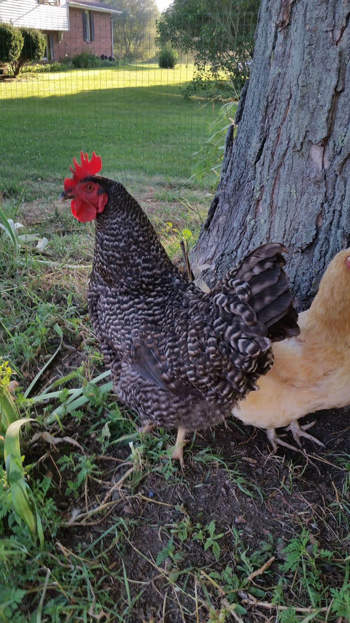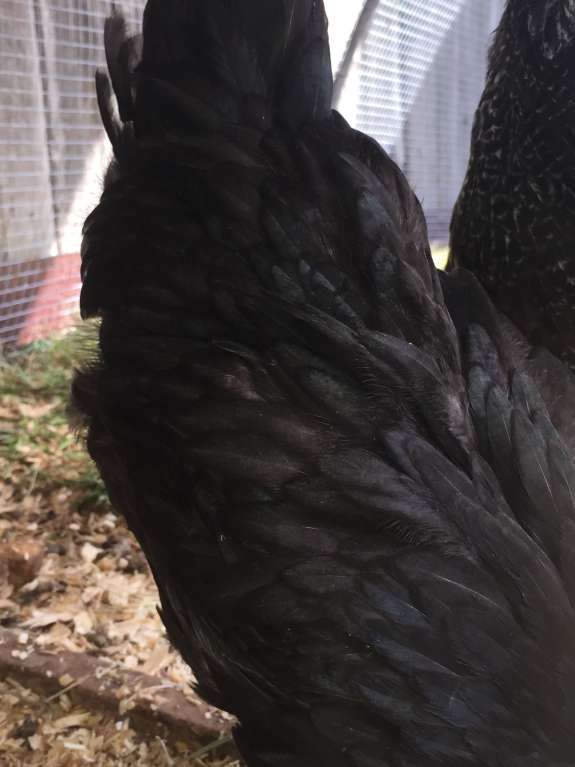 This is Blue. We got her from McMurray in a order of Black Stars. Whelp, not sure what happened. We thought Blue was a roo since male sex links are barred, but Blue doesn't show any rooster behaviors. No crowing, no mounting, no tidbitting, she even gets mounted by other roosters on occasion (not often though). I have yet to catch her laying an egg either, and she's just over a year old. So I am rather confused. She is very large; same size as our Orp and GL Wyandotte roos. But like I said, no crowing or anything roo-like. :/