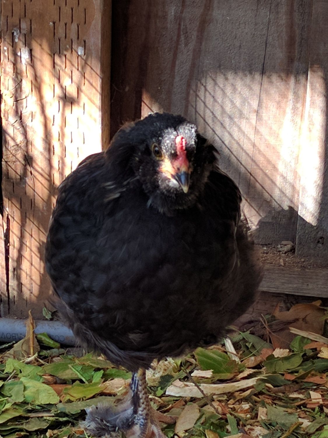 Cockerel. And probably a second or third generation Olive Egger, with Marans and Easter Egger in his mix. The black one in the picture with the Legbar is suspicious as well, with that dark red in the shoulder.Anyone want to make a guess on pullet or cockerel? I'm confused about the black one standing alone. (It does have two legs but it just standing on one in the photo. Hard to get a good photo. It's kind of skittish.) It's 8 weeks old. It's either a Maran or an Olive Egger (Maran x Cream Legbar, I think.) Chicks that hatched from the same batch are in the photo on the right, clearly a pullet (also Maran or Olive Egger) and clearly a cockerel (Cream Legbar, autosexed). But the lone black one, I'm not sure. I would have said cockerel except that red comb hasn't really gotten any bigger, and it doesn't act like a cockerel as much as the Cream Legbar does.