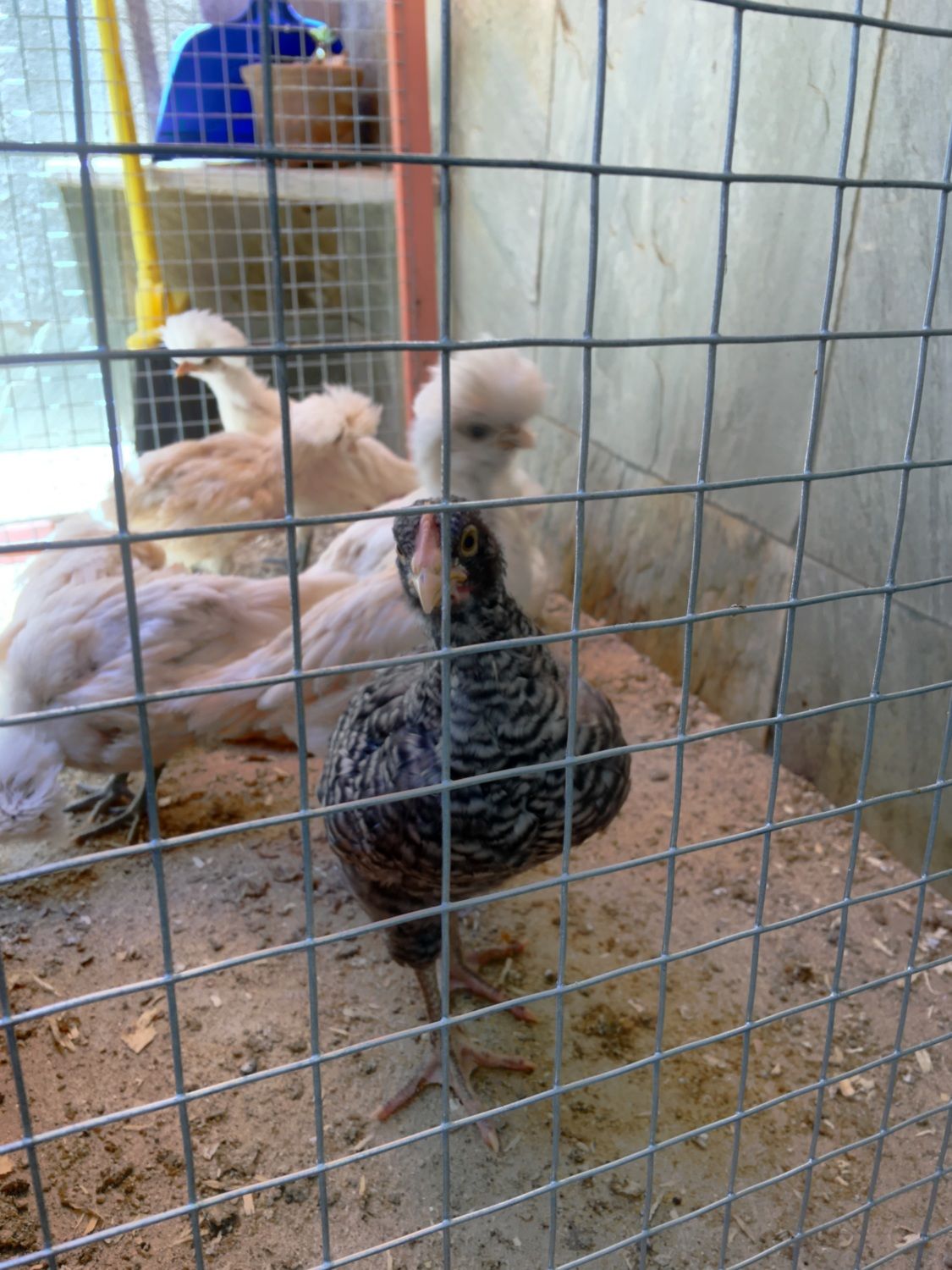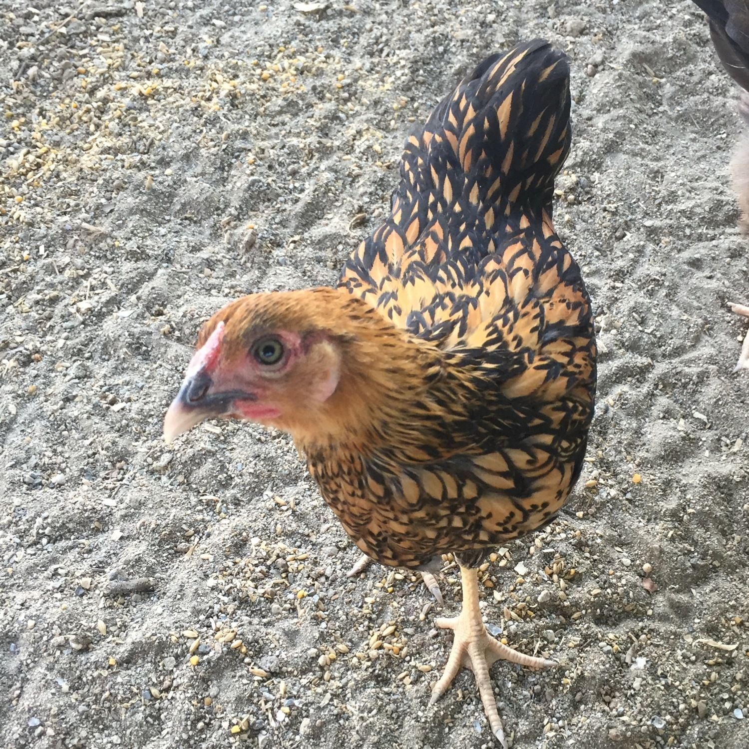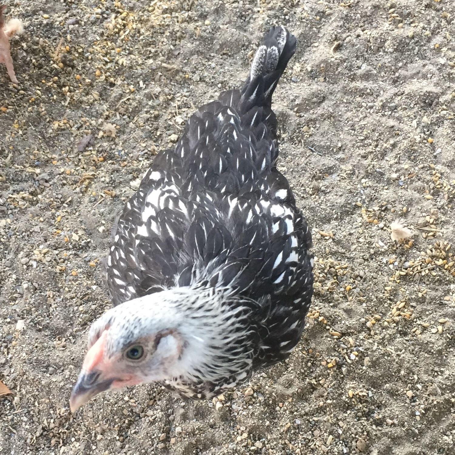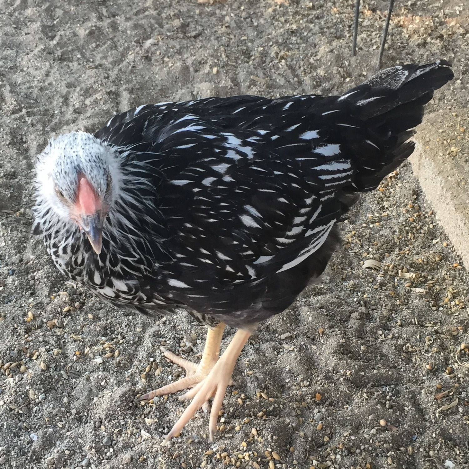 Probably a Dominique with the white legs. And probably a cockerel... pinking up, wattles coming in, and a lot of white on the feathers are the clues.6 months new to chicken-keeping and hopelessly addicted. I read so many of your forums and posts morning/noon/late night, while I was getting started. I can't thank you enough!