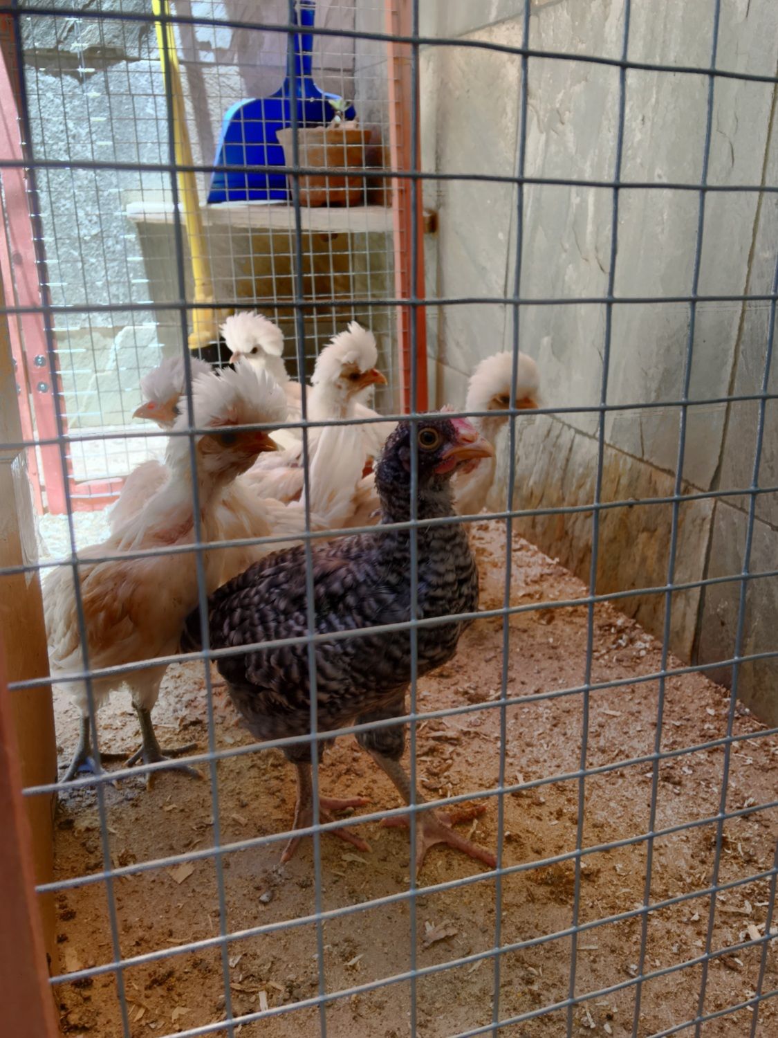 The pretty one perched on the left with the big bright red comb and wattles is a cockerel. From what I can see, the others look like pullets. Can't really see the white one well.