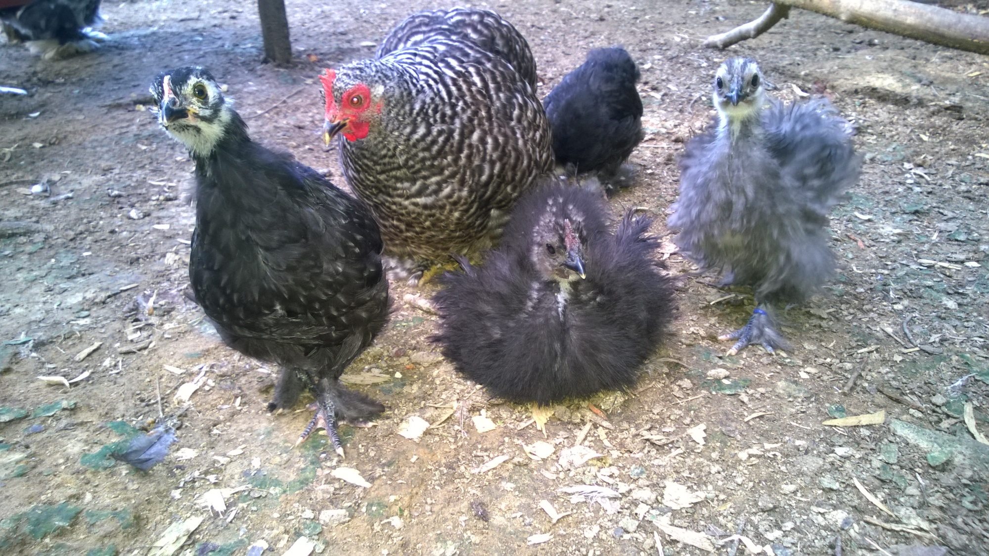 He's only got one copy of the muff/beard gene, so only about 50% of his chicks will be muffed/bearded. That third chick pictured is definitely muffed.Ok, that would make sense, because the person I got the eggs from had some d'uccle also.