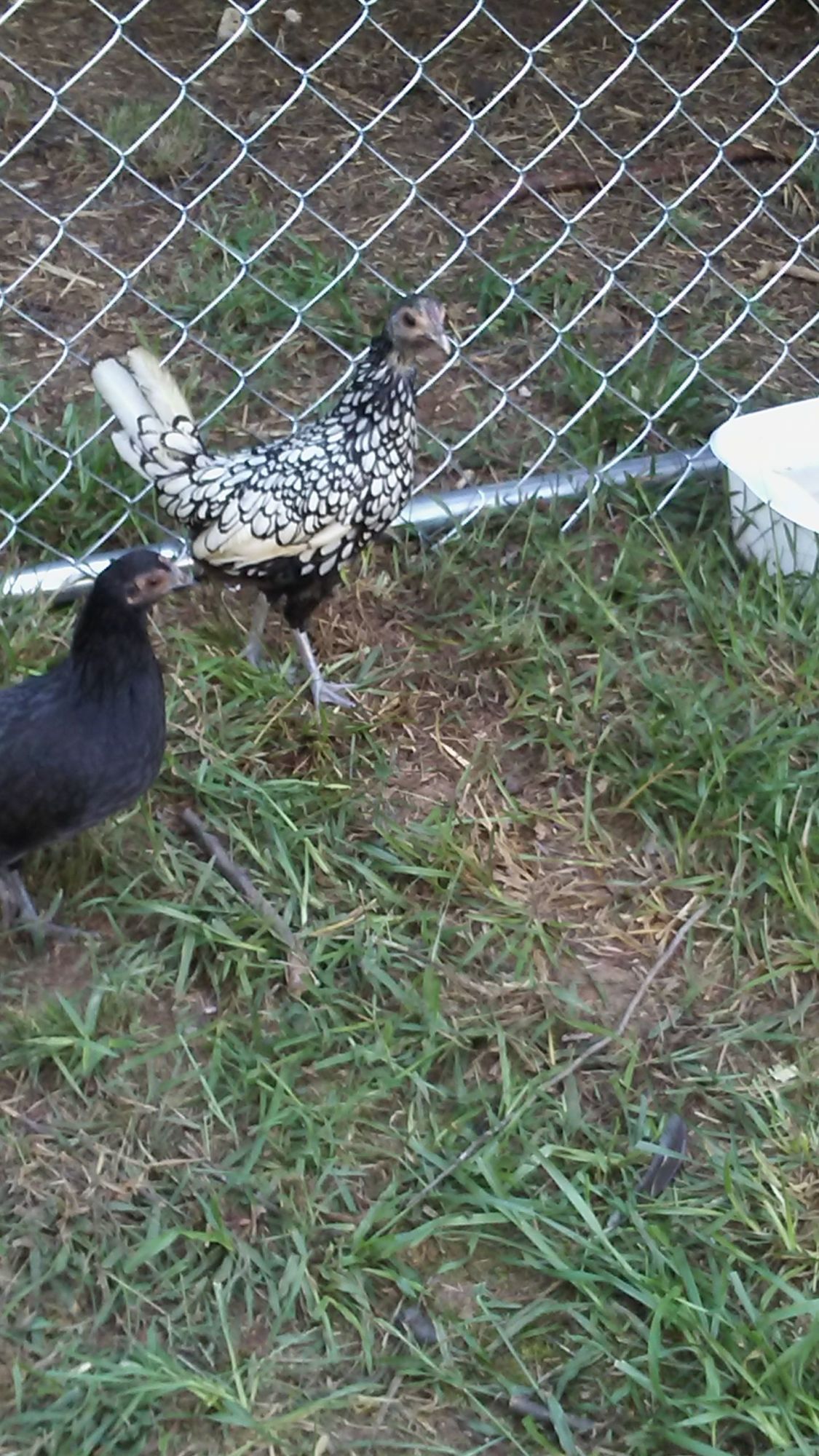 All 3 chickens below are the exact same age - 8 weeks. (And one lovable old kitty who couldn't care less about these new additions.)