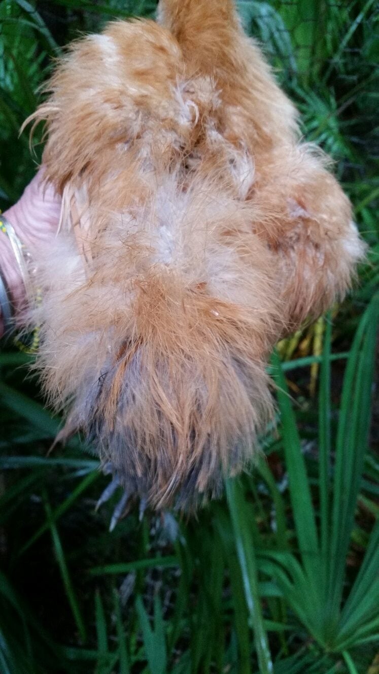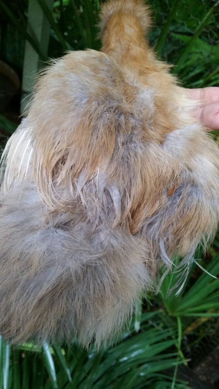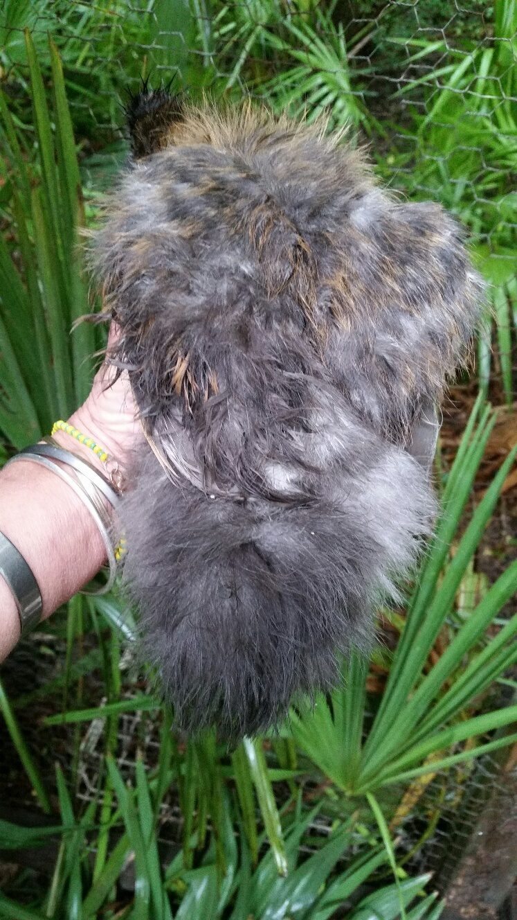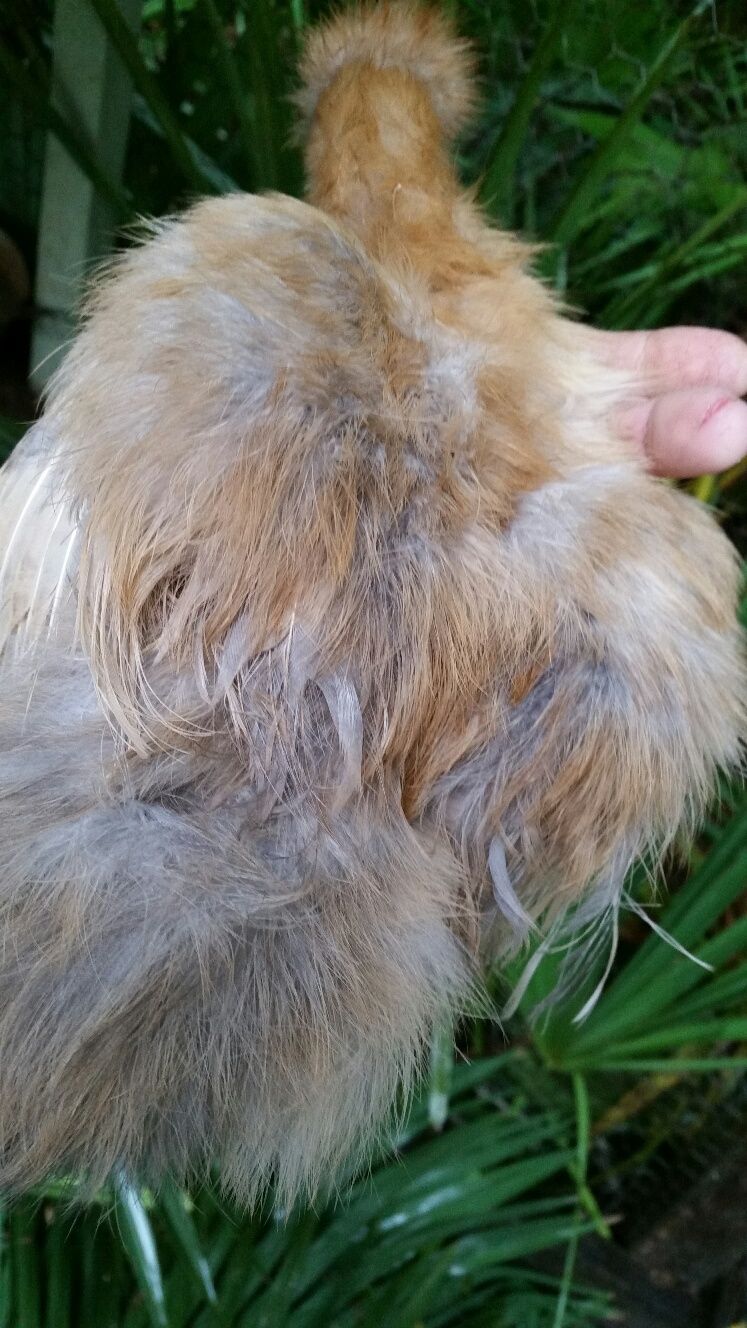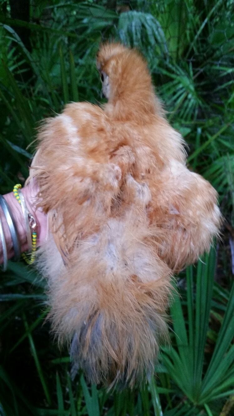 Silkie mix roo who behaves like roo). Don't notice streamers. Tail isn't just a round bunny poof, but has some feathers hanging over...again, I have no idea if that is seen only in Roos or if both genders have this?? Purchased him/her from a local farmer and it surely is only pet quality (fine with me!) but we can't keep Roos hereOnce our Silkie mix starts crowing/mounting we are rehoming him. Sorry for so many photos, just want to show all his/her features.![]()