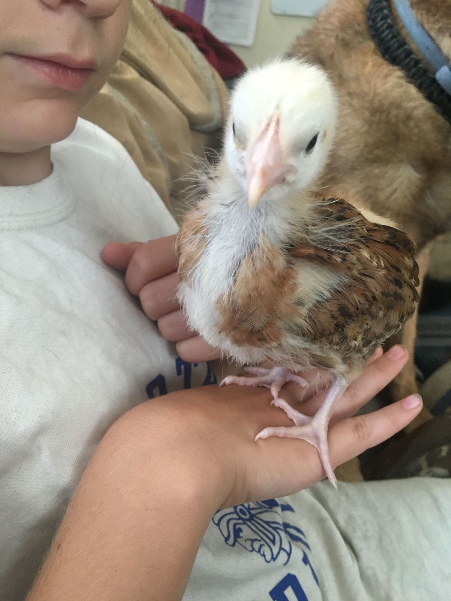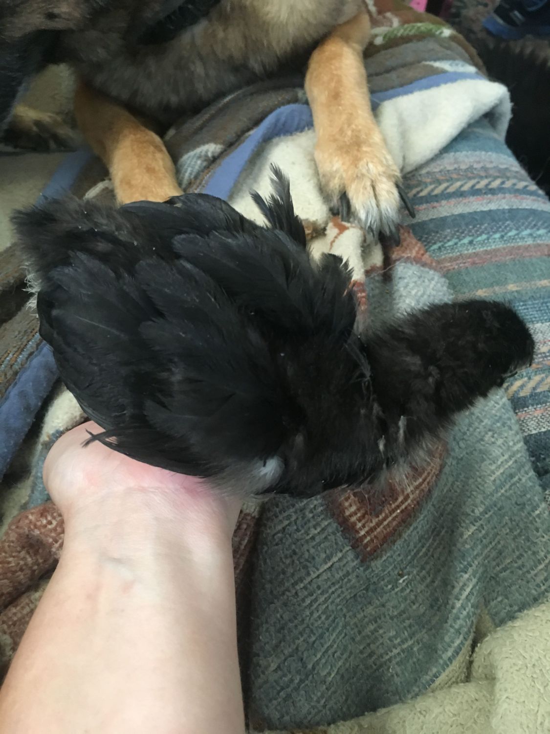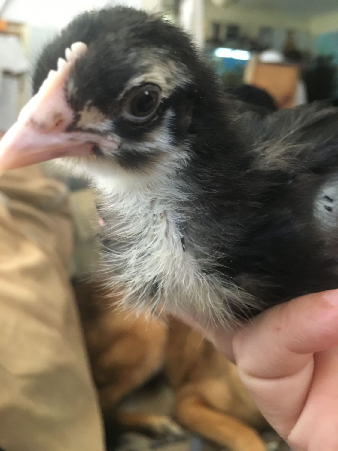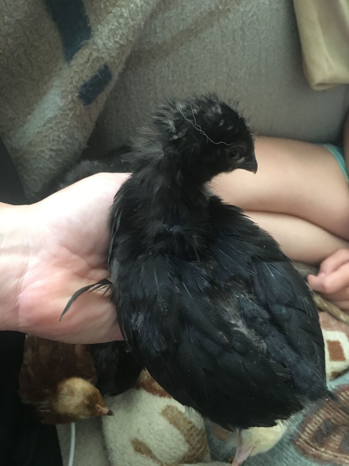 Black Orpington #3 most active chick, likes to climb and/or snuggle