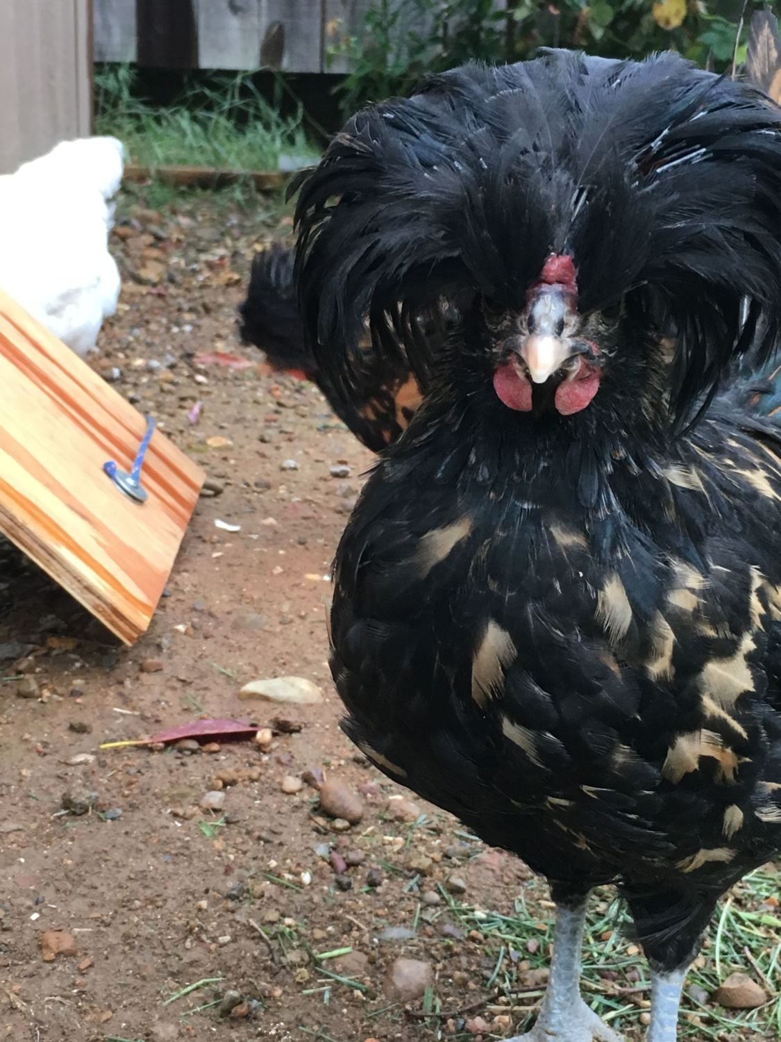 This is Twitchy, our Polish mix bantam. 7-8 weeks old. I'm thinking it's a boy, but the strange comb (and my lack of experience w/Polish or bantams) is throwing me off.