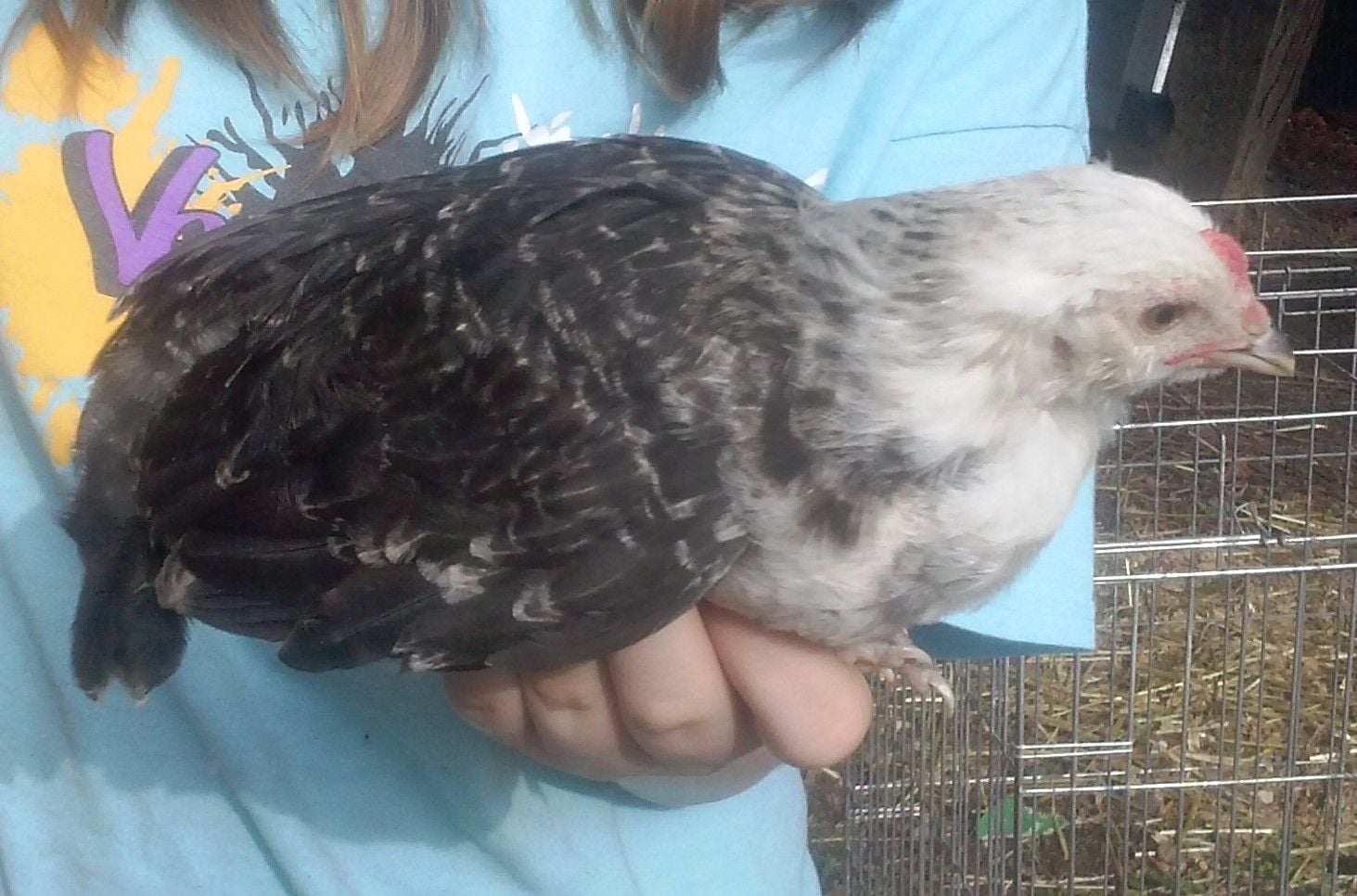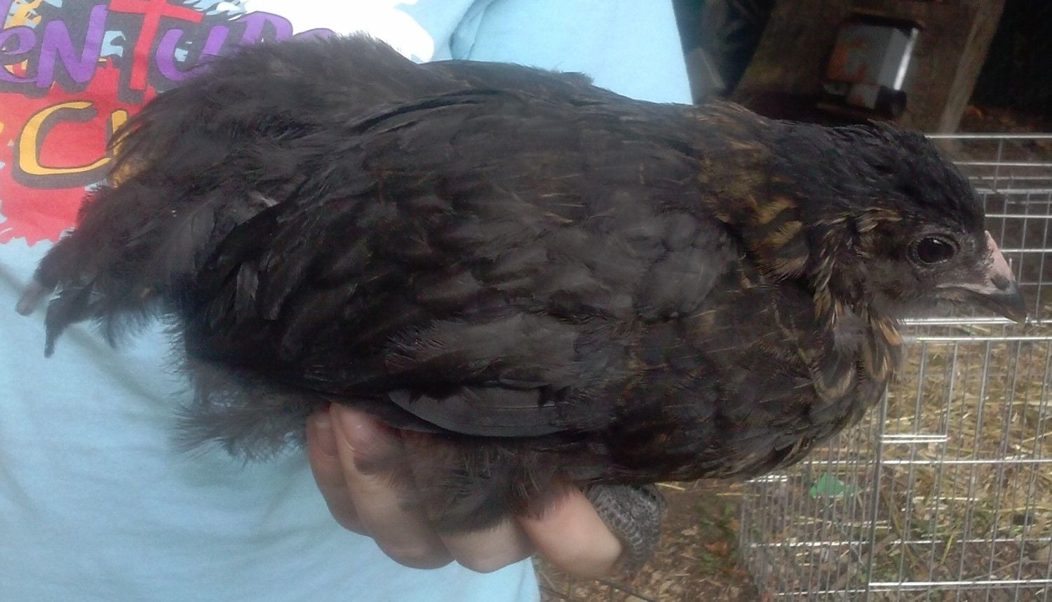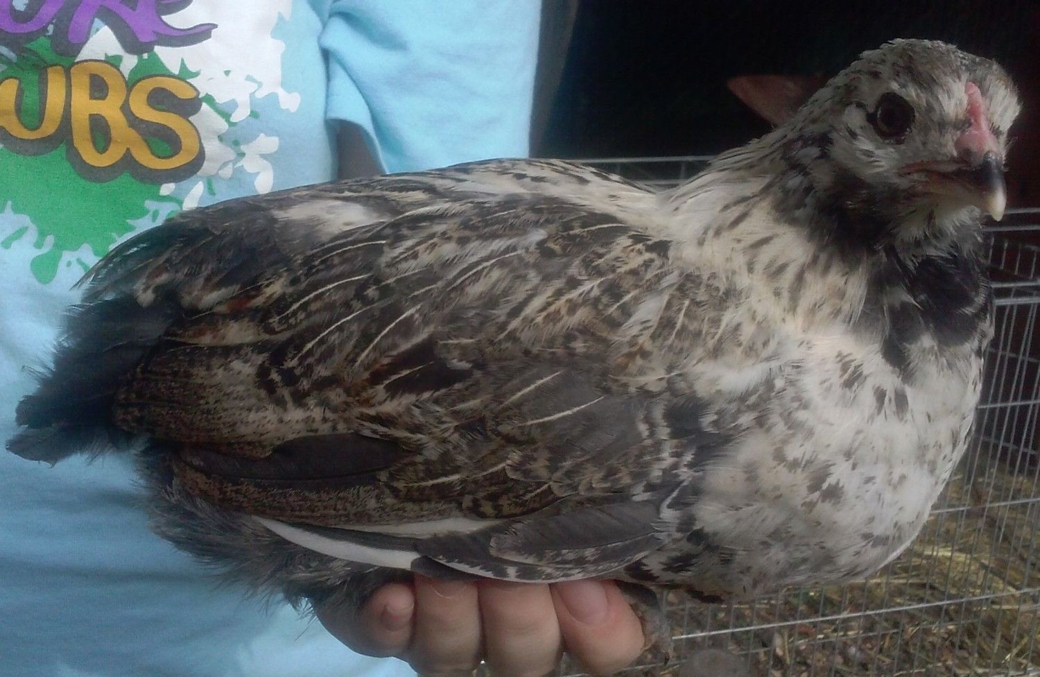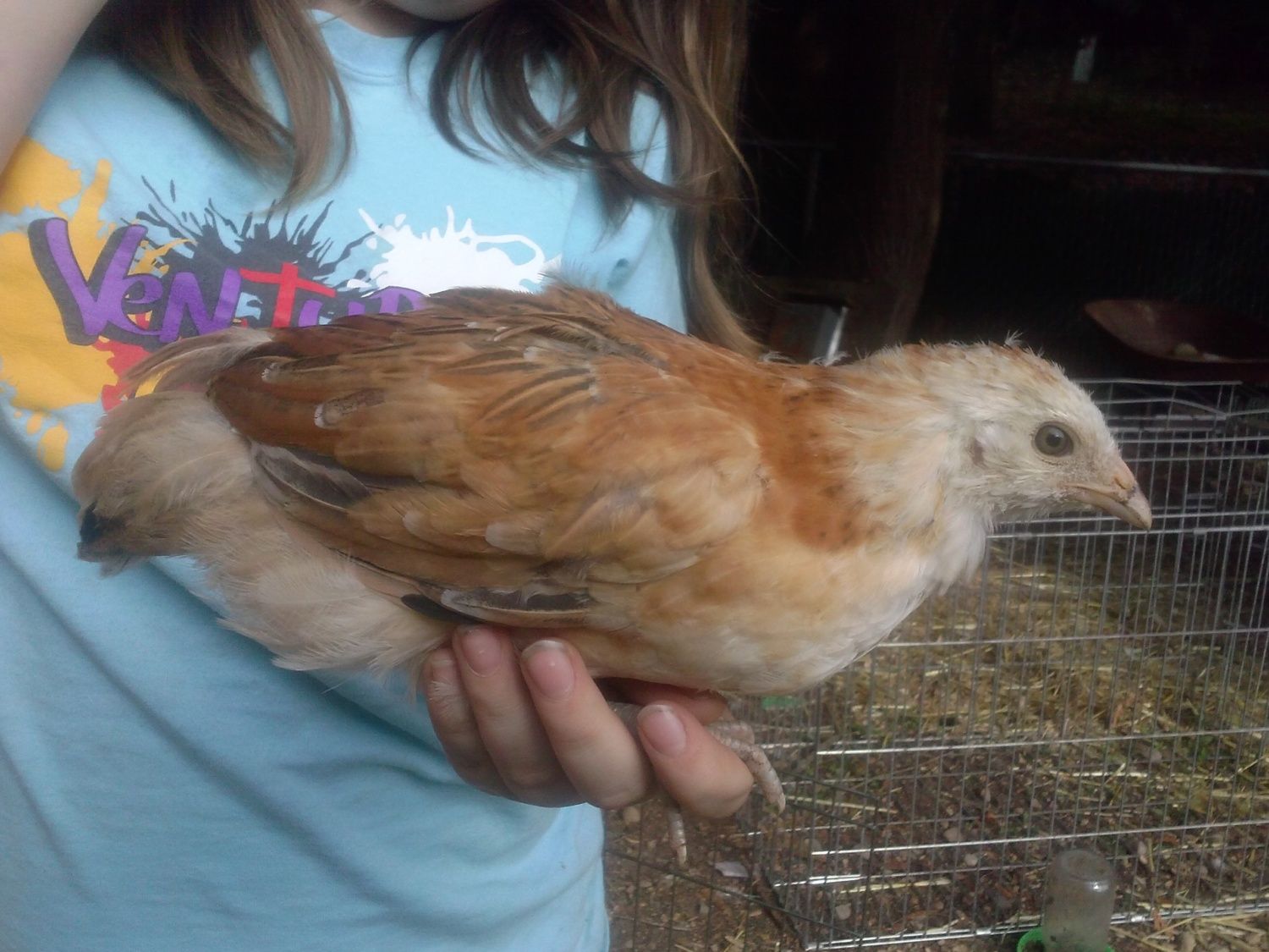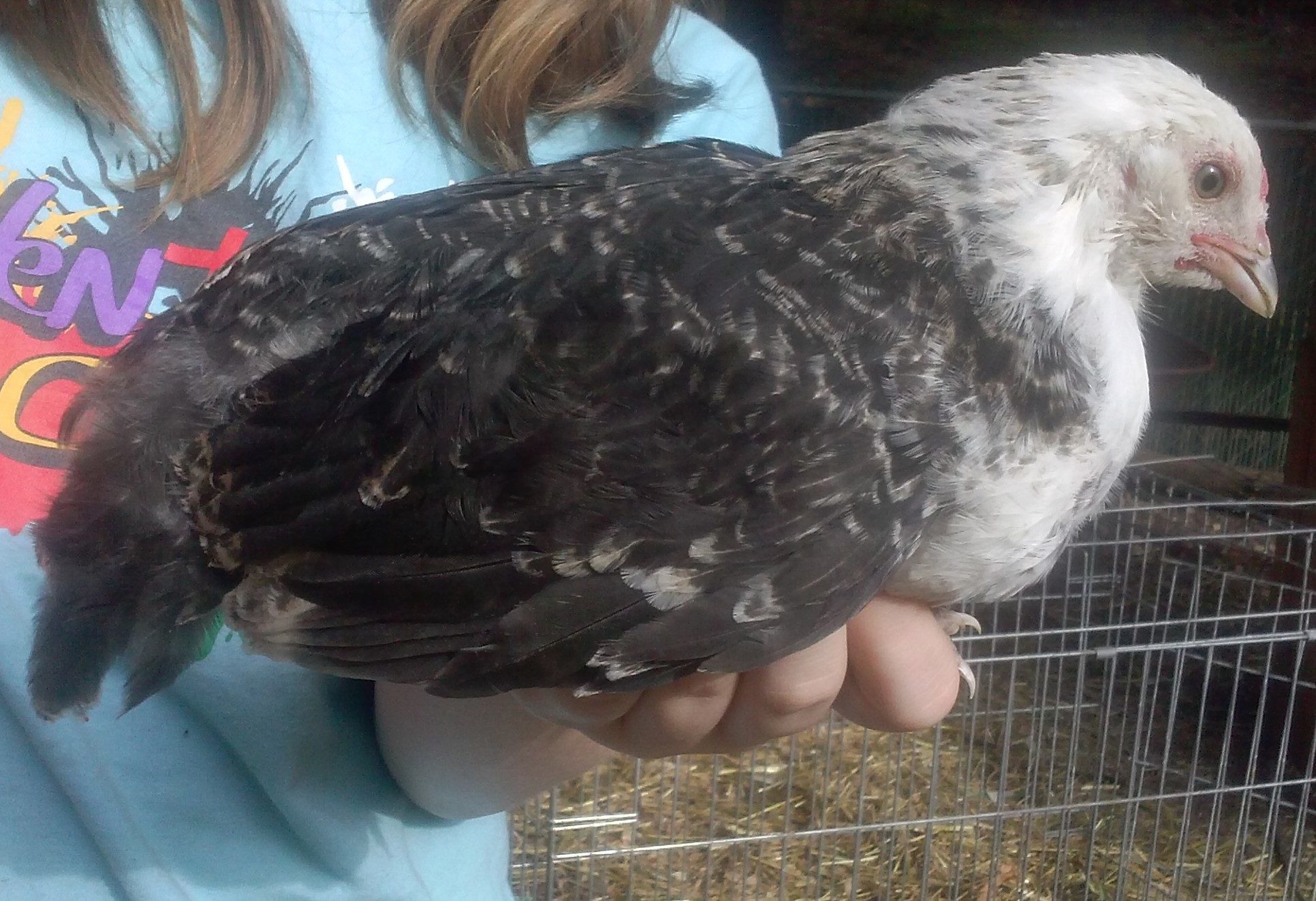 I know it isn't a great photo but Bea started growing this tail. Age 13 weeks. Is she a he? Comb is still pink and very little waddle developement.