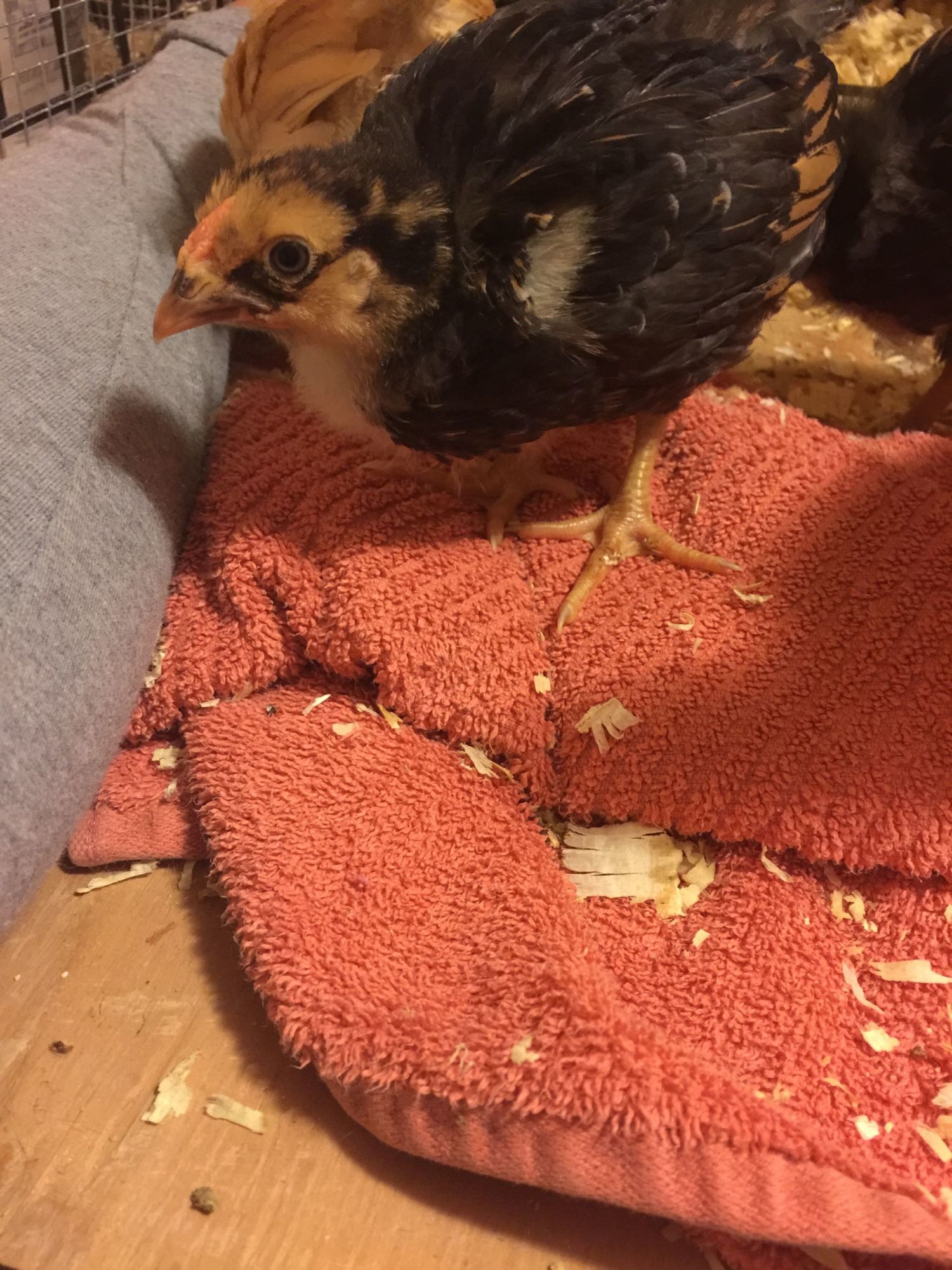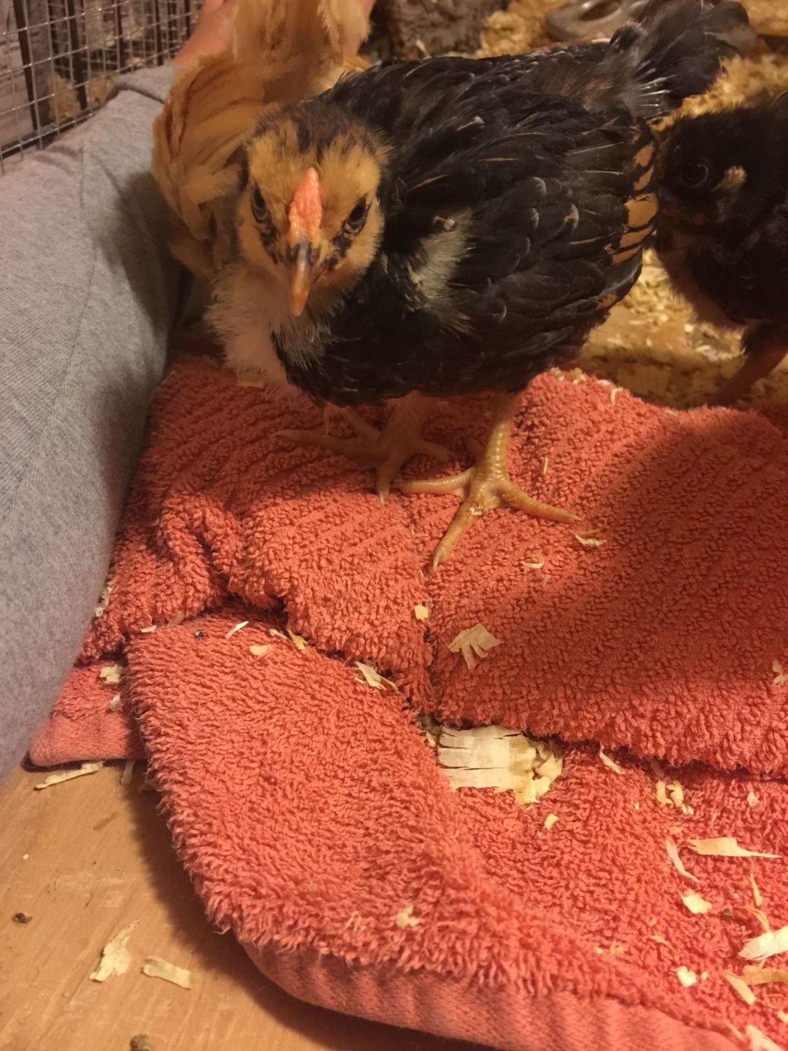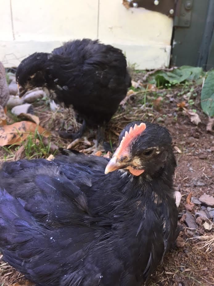 Front is for sure a rooster and the other a pulletI'm back! These are my two French Black Copper Marans at 6 weeks old. On Day One, the chick in the foreground had a big, bright comb, and the one in the background had a tiny grey ridge. Can we go from "probable pullet" and "suspected cockerel" to absolutely sister and bro at this point, given the difference in looks? Or do I have to wait for crowing / egg to be sure? Thanks.![]()