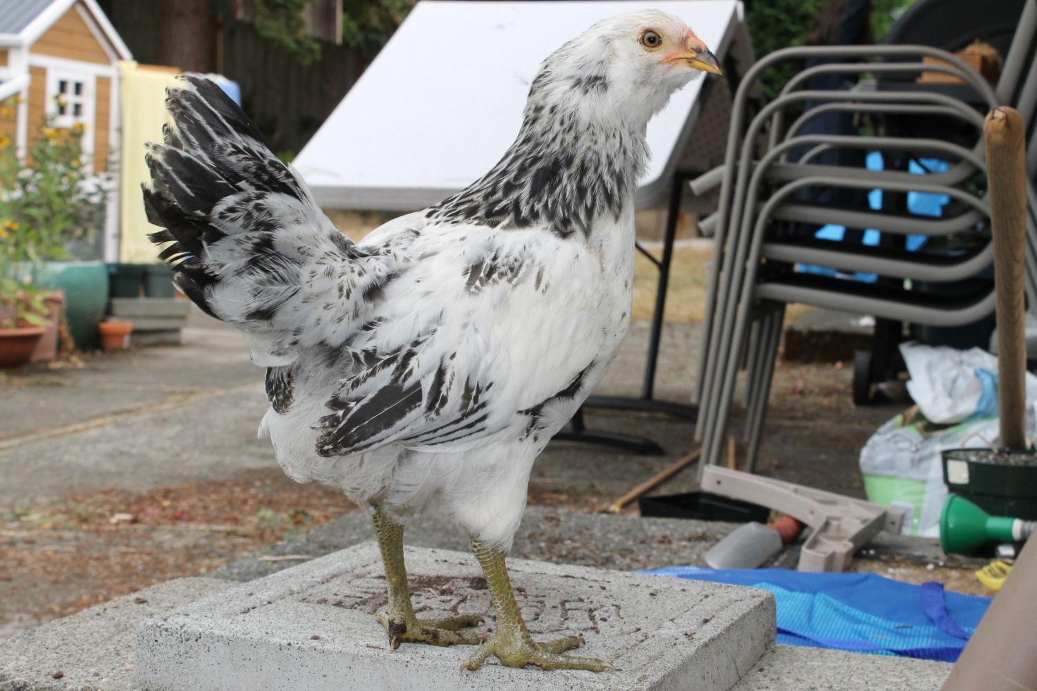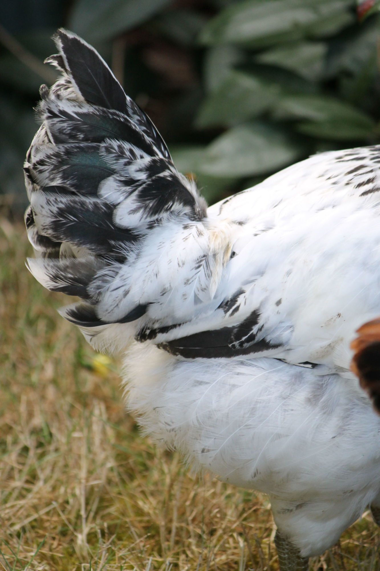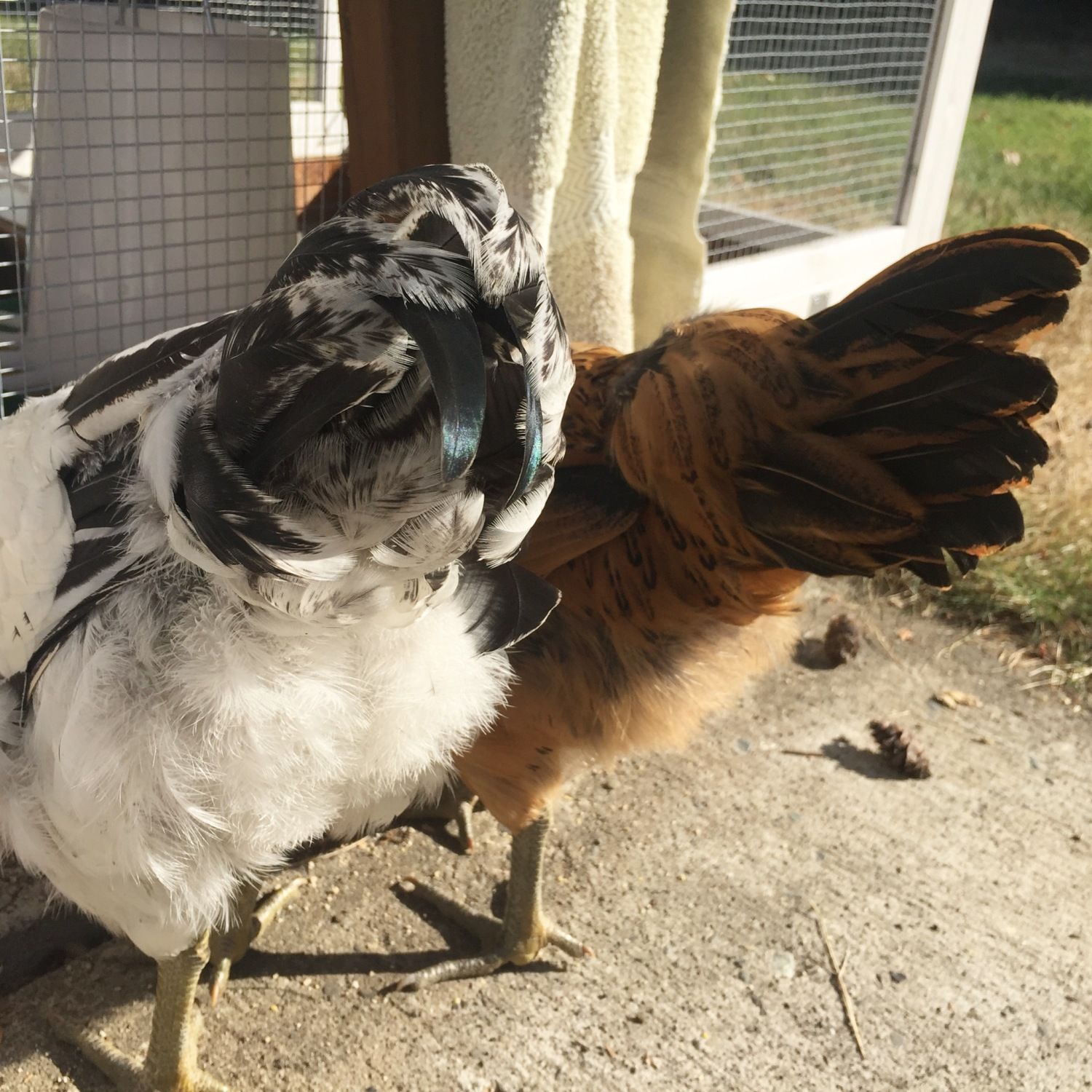 I promised to follow up on this Easter Egger chick, posted about several times previously (here, here, and here). I was worried early on and unfortunately had good reason to be. We're now at 12 weeks. He started crowing recently and we're seeing beautiful iridescent feathers come in on his neck and tail feathers.