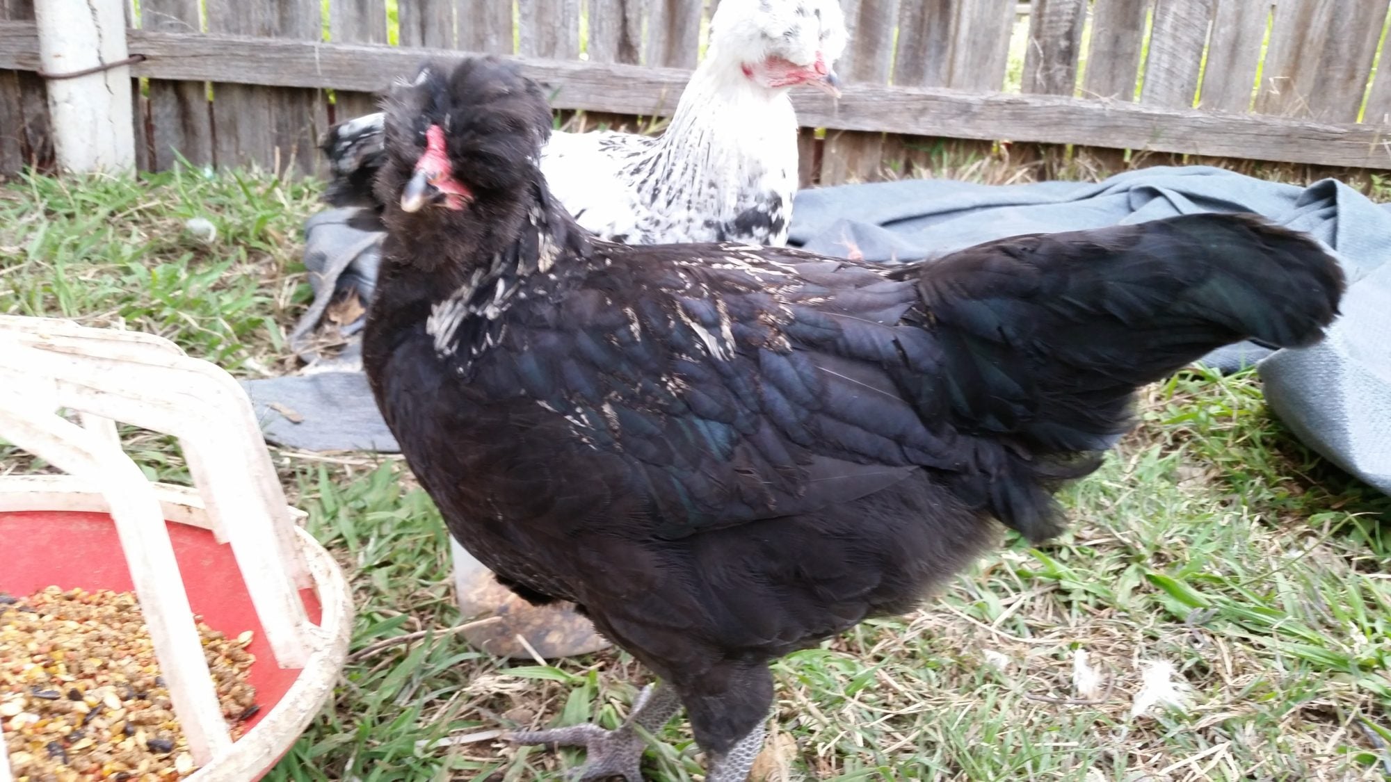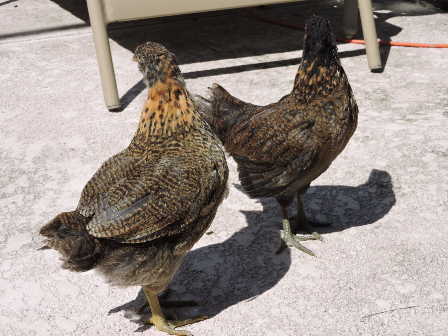 [/COLOR]It kind of looks like the Darker One is starting to develop Pin Feathers on the neck so that worries me a bit that it might be a Roo.