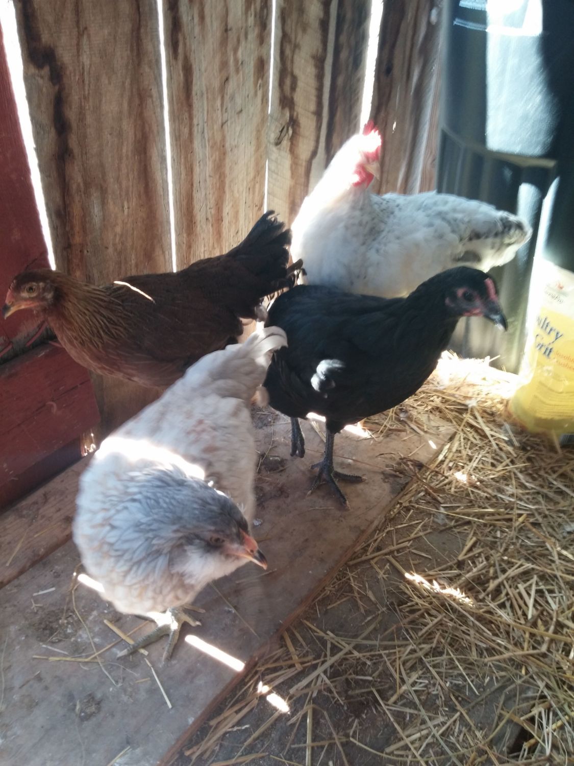 We added three new chicks to our family last Monday. We were told they were approximately three weeks old - making them four weeks old now. I'm a little skeptical of the estimated age but I thought I would post anyway.