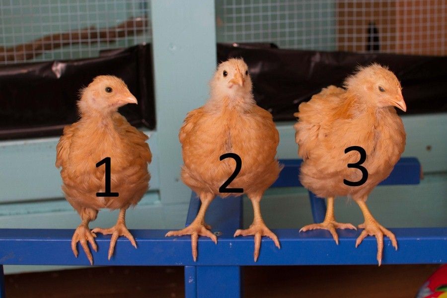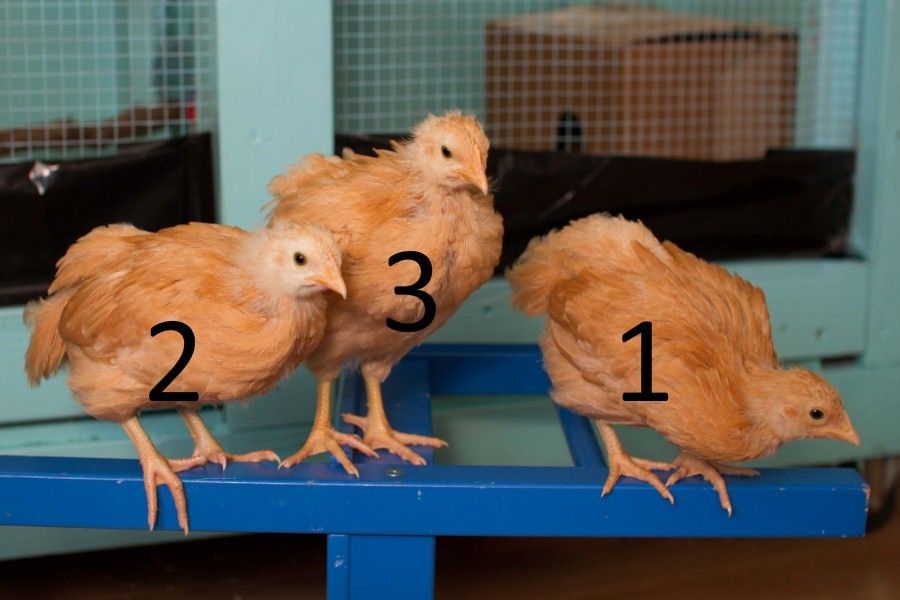 Our chicks are 4 weeks old. They were supposed to be all pullets but I have concerns since they seem to be developing differently. I have one with a small comb and one with a larger comb and one in the middle. This shipment already had a cockerel, so I hope it was the only one. 1 is the smallest with the most head feathers and has a fluffy tail, 2 is in the middle on everything, 3 is the largest and was a little more yellow early on and has a less fluffy tail. We aren't allowed to have roosters in town (although there are several), but my next door neighbors seem particularly unhappy with me having chickens, so I need to get this figured out before anyone makes noise....Thanks in advance. I tried to take as representative pictures as possible, if another angle would help, let me know. Thanks! .