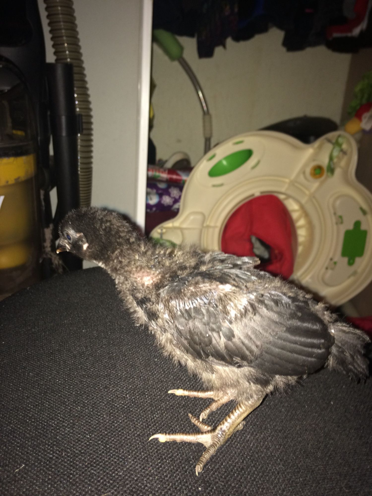 This chick is a little over month old and I wasn't sure if anyone could tell. (Supposed to be a silkie)