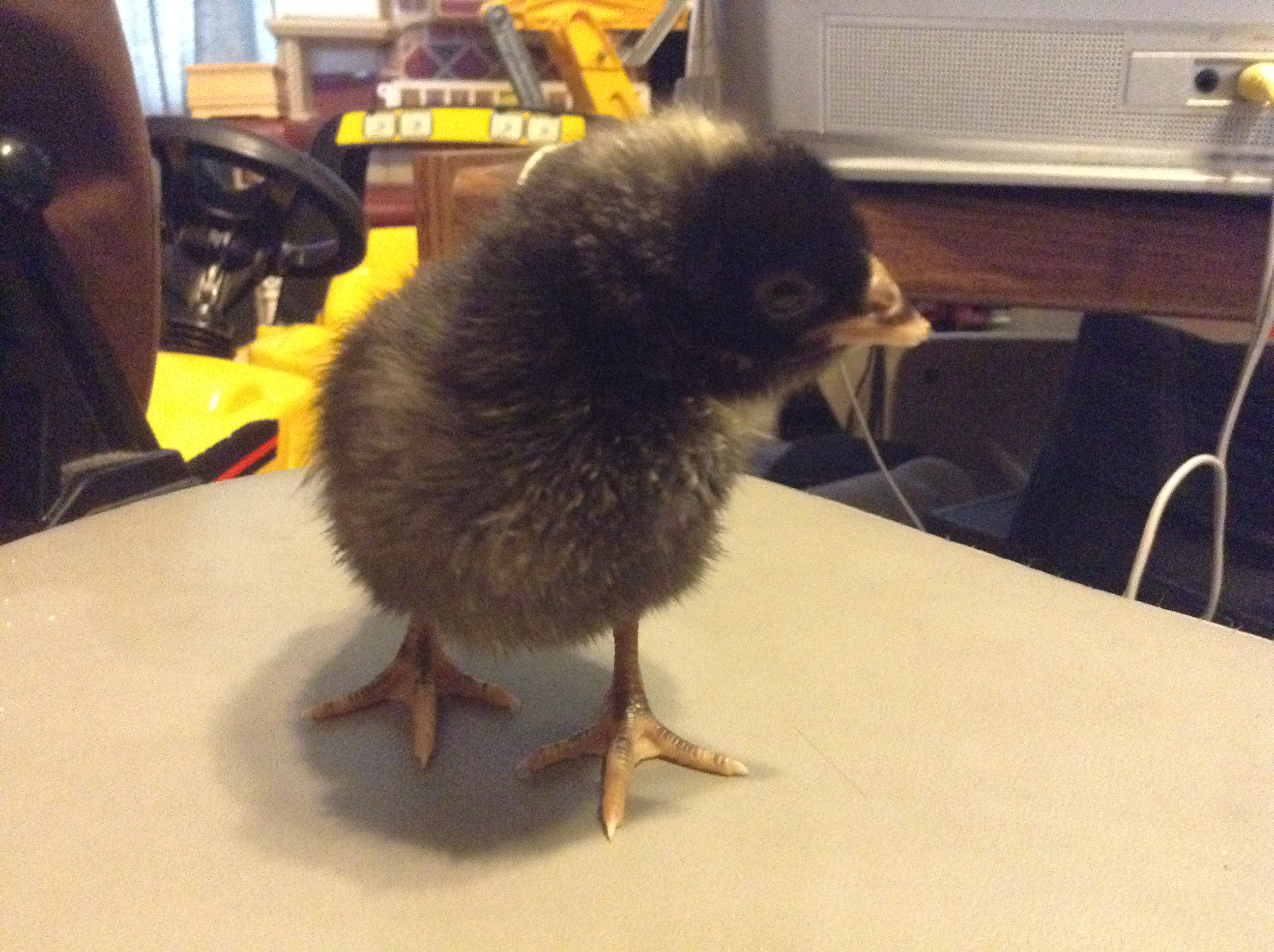 Your chicks are just a few days old.She's 4-5 weeks