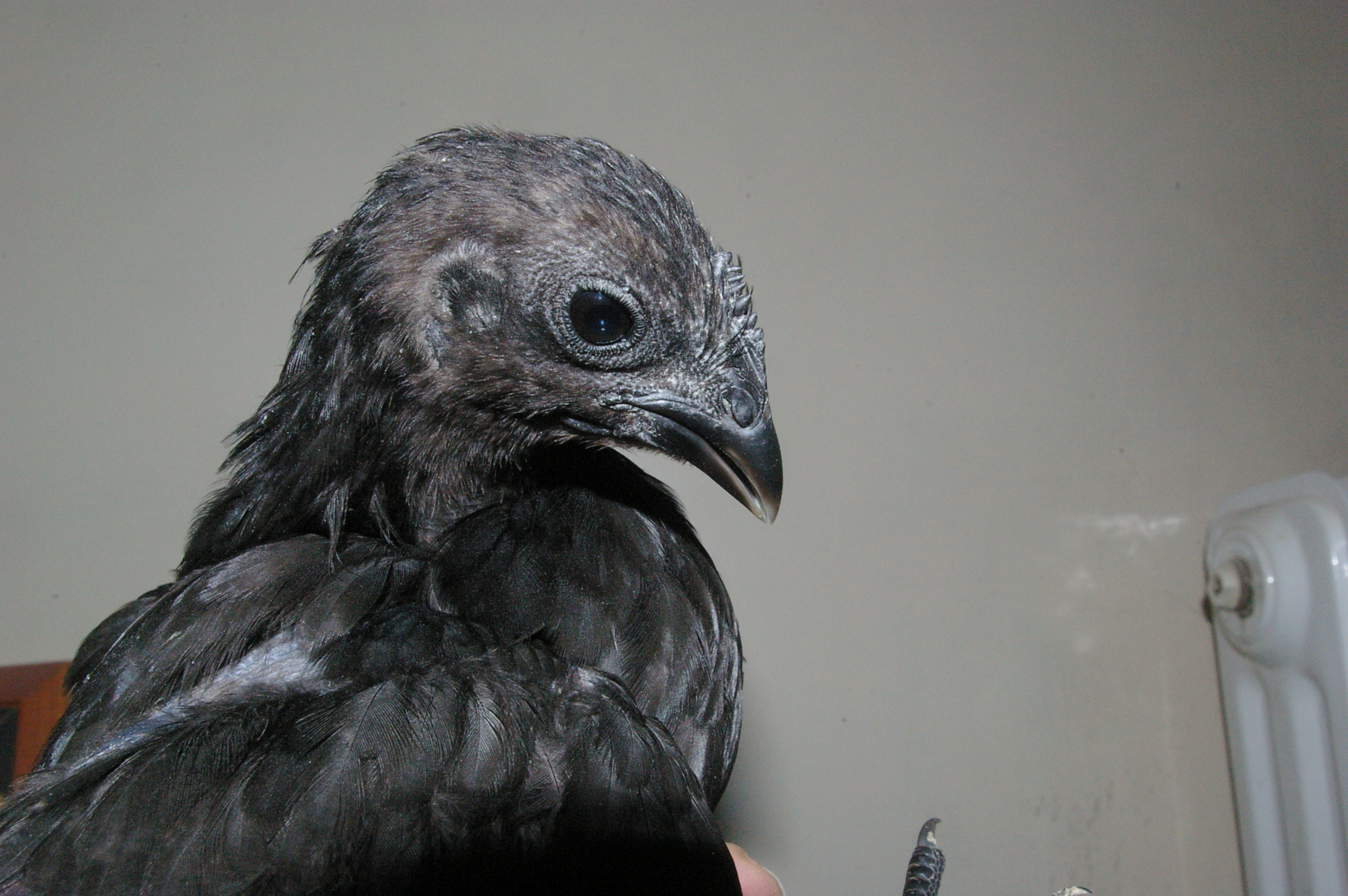 I've got svart hona and in my experience, those are both boys, buy give them a chance. How old are they?Here are photos of my two 10wo Ayam Cemani chicks. The smaller sized one (second pic, in front of the silkie) which has not yet grown feathers on its head, started a few days ago to grow a comb.Should I expect it to be a cockerel? What about the other one, also a roo or are there chances it could be a poullet?![]()
