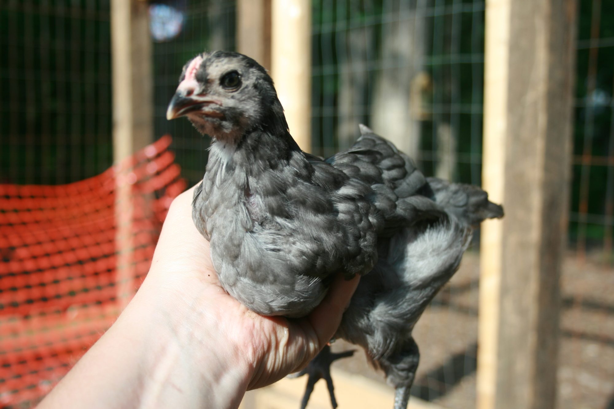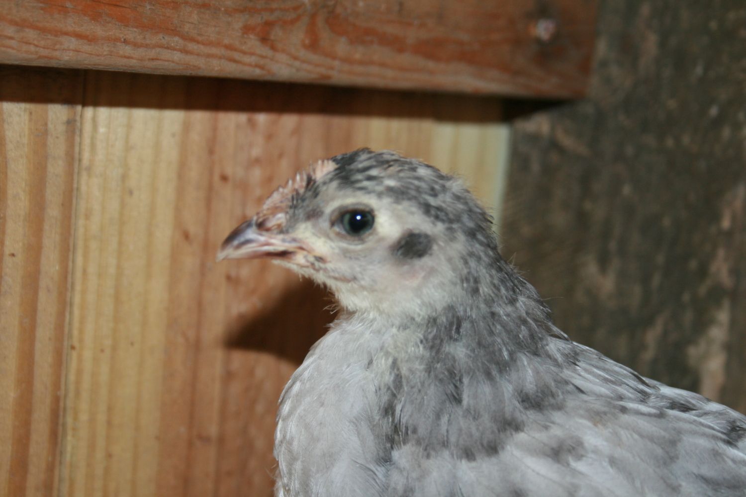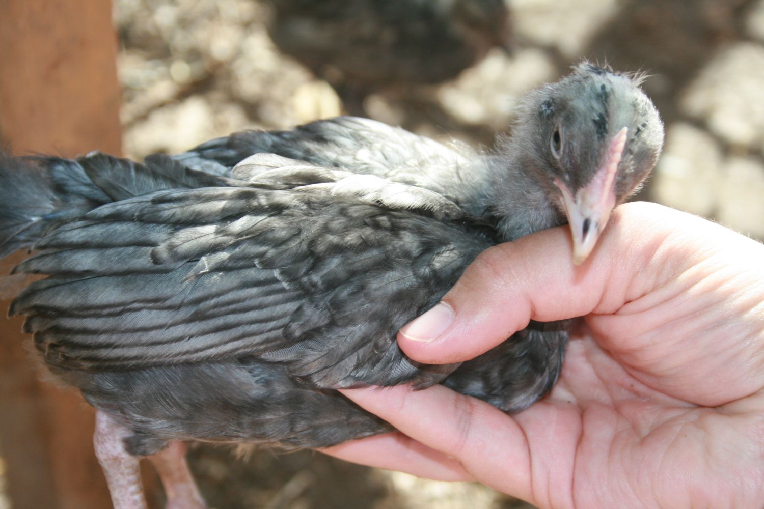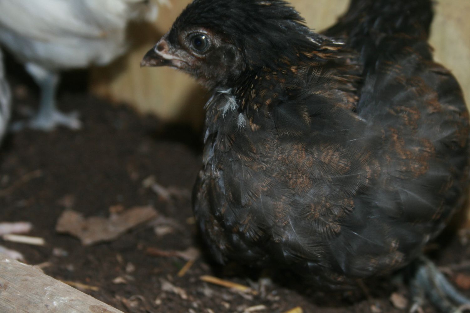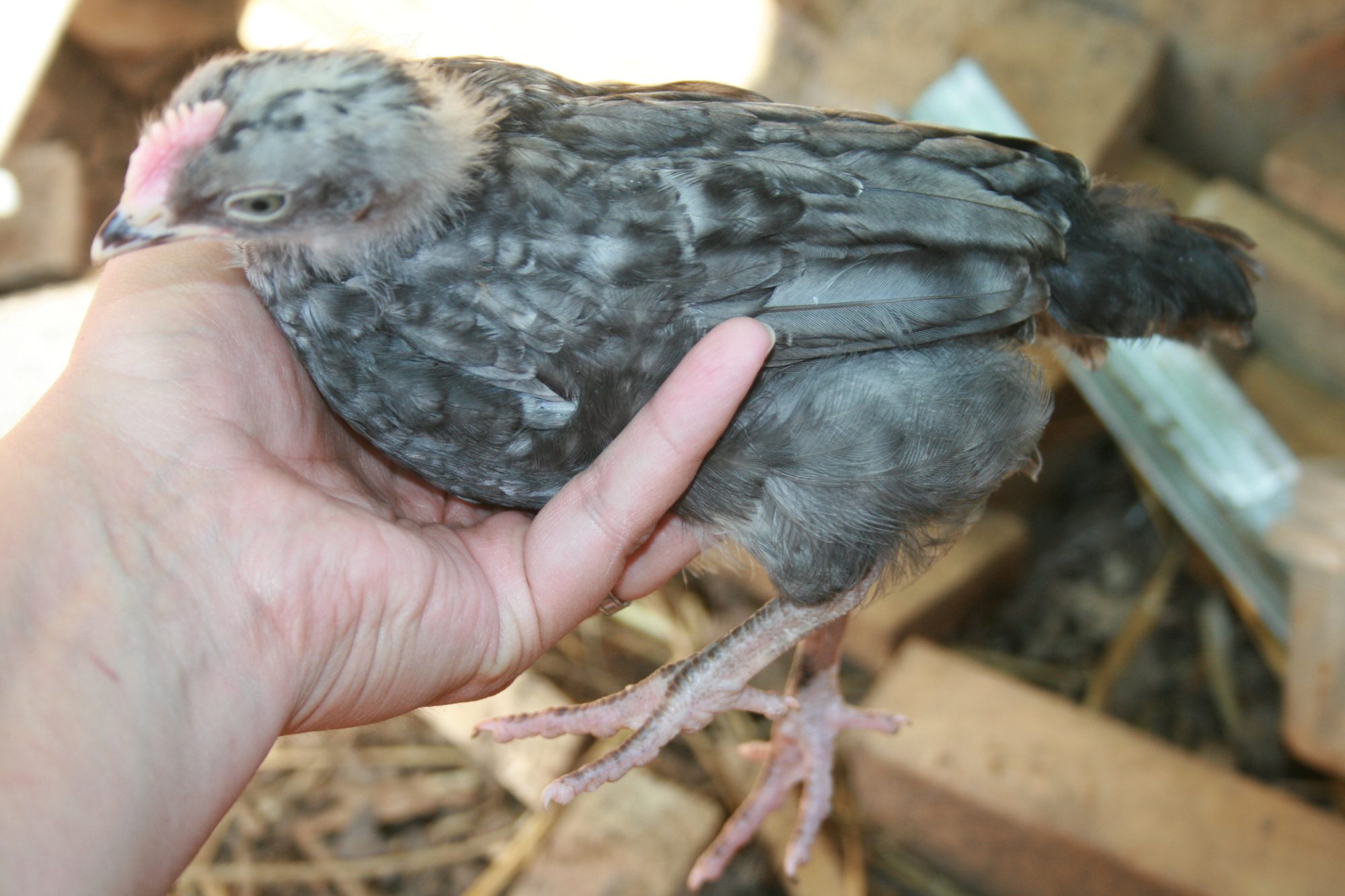 Chick 1 - Dark Brahma. Thinking pullet.