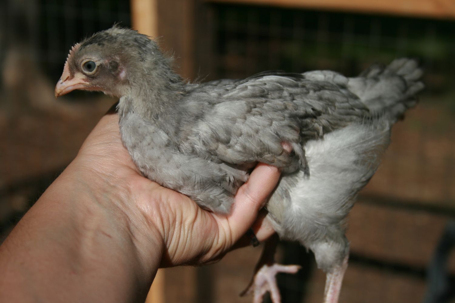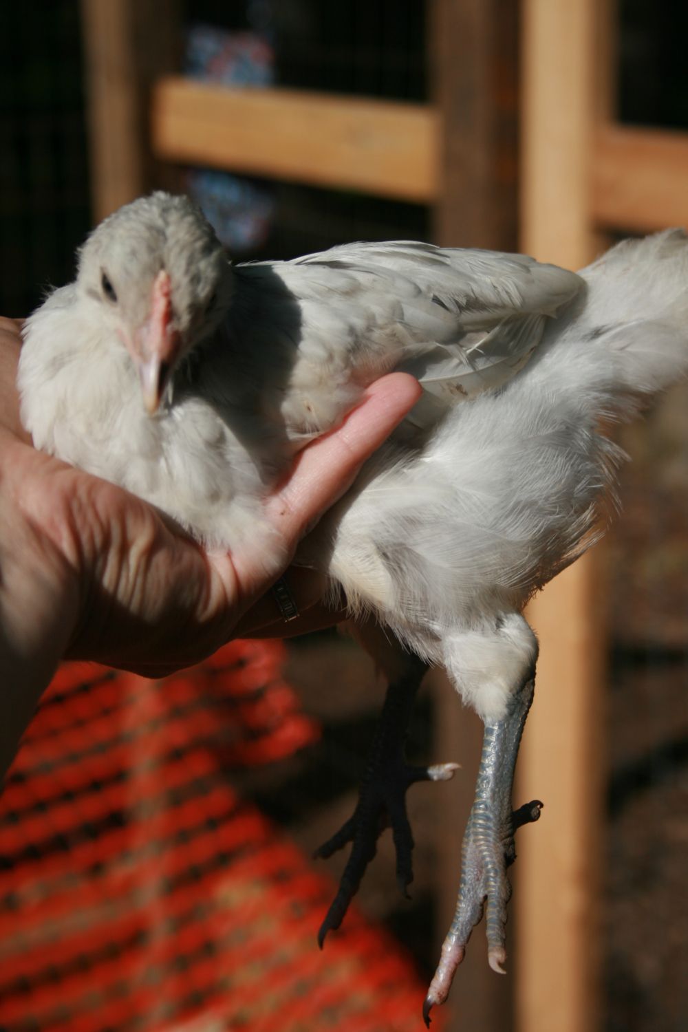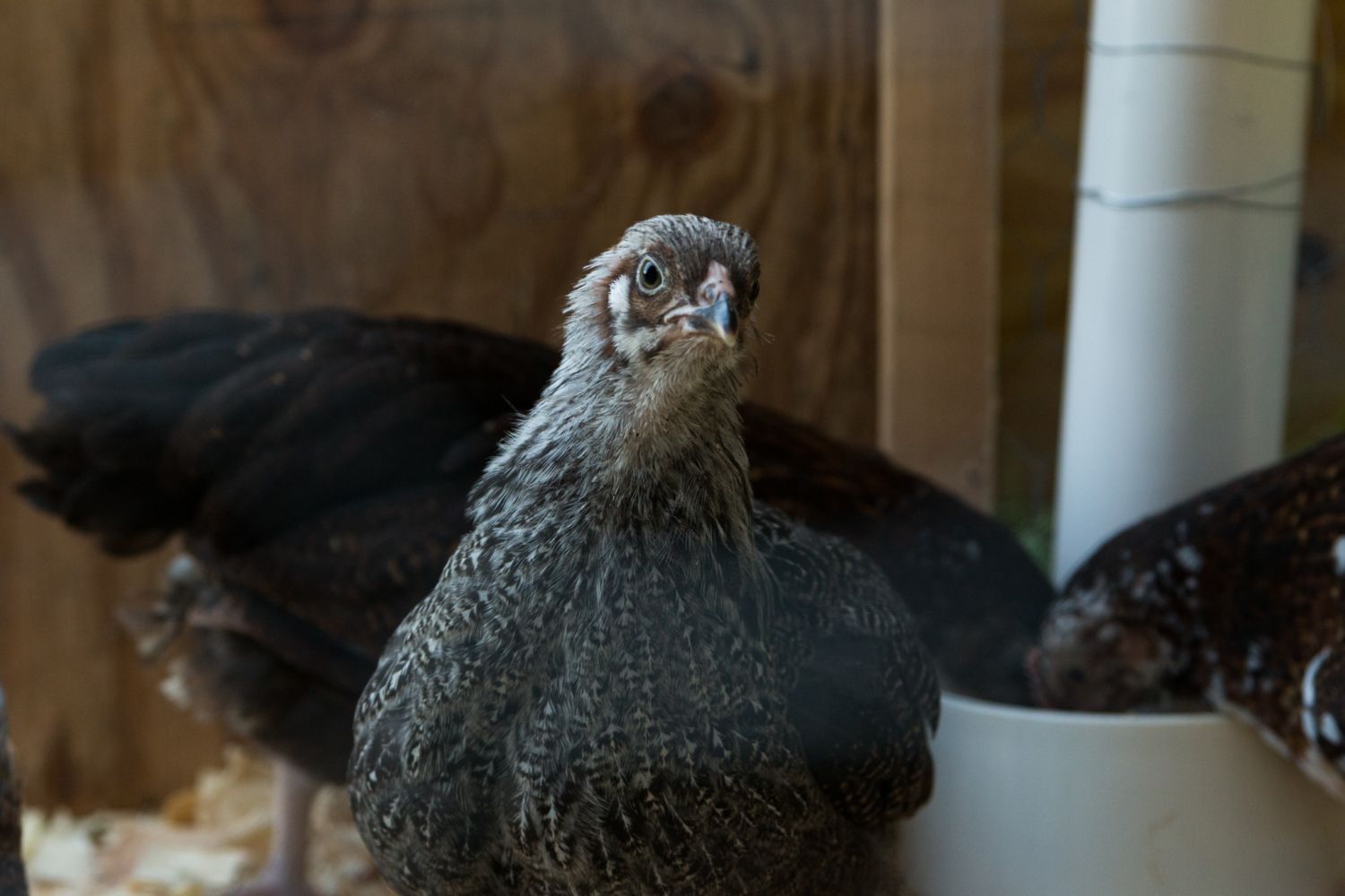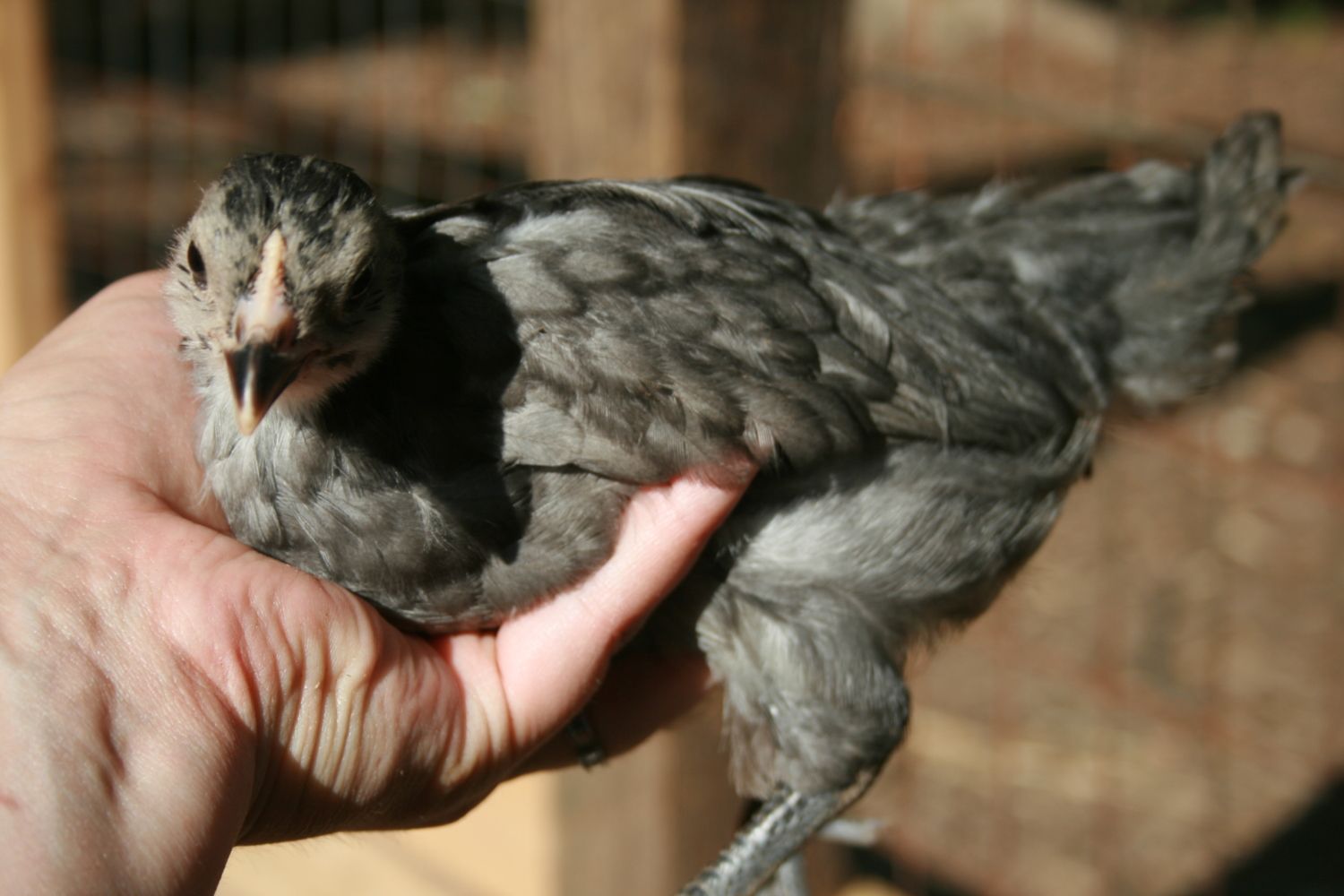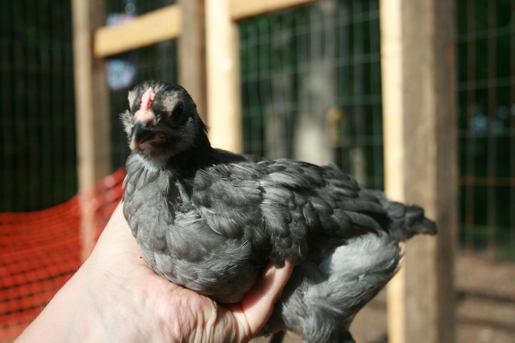 Chick 1 - Dark Brahma. Thinking pullet.