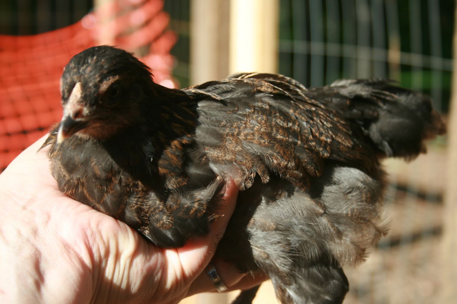 Chick 2 - Speckled Sussex #1 - Thinking pullet.