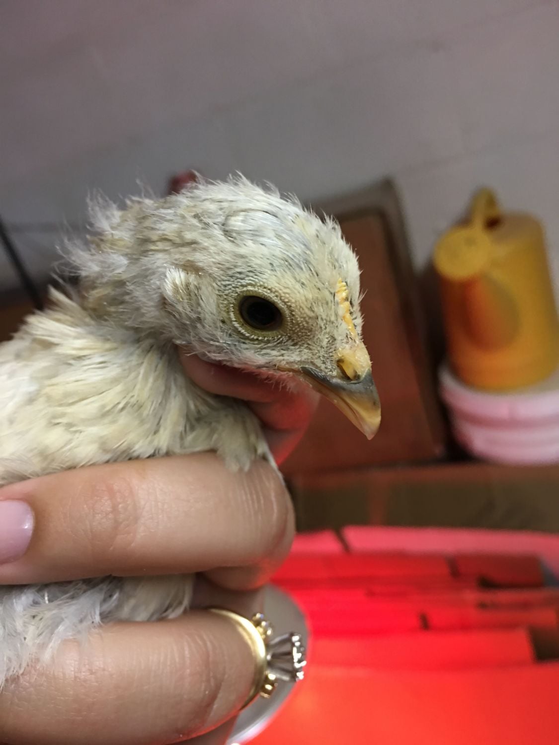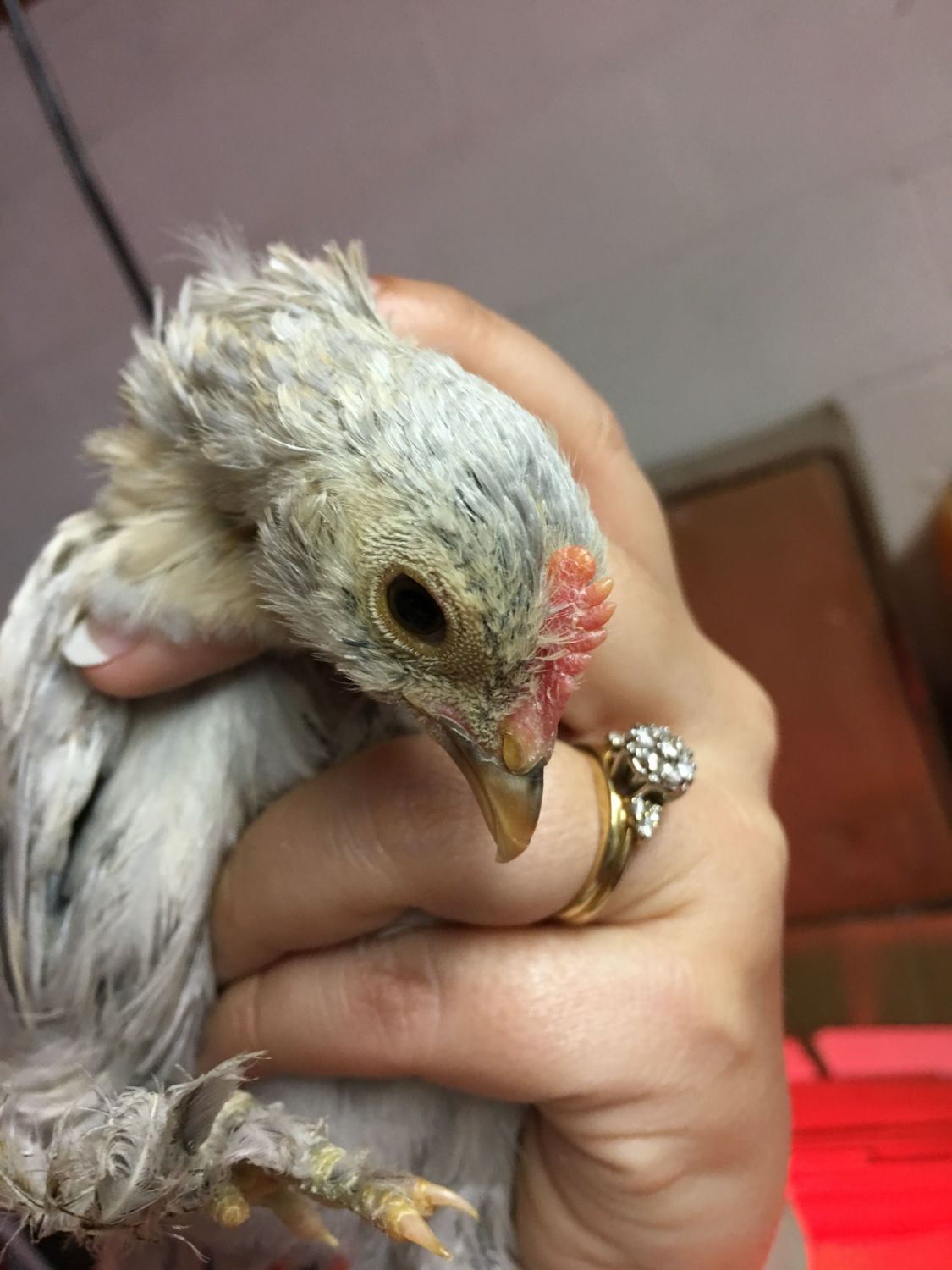 This chocolate Orpington is about 2 weeks old. I'm afraid it might be a too? Thoughts?