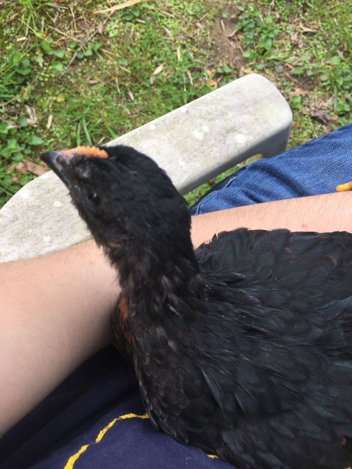 If the Australorp is the mother, the undersides of the feet will be white. If the Barred Rock is the mother, the underside of the feet will be yellow.So Im pretty sure i hatched 4 roosters and im a little bummed but anyway this is Lody my RIR(rooster) cross and its either BA(hen) or BR if BR then its obviously a hen since it has the black feathering but anyways here he is![]()
