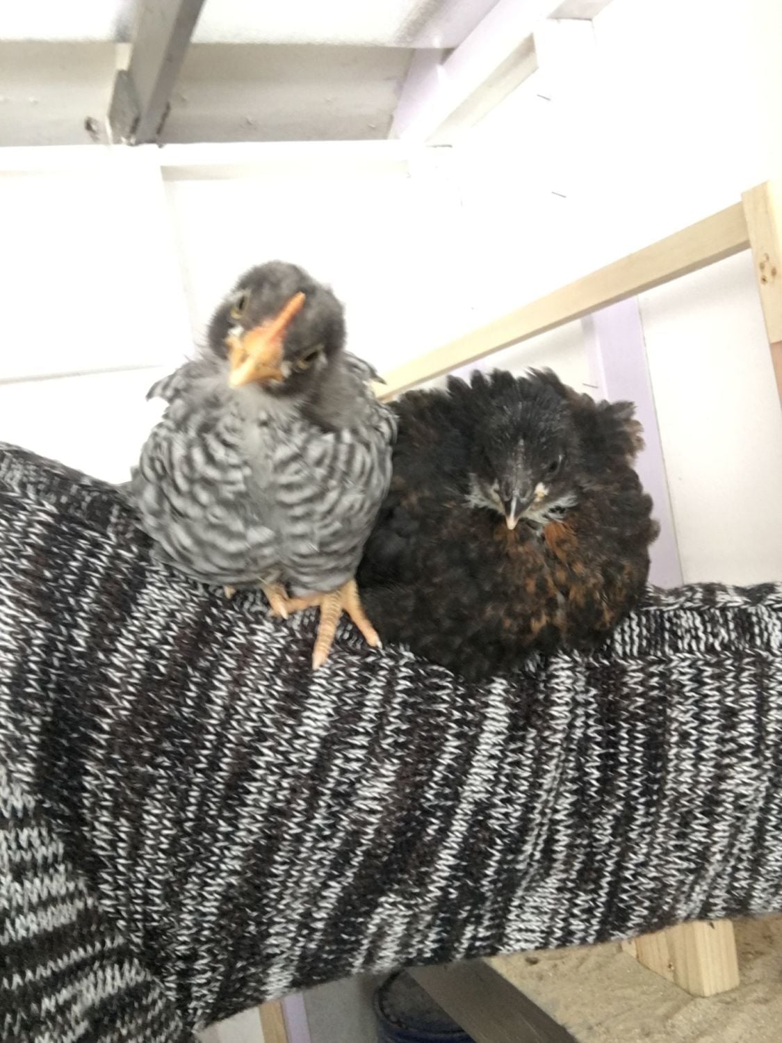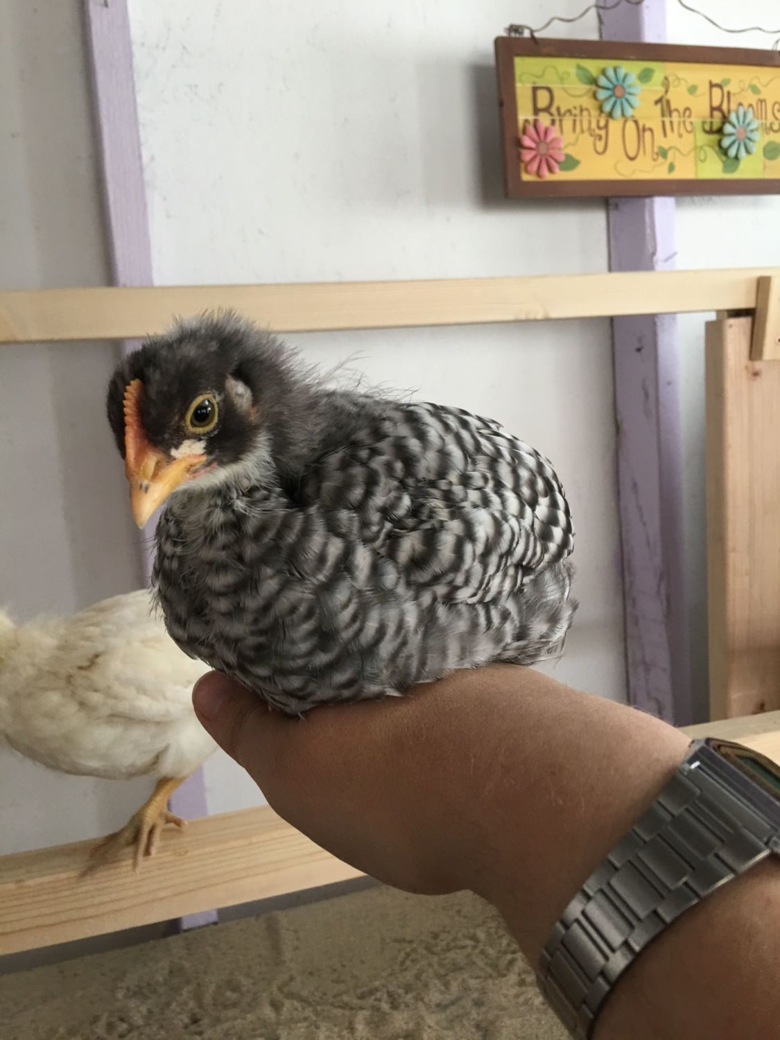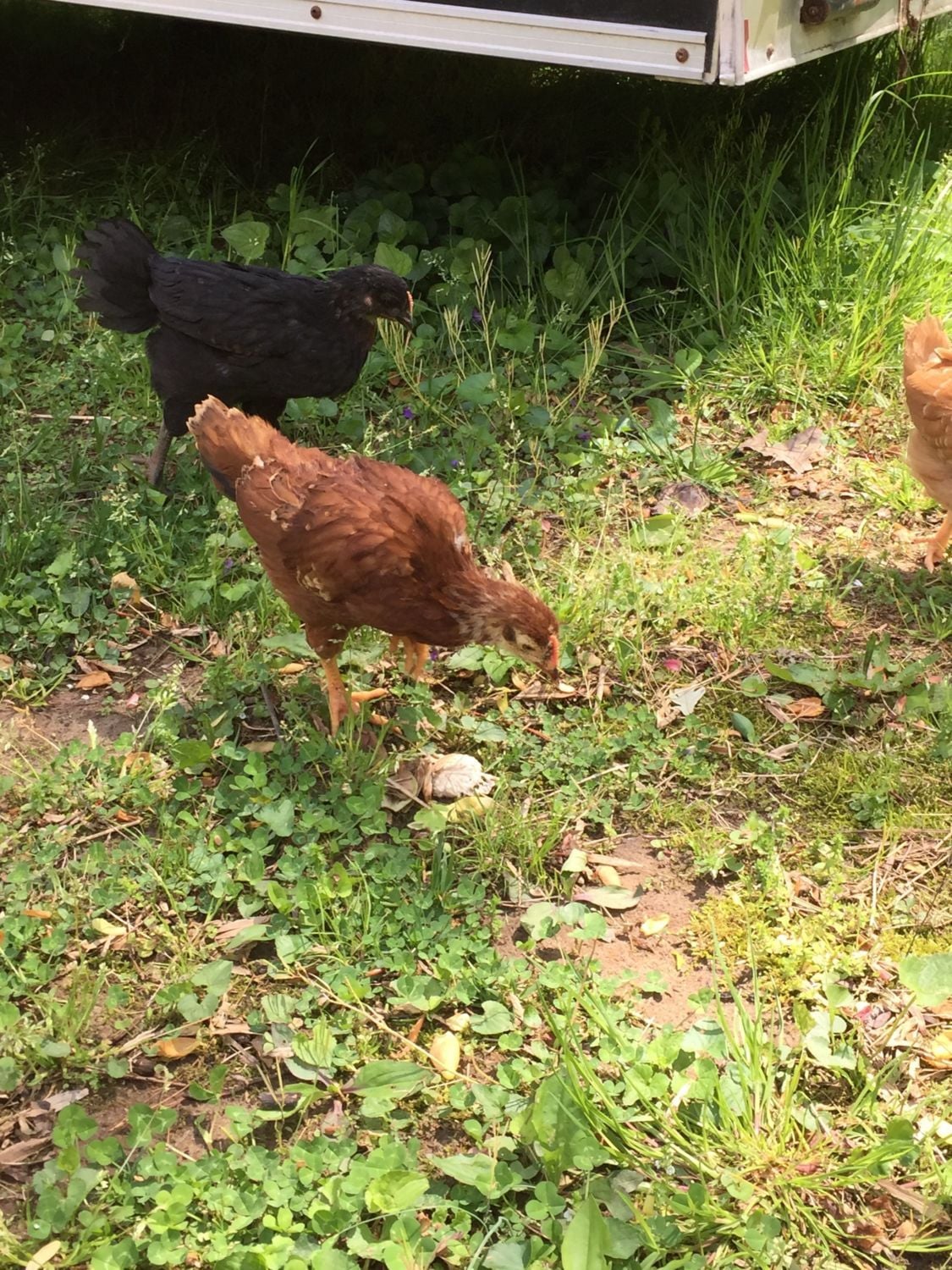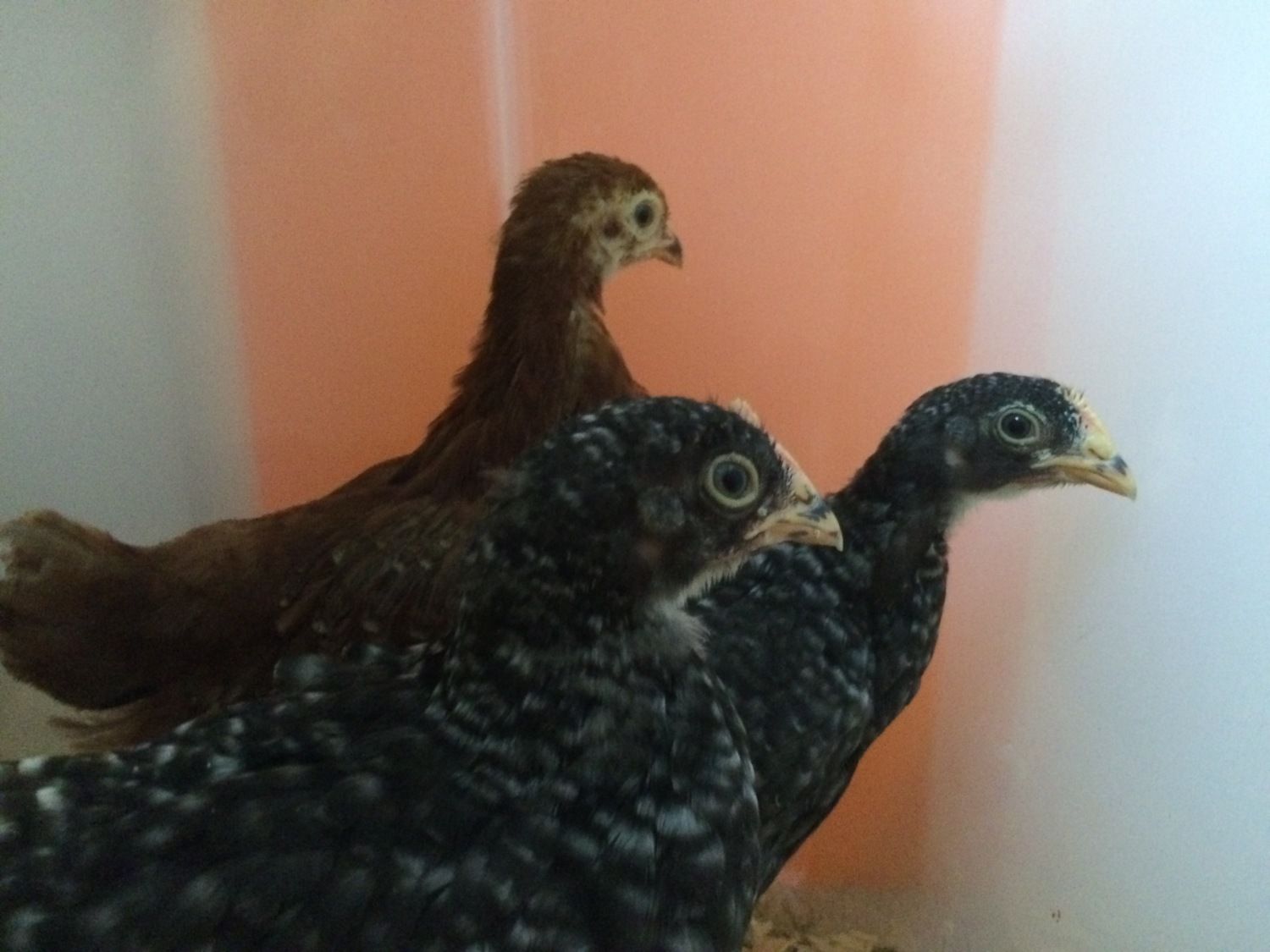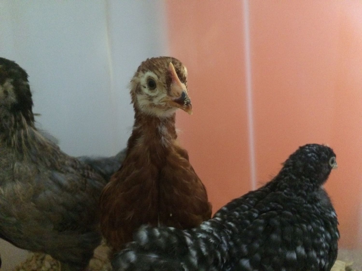The Orp also looks like a male at a quick glance, but I am learning that not all lines mature at the same rate. (So I'd keep him a little while to be sure) My line of orps grow combs during their 3rd week - even before they're fully feathered, which is about at 4 wks. So by 7 wks, my male orps have giant combs & are fully feathered. My friend's line of orps have much shorter combs that take months to grow in size- but the wattles of both genders drop early. In his line, the males feather slowly. At 6 wks, his little cockerels still have have bald backs & short combs, while his pullets are fully feathered.