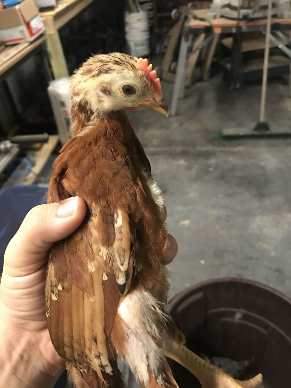2. has the typical pullet feather pattern.