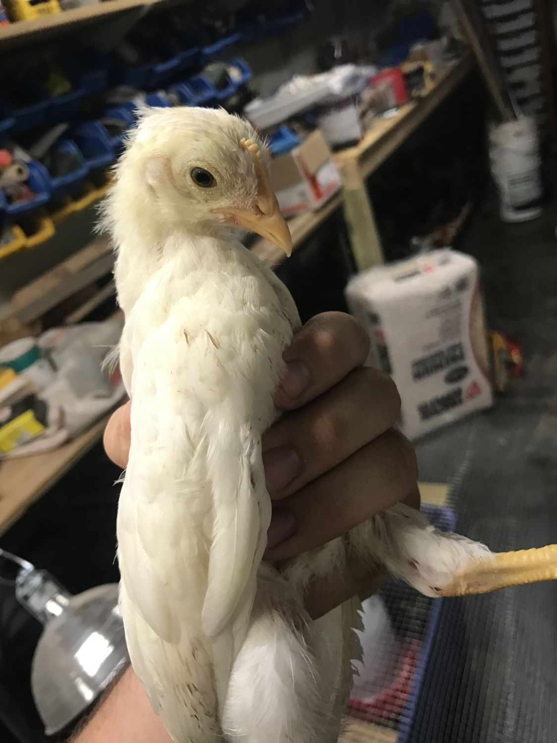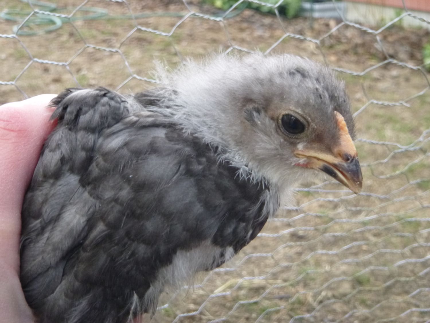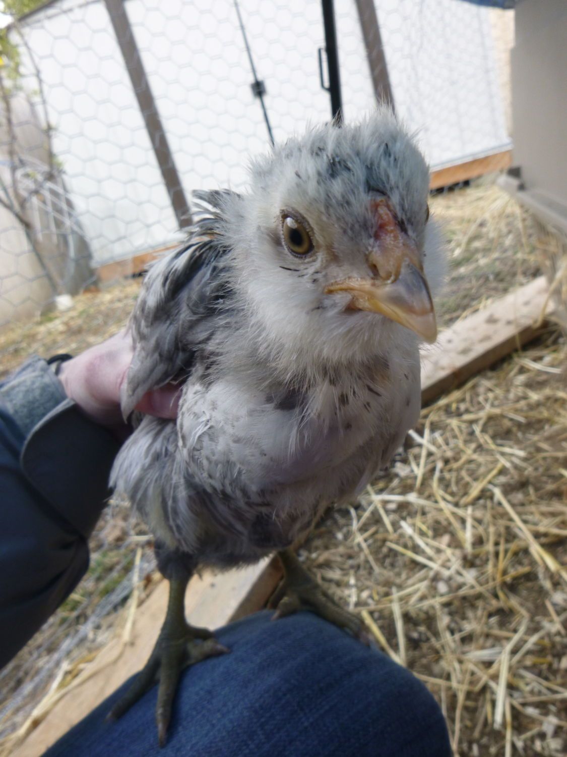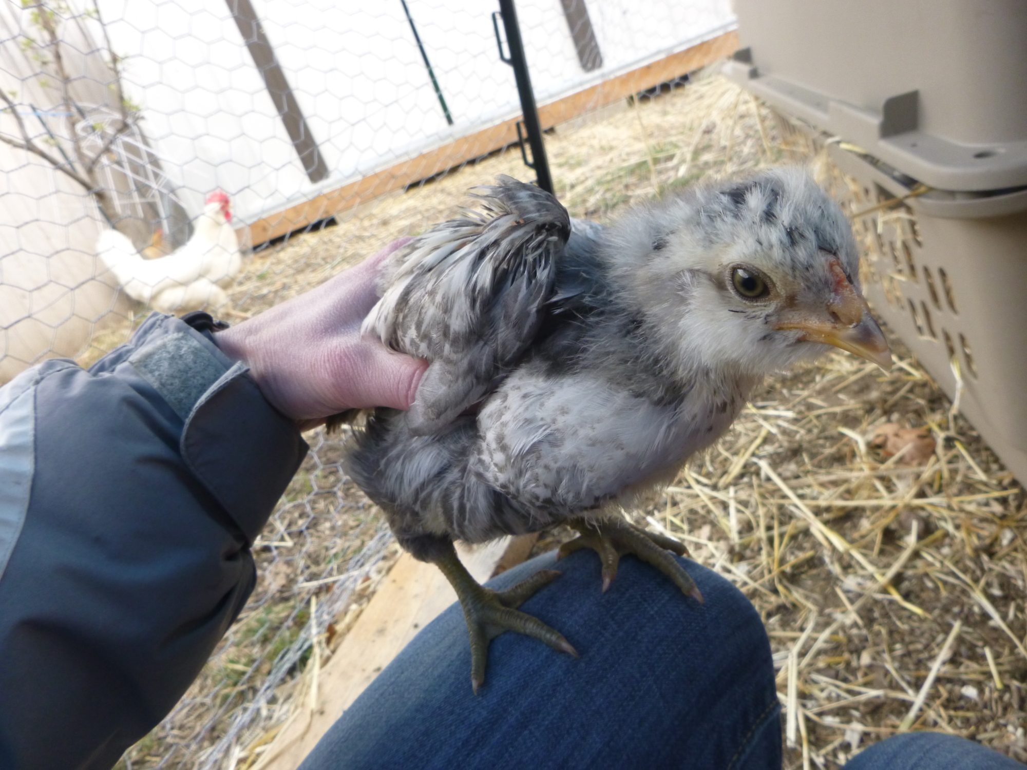 The last chick is another easter egger