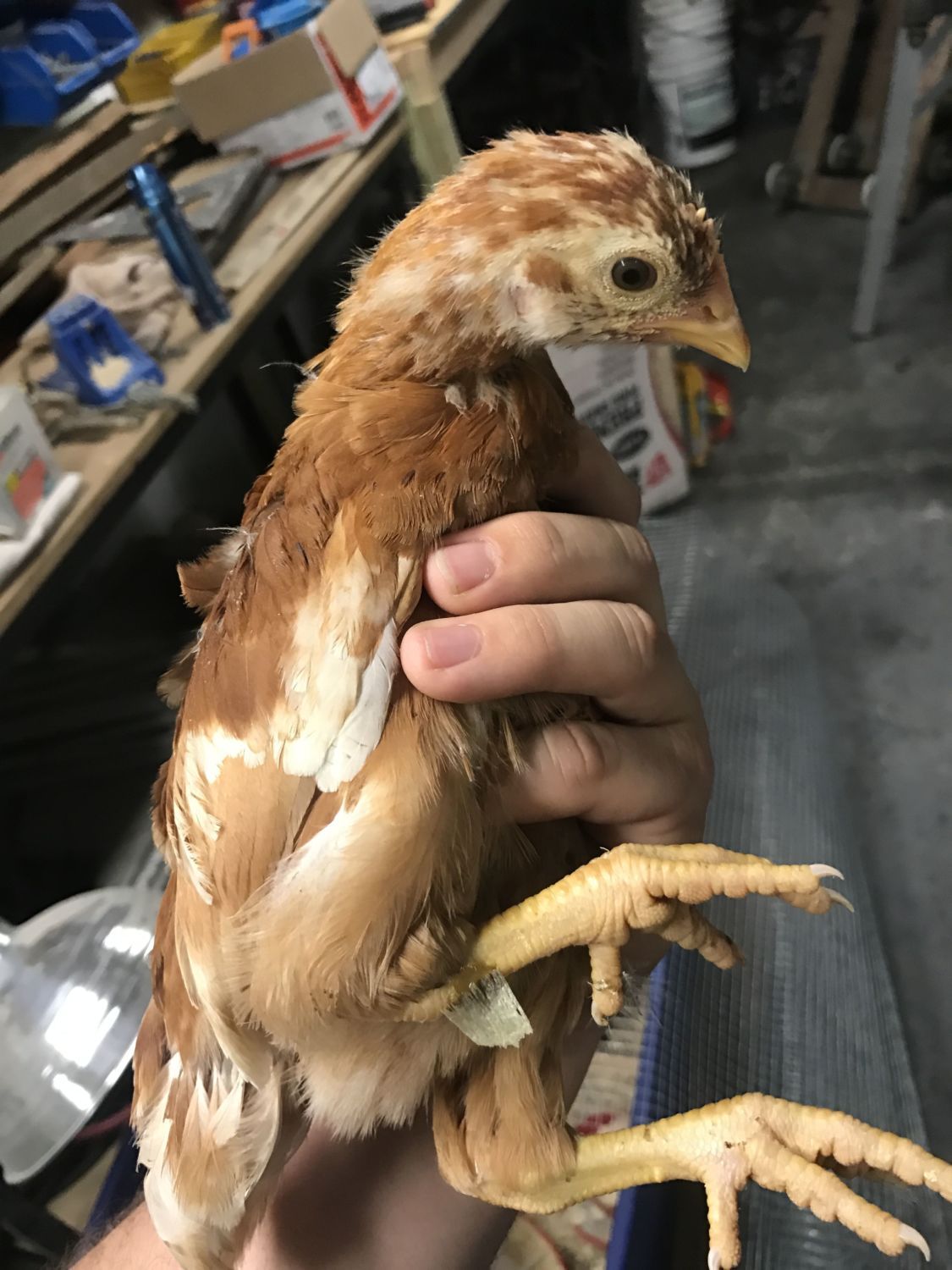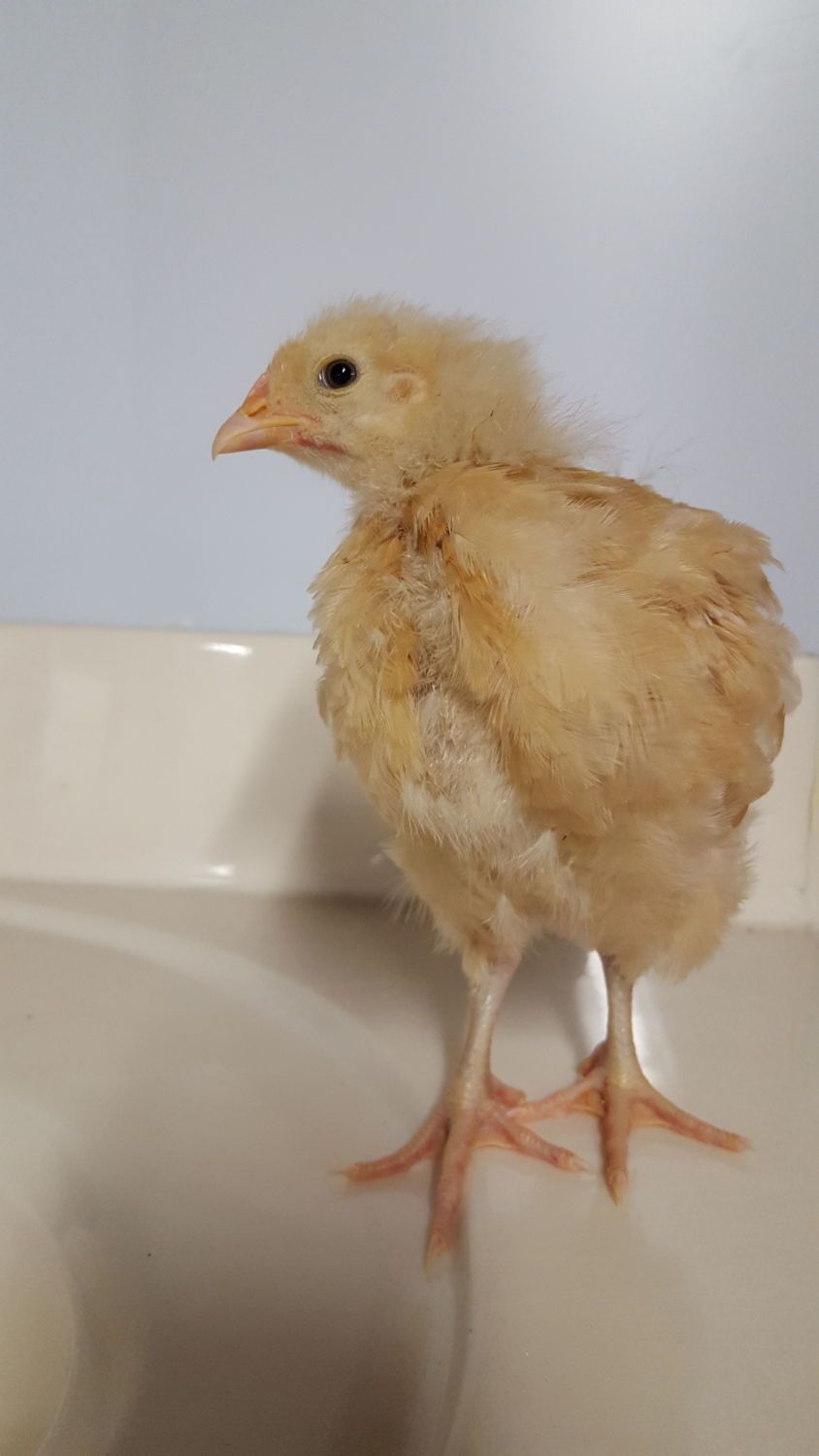 8 week old buff Orpington. She is the biggest and the sweetest of my 25 chicks. She is also my favorite :D