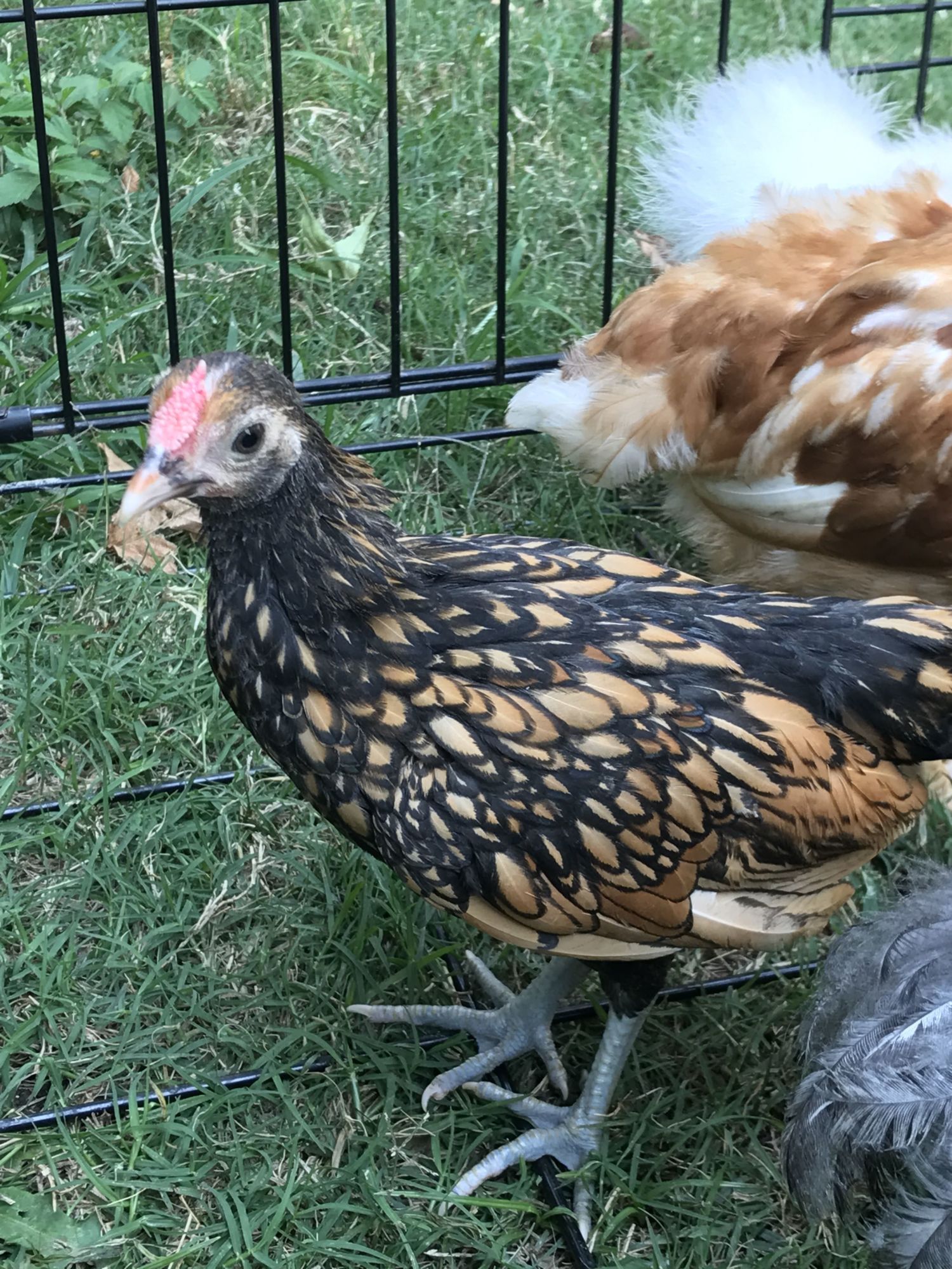 Silkie looks like a pullet, but can't be sure for awhile.What do you think of these? A golden sebright and a silkie...both are 6 weeks old. Two pics of each. We're seeing recent aggressive behavior in the sebright, so worried it's a male.![]()