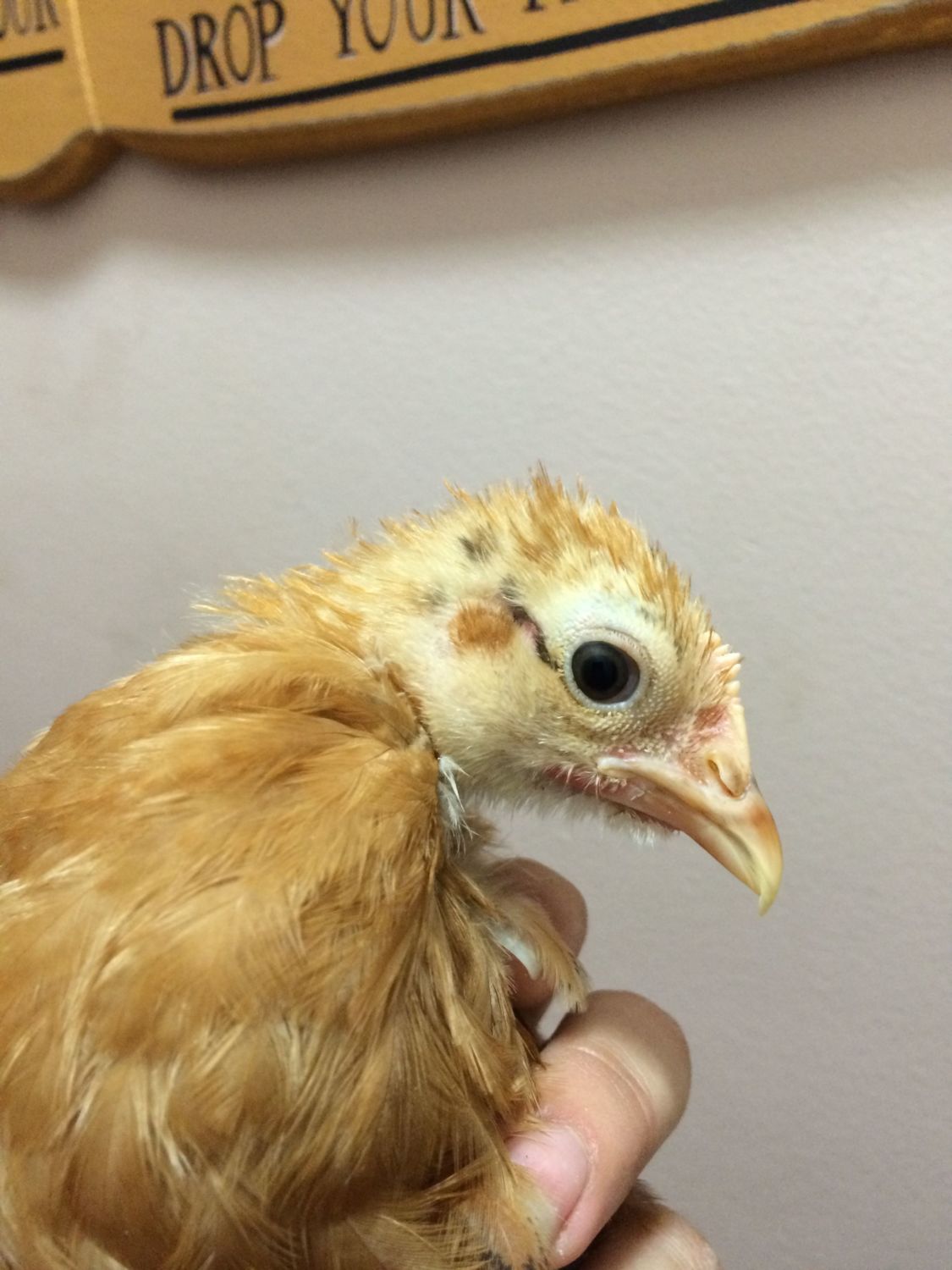 7.5 week old RIR. Still not sure either way. Not a lot of black on neck or tail feathers. Comb is growing back a bit.