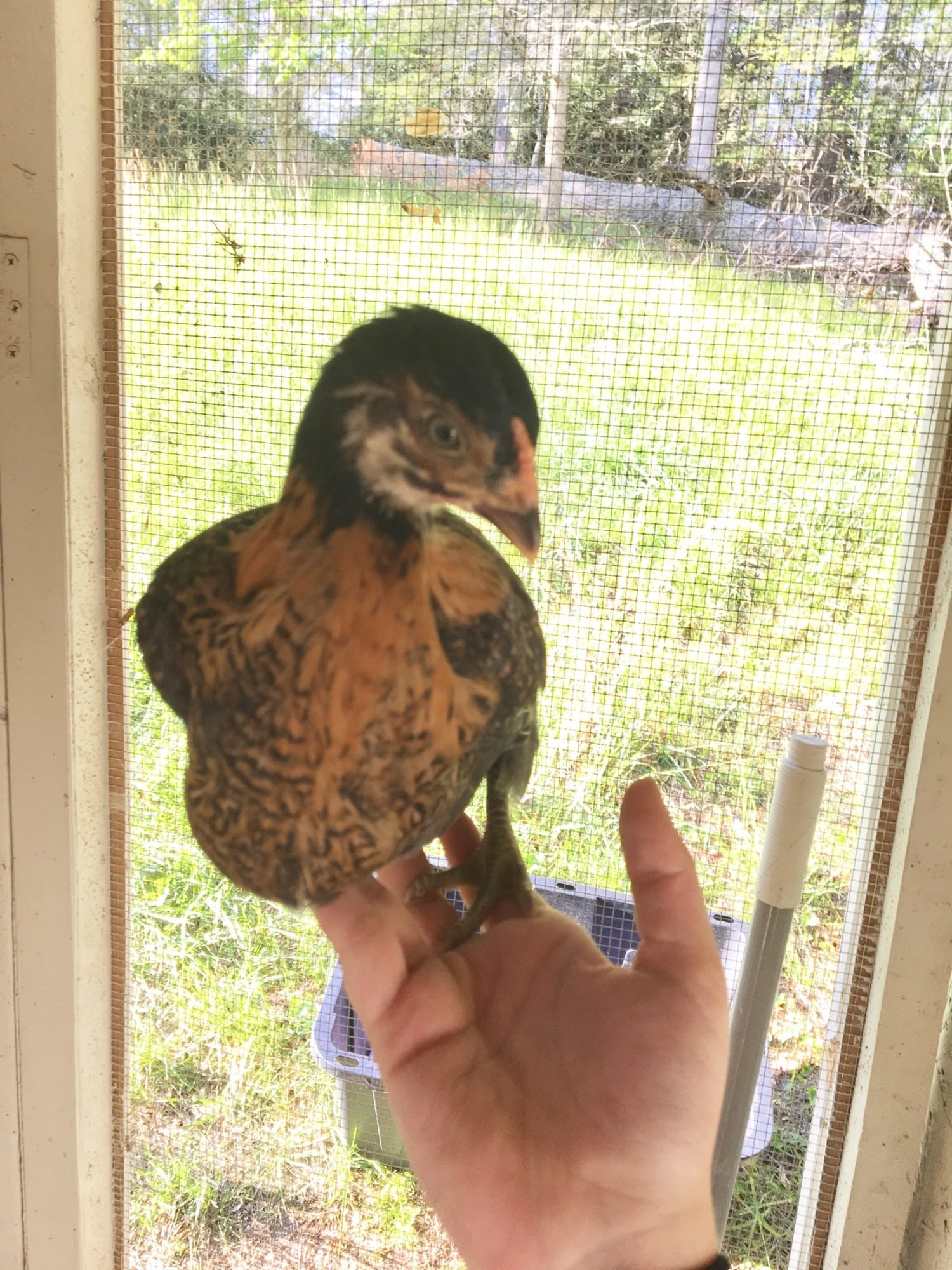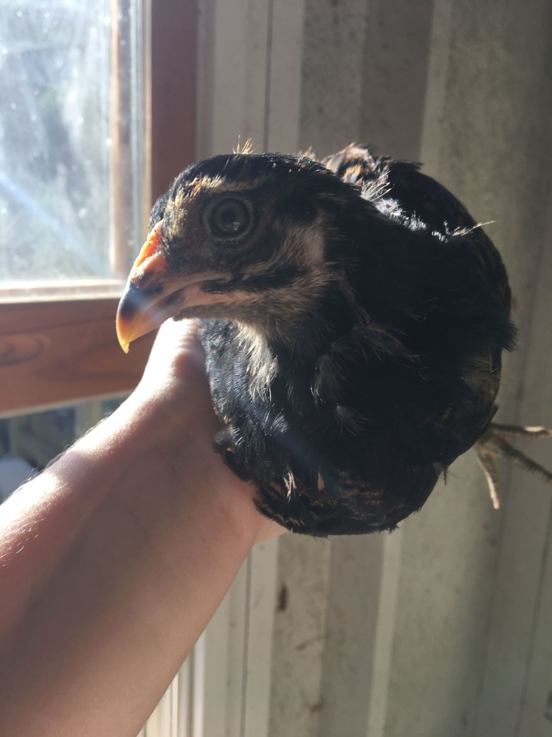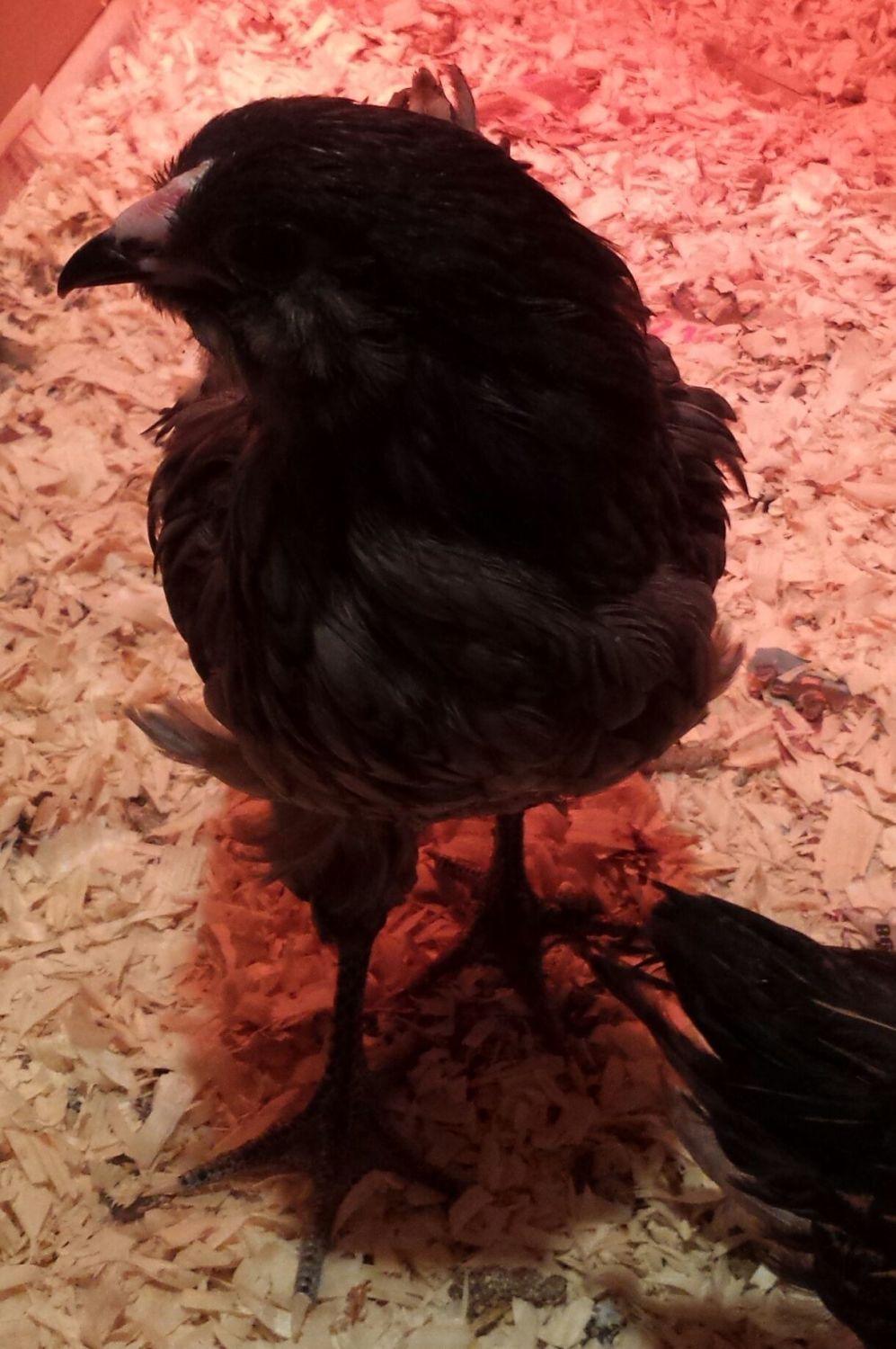 This Ameraucana chick is keeping me guessing! Going on 10 weeks. Comb just got slightly pinkish (mostly because it's skittish!), but no discernable pea-comb yet...