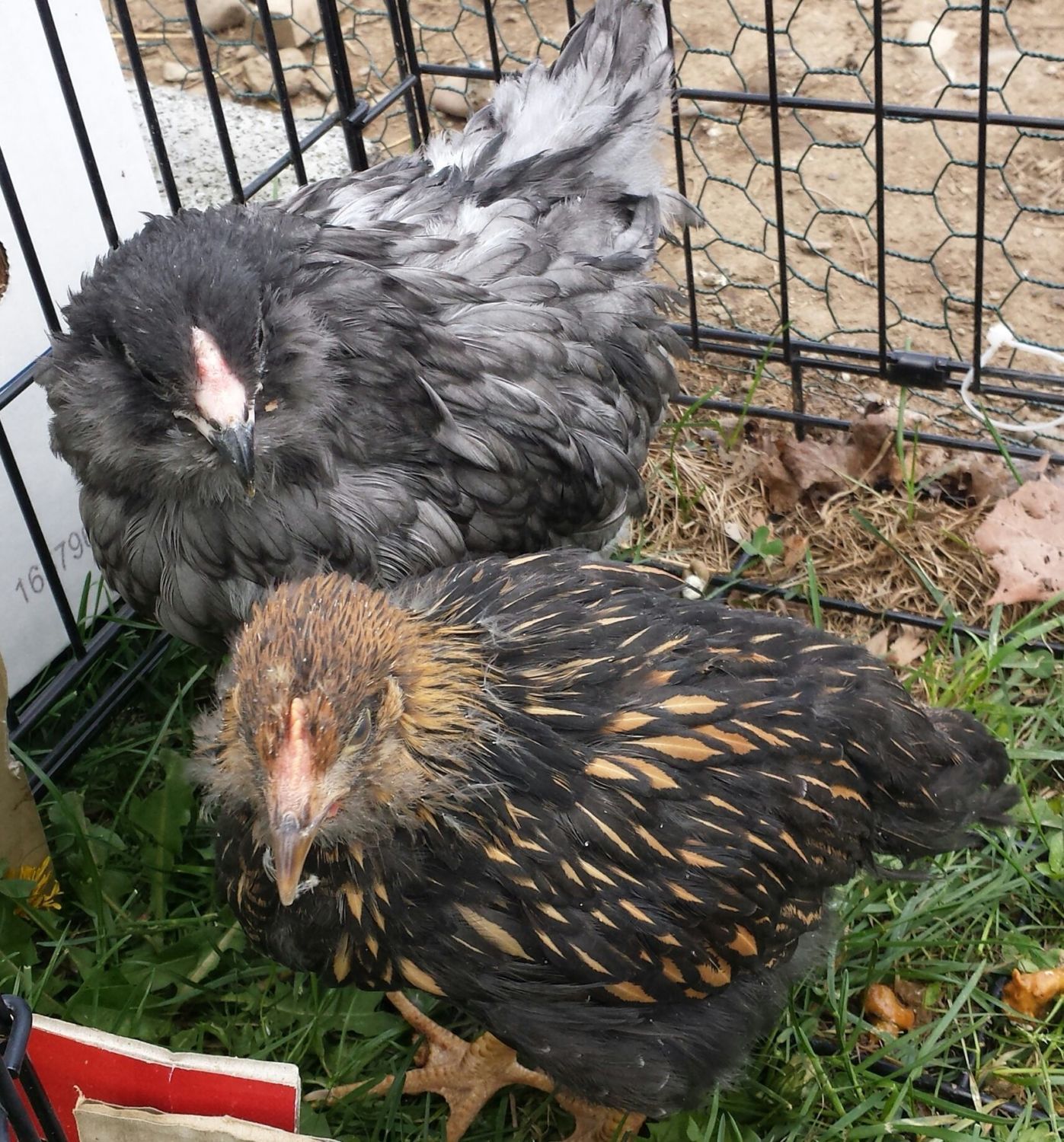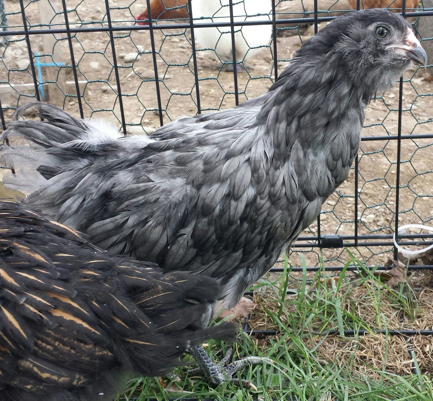 The Wyandotte is a pullet. The Ameraucana is looking like a cockerel. I see dark blue male saddle feathers just starting to come in.Okay all & @junebuggena here are some better pics outside today... They're both a bit flustered from me waving a strange object in front of them, and my older hens bawking behind them... GLW & Ameraucana, both are about 10 weeks old.