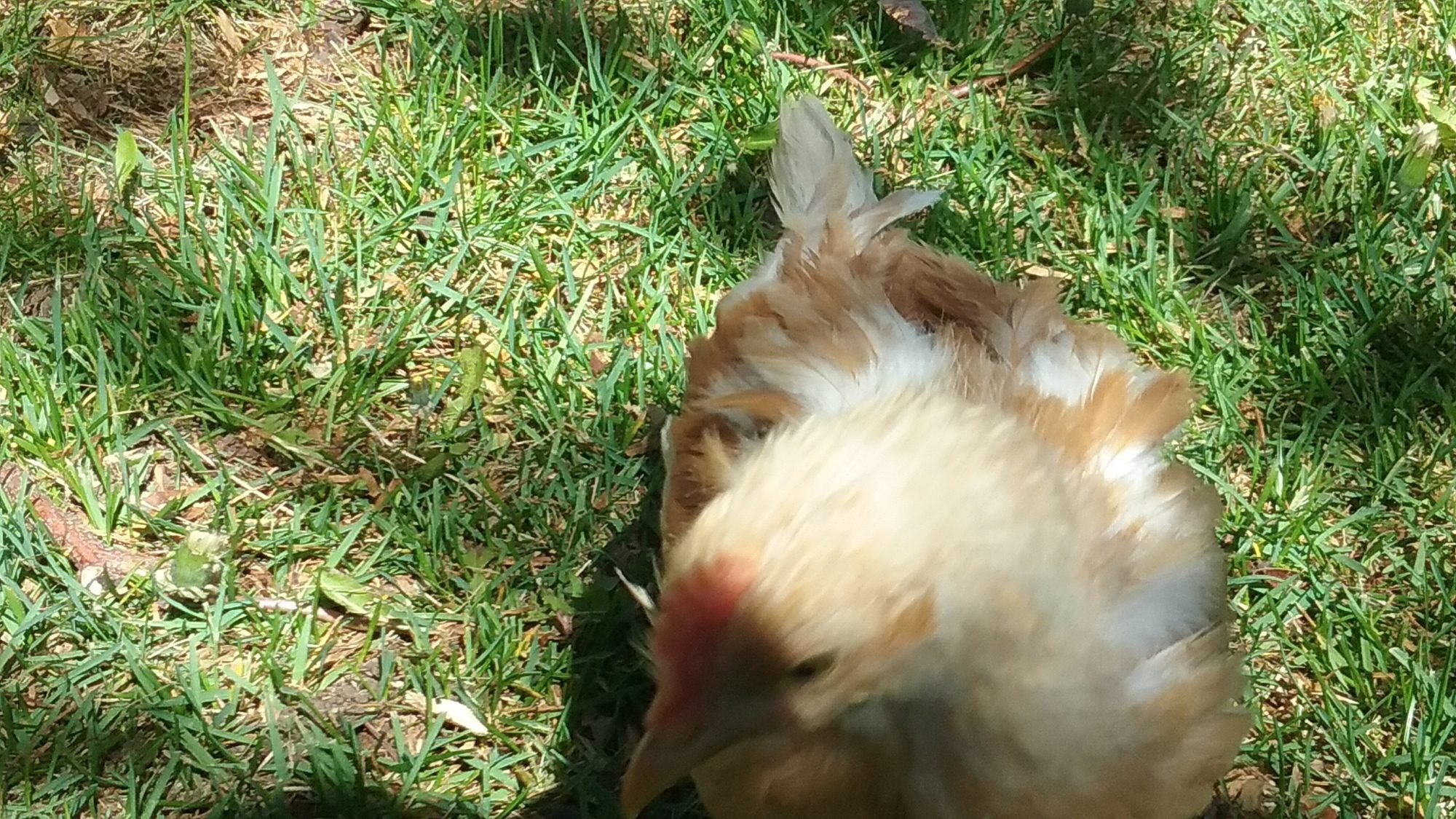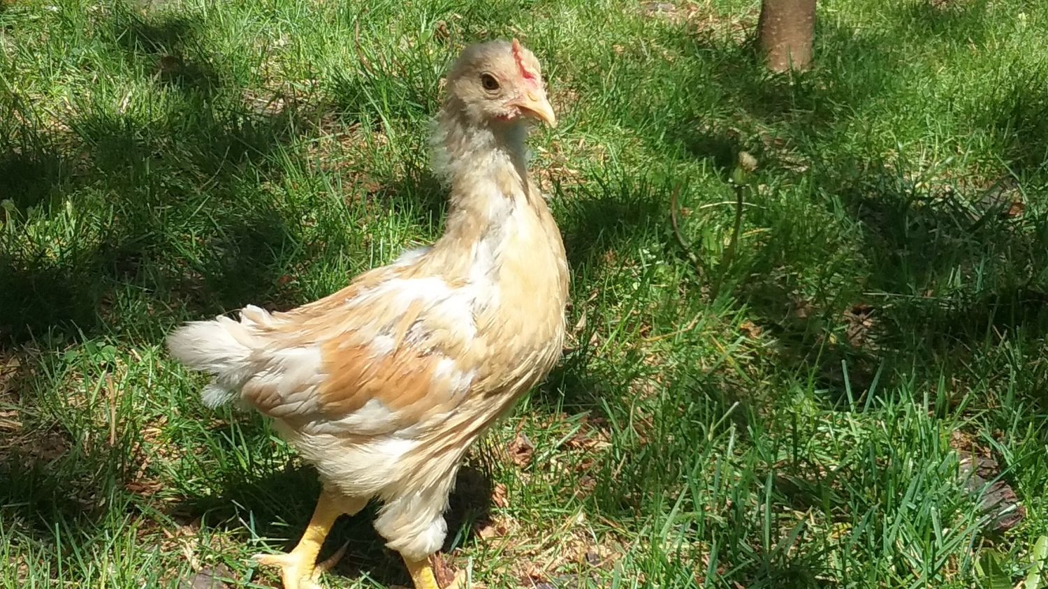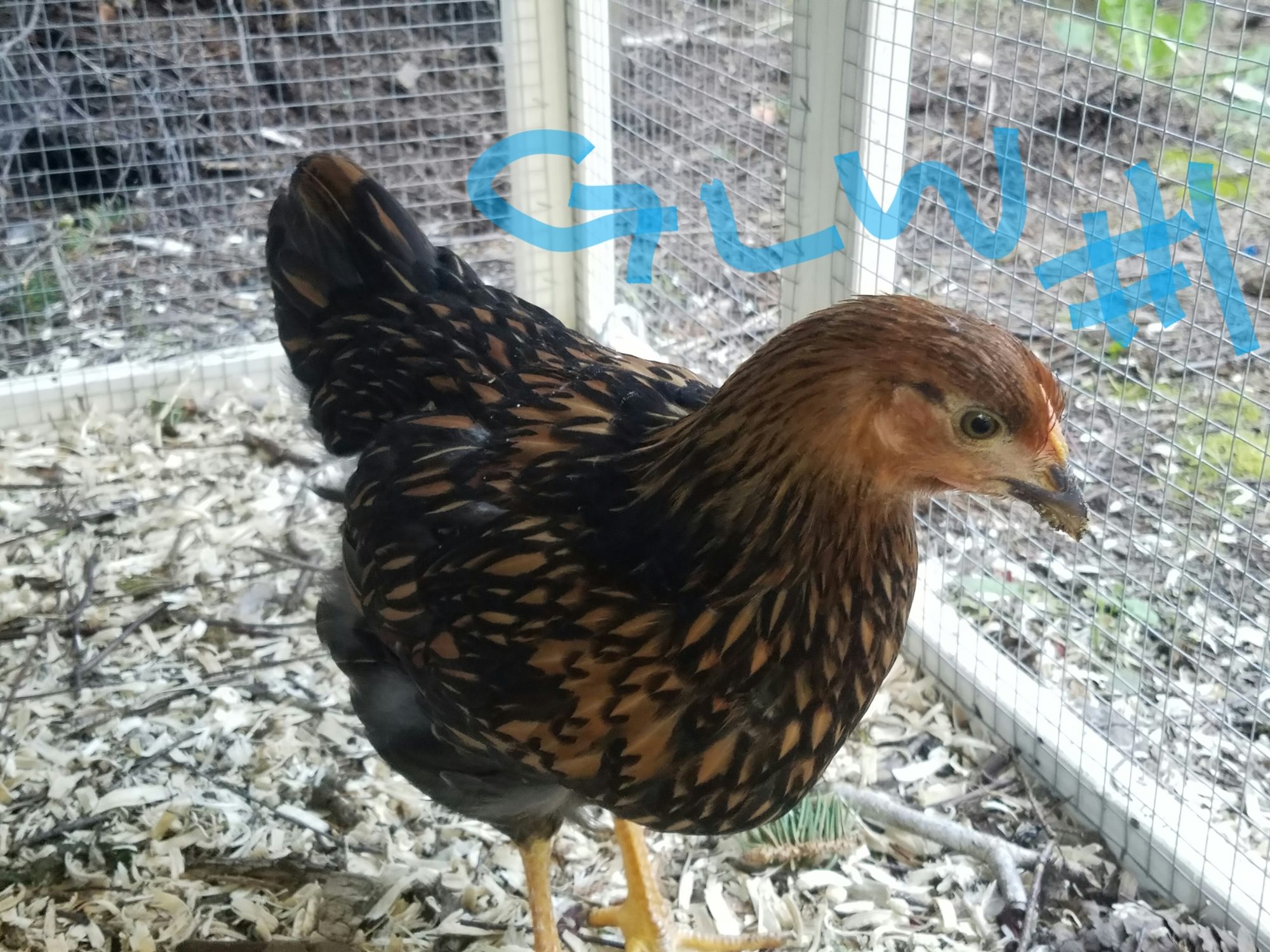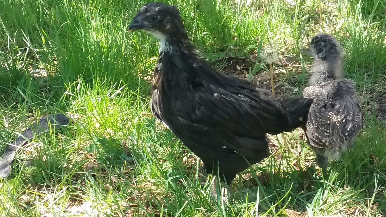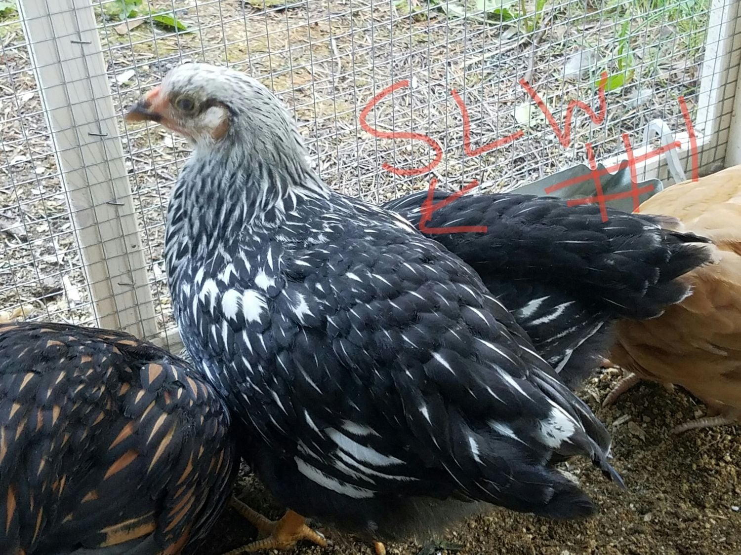 The Wyandotte is a pullet. The Ameraucana is looking like a cockerel. I see dark blue male saddle feathers just starting to come in.