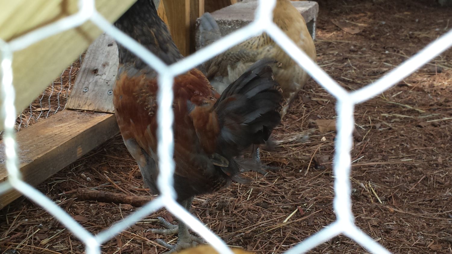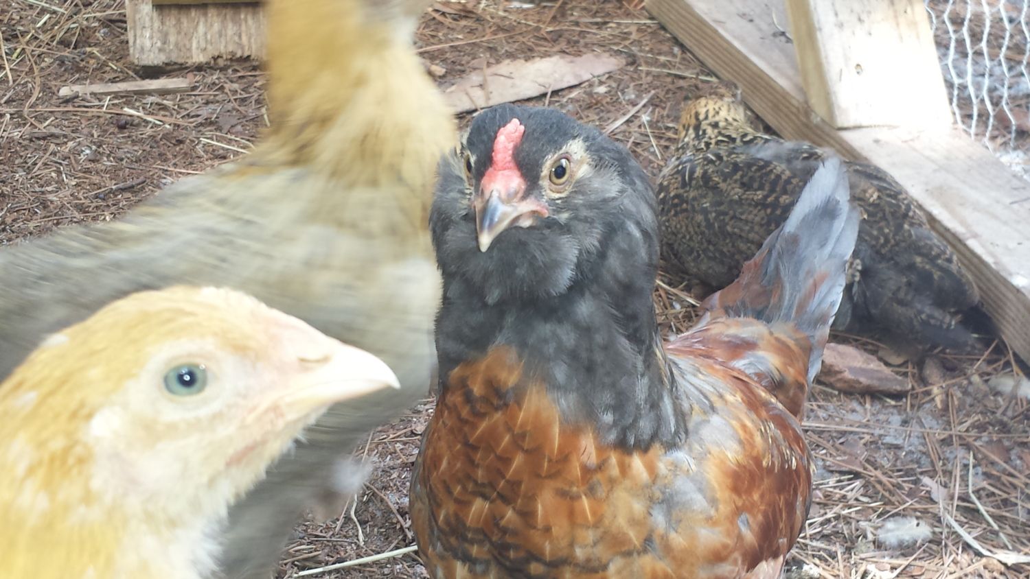 This one worries me because it has a LARGE comb. (And there is my black sex link in the photo that was supposed to be a hen...that's some nice barring that 'she' is developing!)