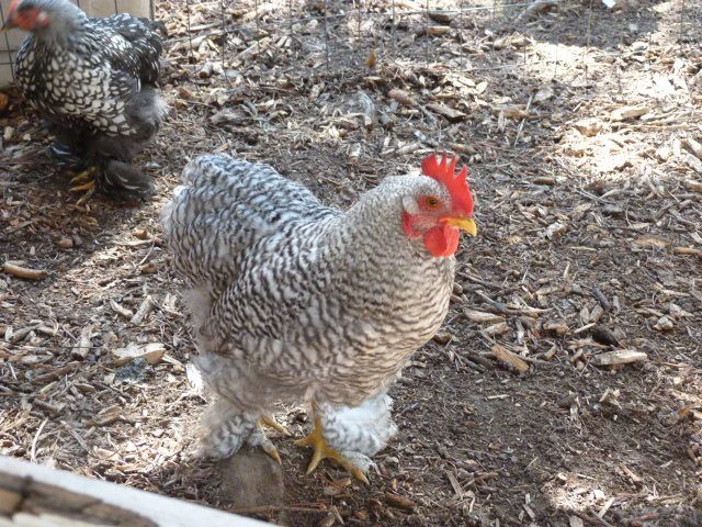 We got two free chickens (1 rooster and 1 hen). Although I have never considered chickens cute, these one are but I have no idea what breed they are. They are on the smaller side and they have feathers on their feet. The female is a darker gray and black. The male is a lighter gray and black. Does anyone have any idea of what breed this is??
